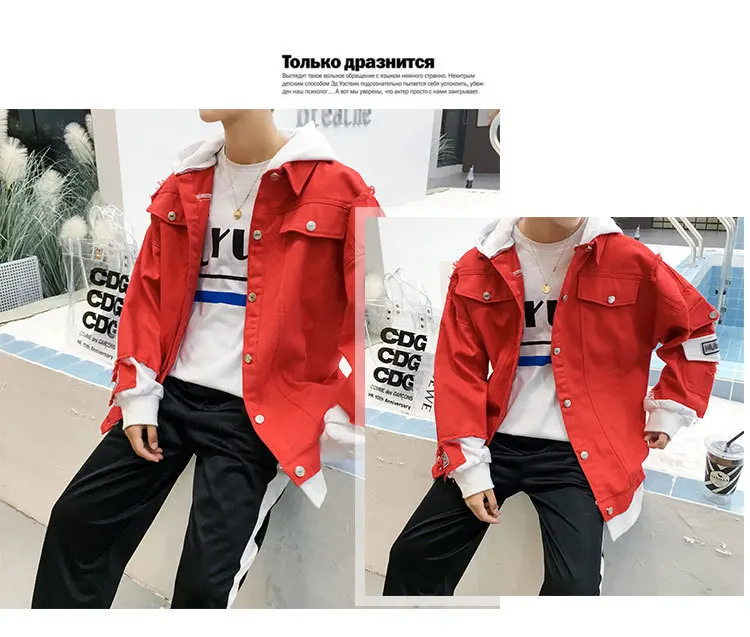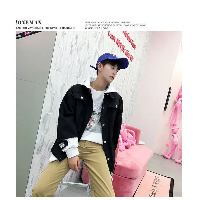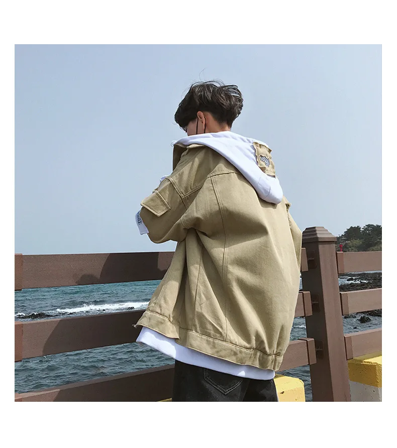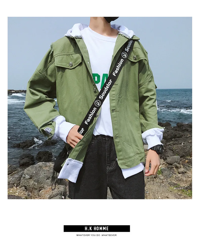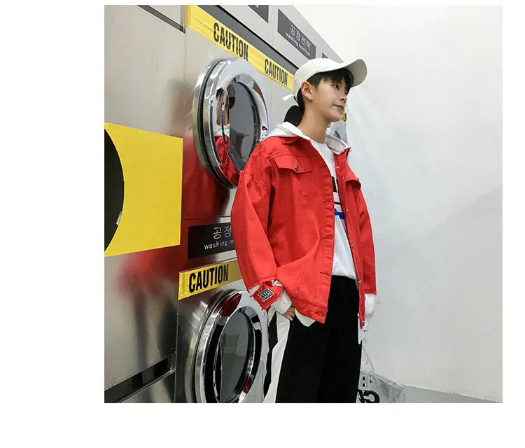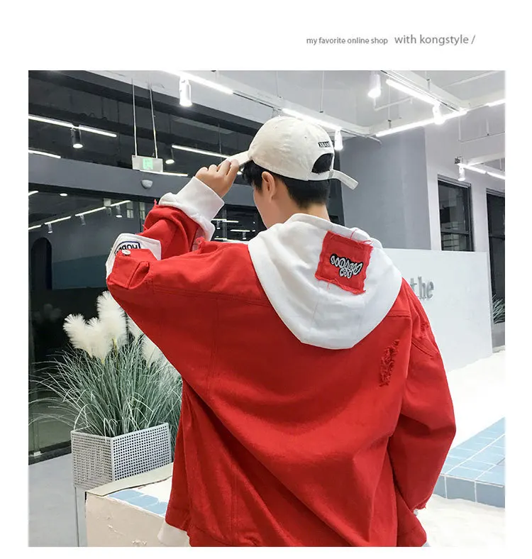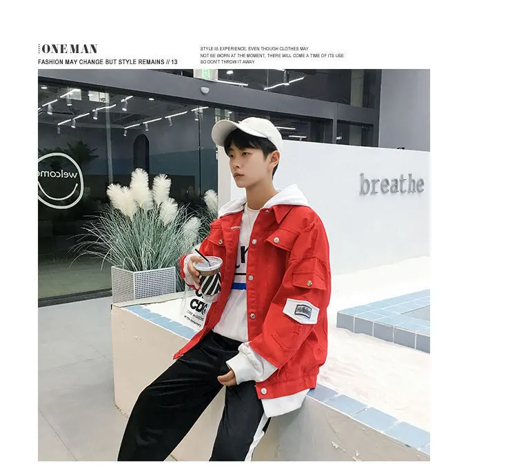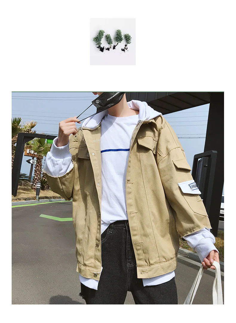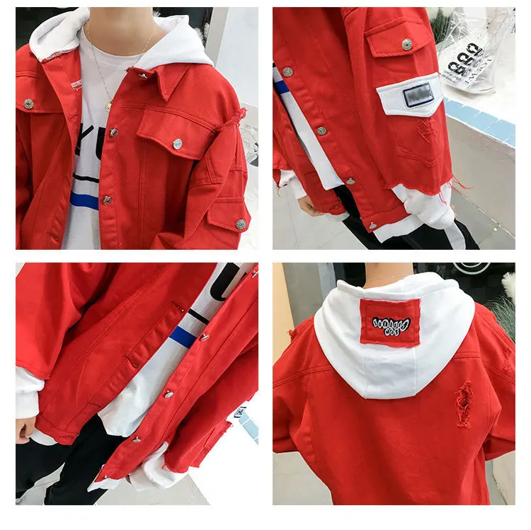 Spring autumn 2020 new street loose teenager pink denim jacket mens Korean trendy hooded handsome jacket male student loose coat
