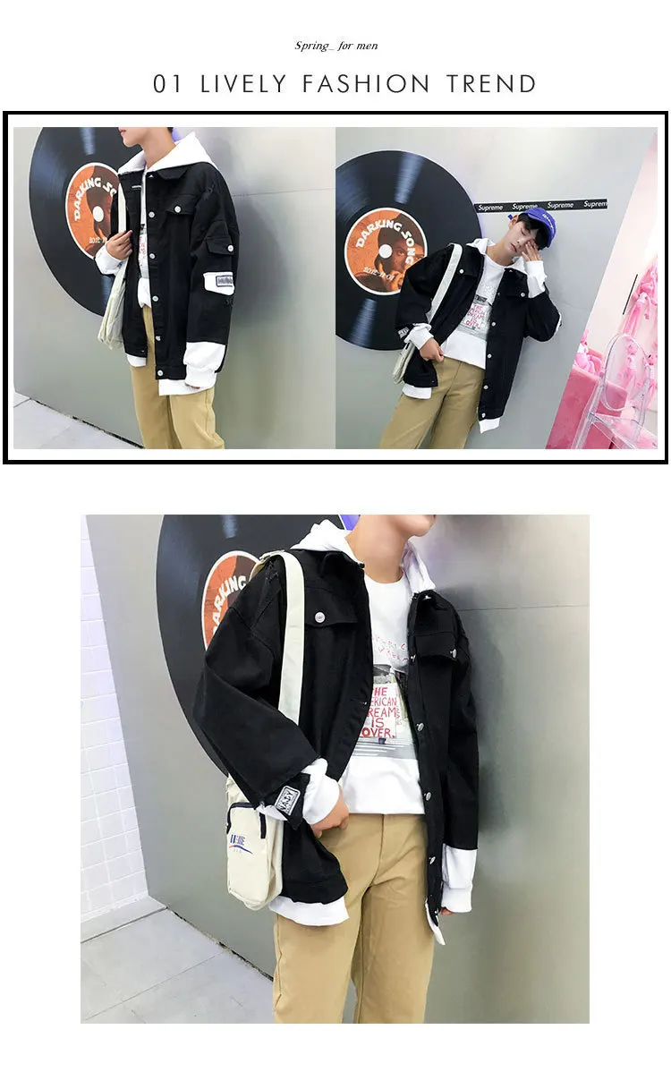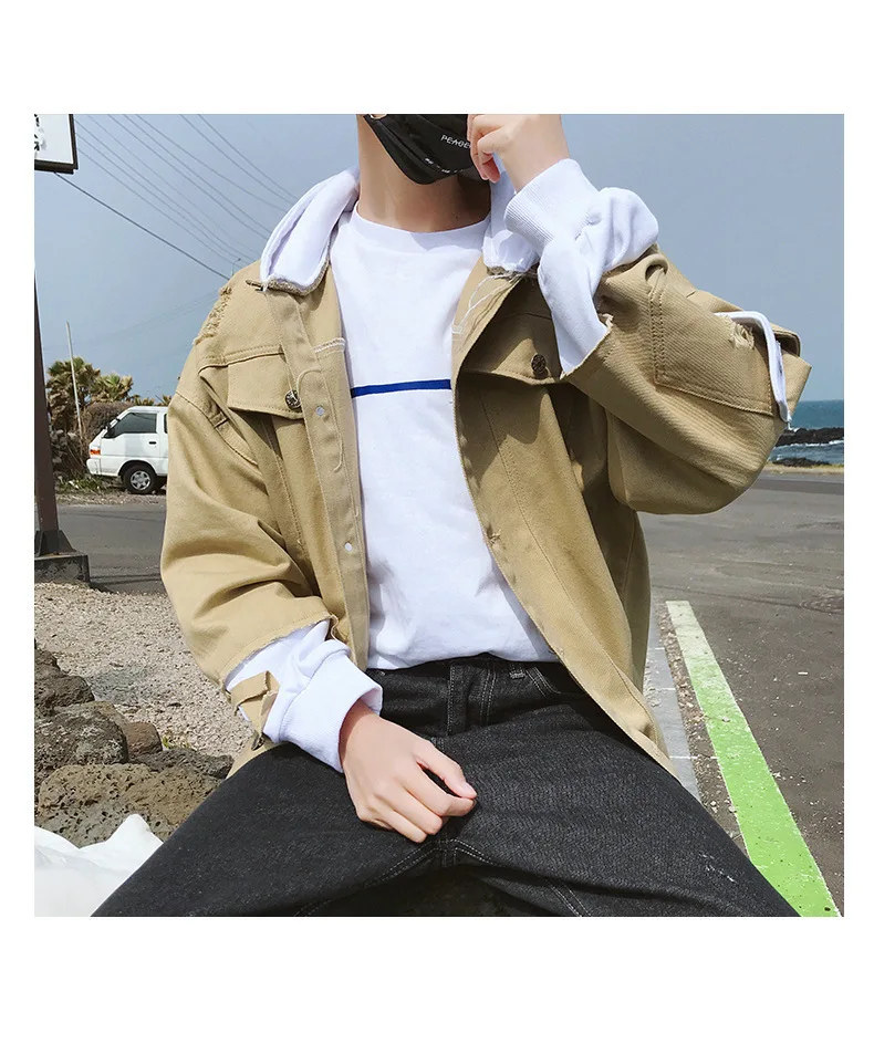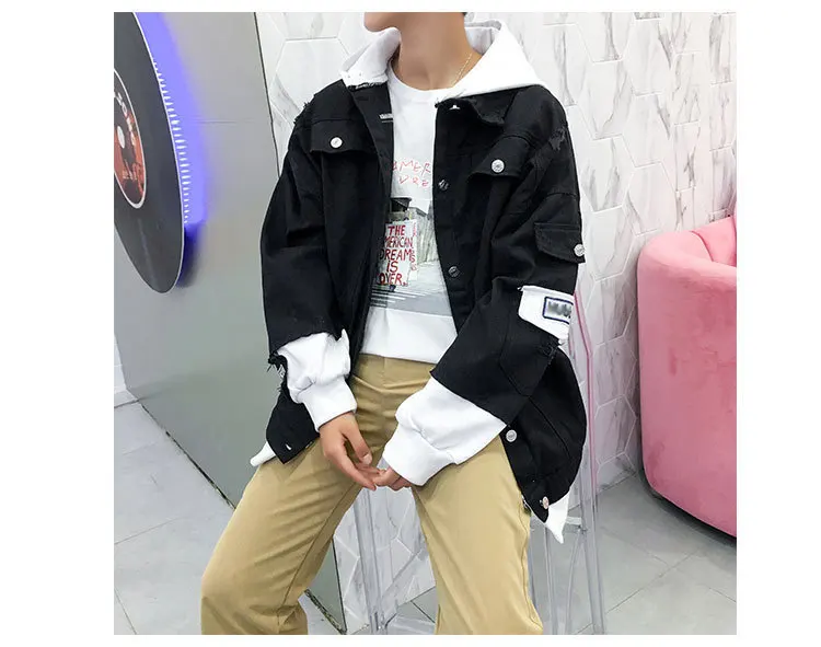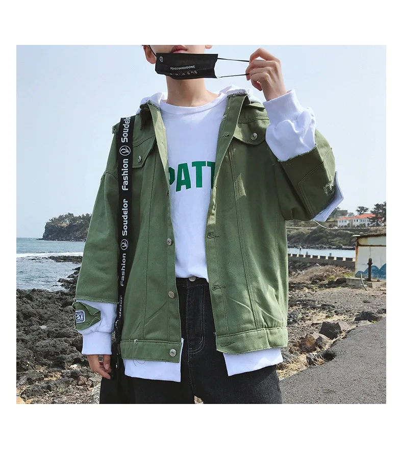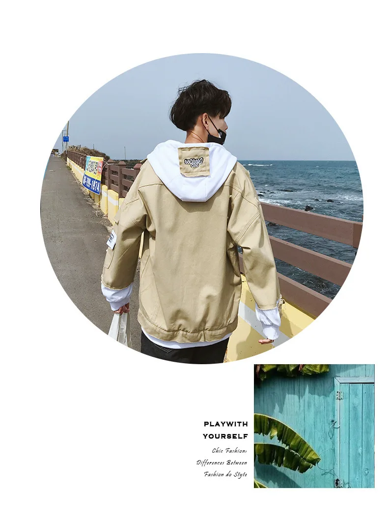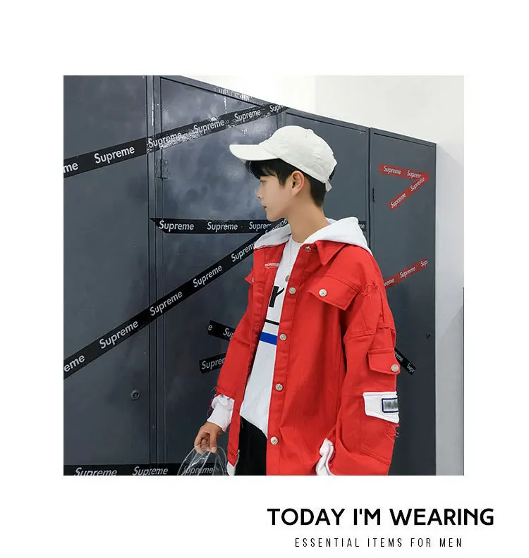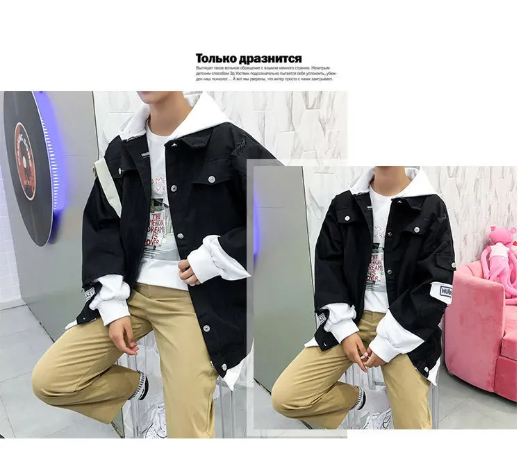 Spring autumn 2020 new street loose teenager pink denim jacket mens Korean trendy hooded handsome jacket male student loose coat