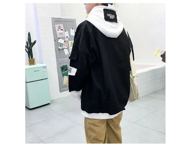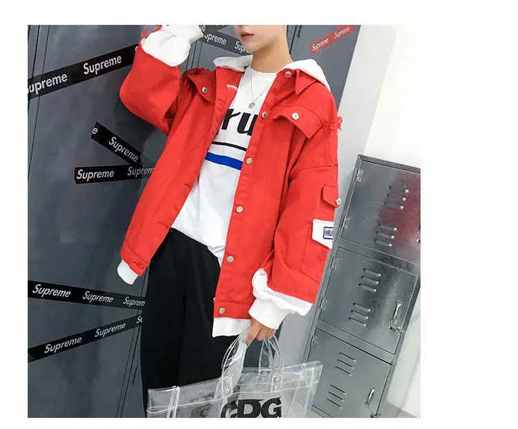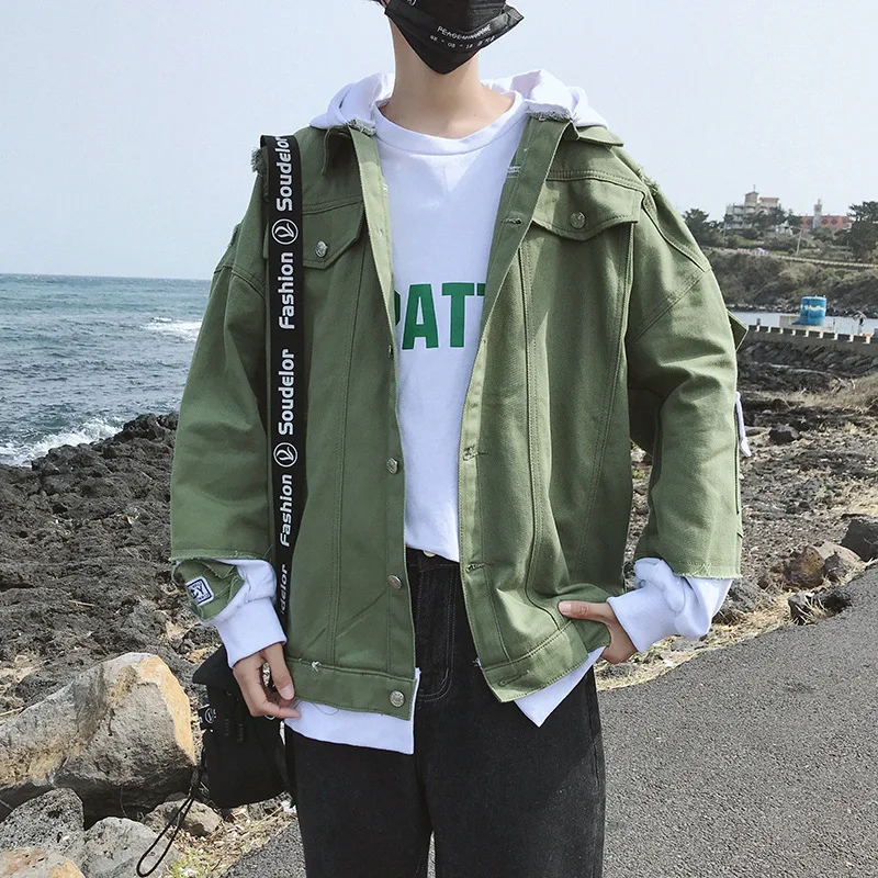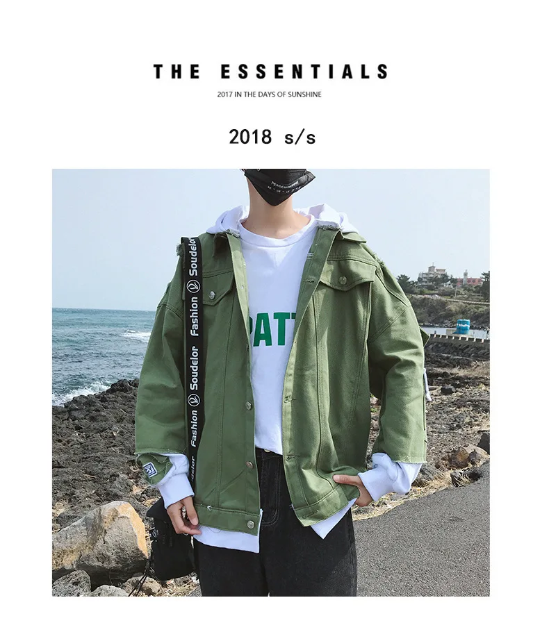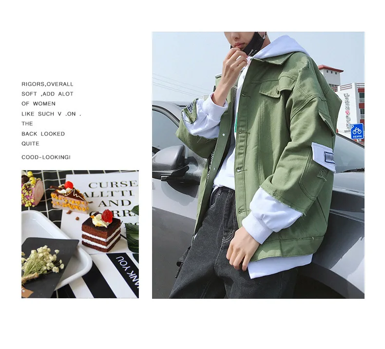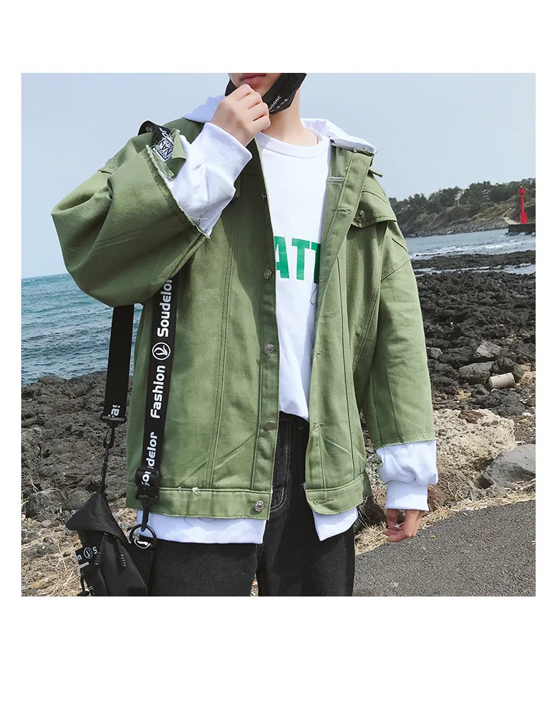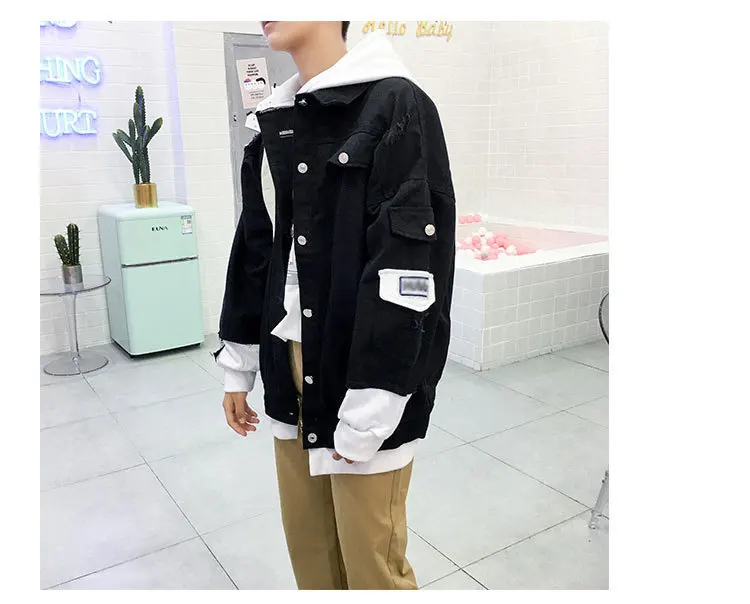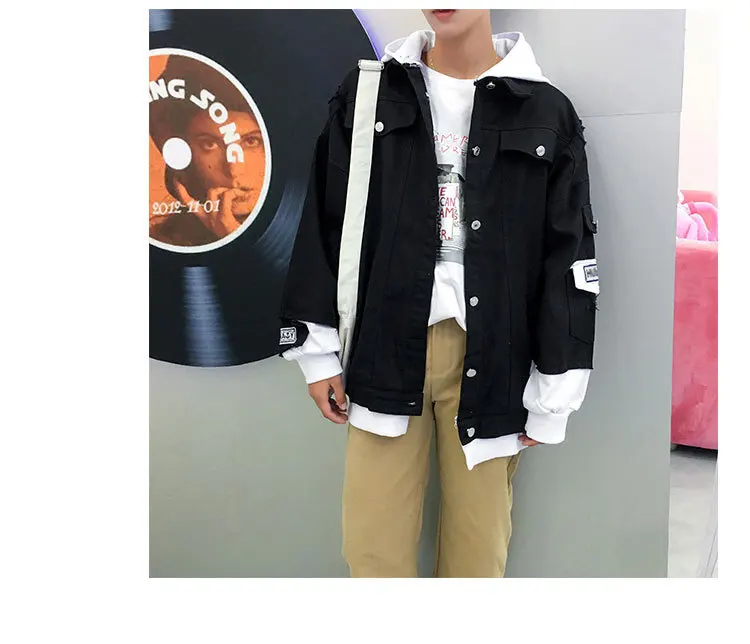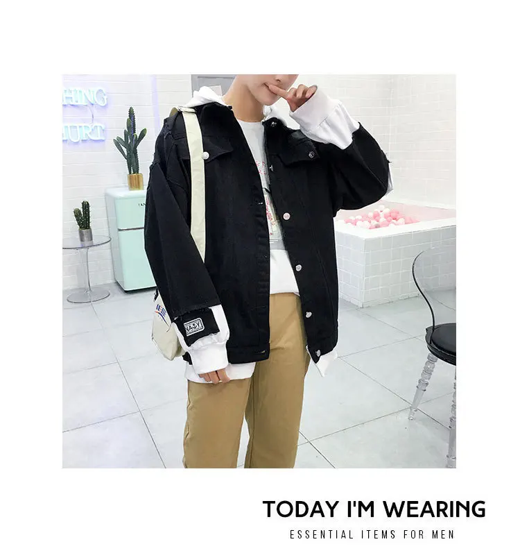 Spring autumn 2020 new street loose teenager pink denim jacket mens Korean trendy hooded handsome jacket male student loose coat