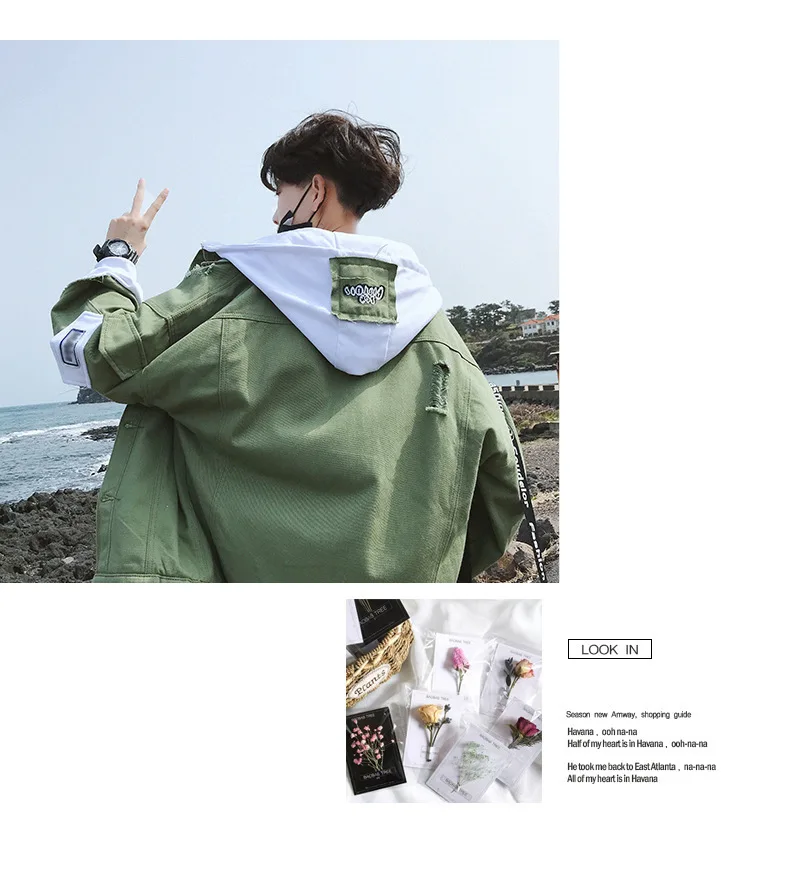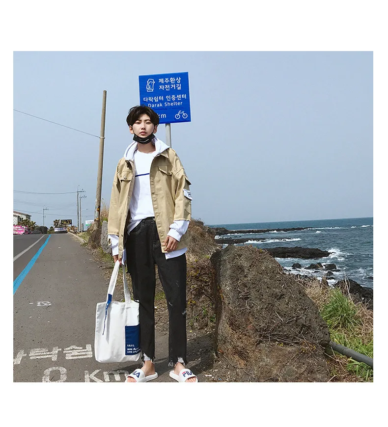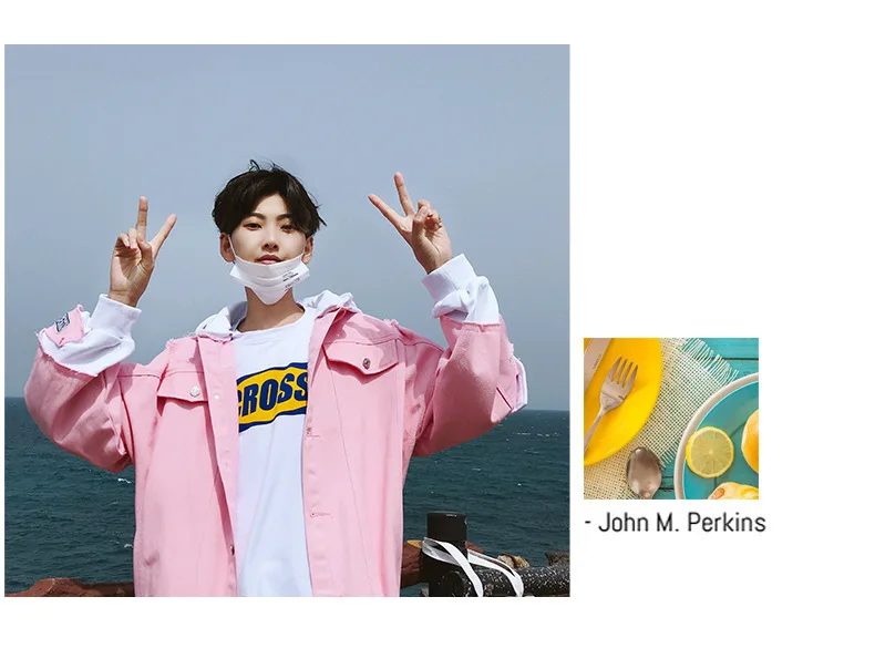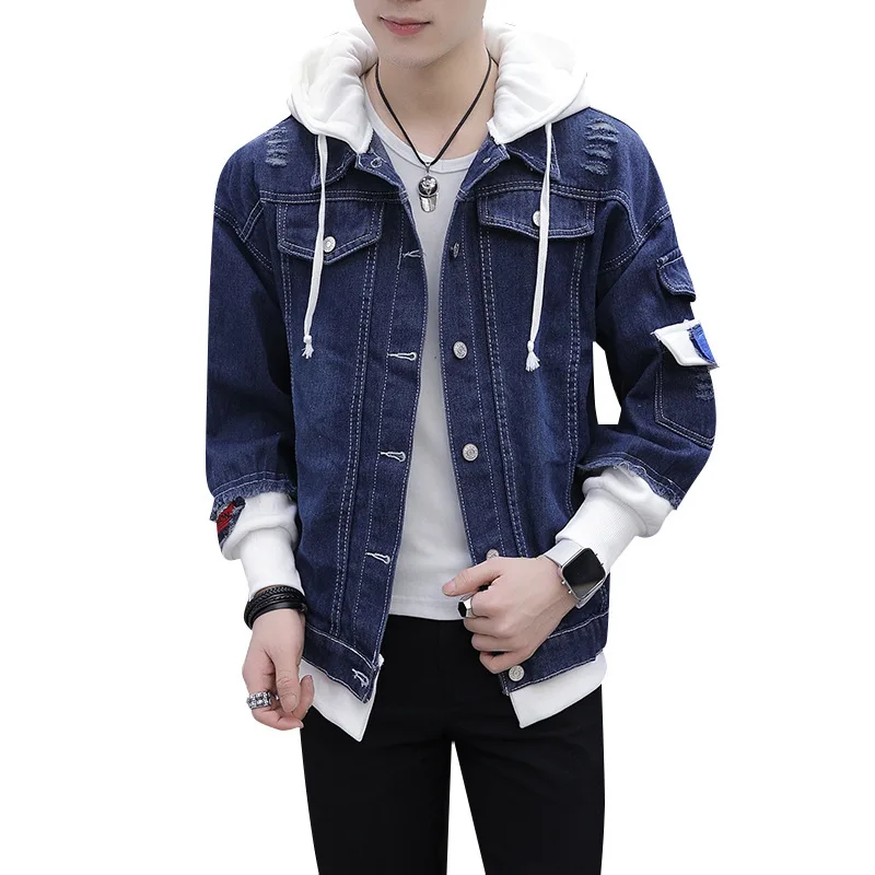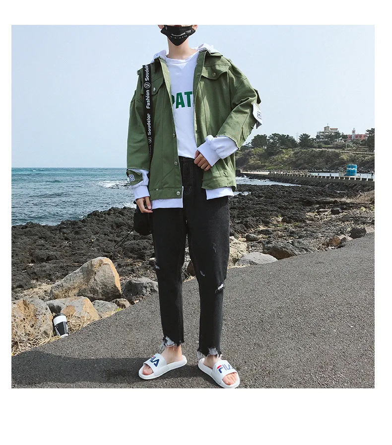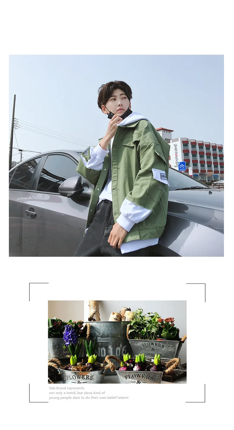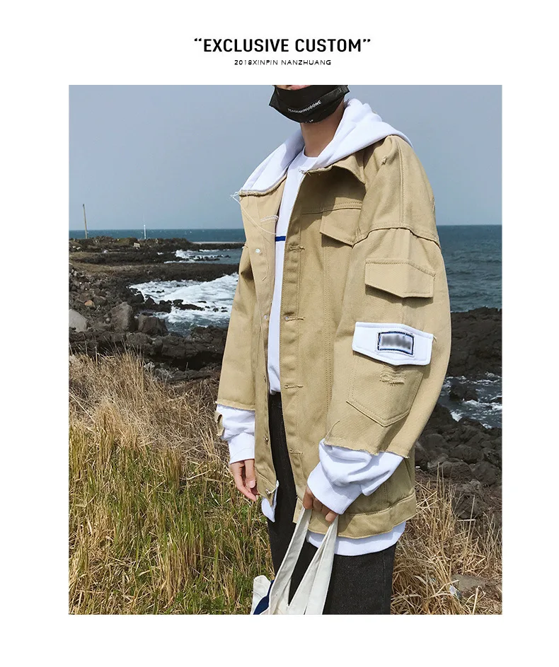 Spring autumn 2020 new street loose teenager pink denim jacket mens Korean trendy hooded handsome jacket male student loose coat