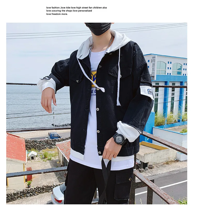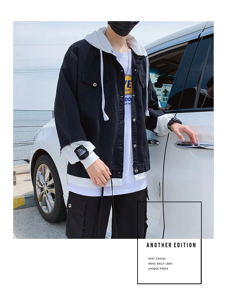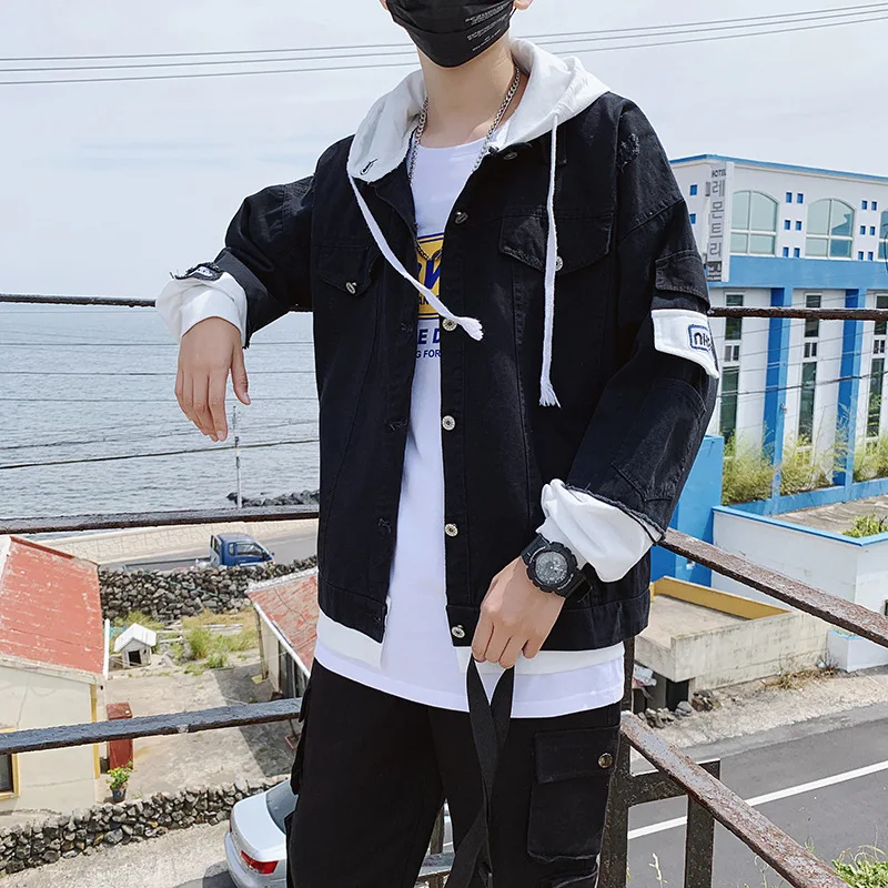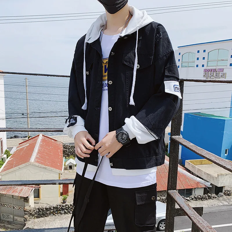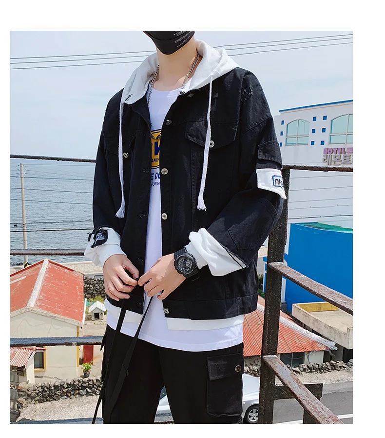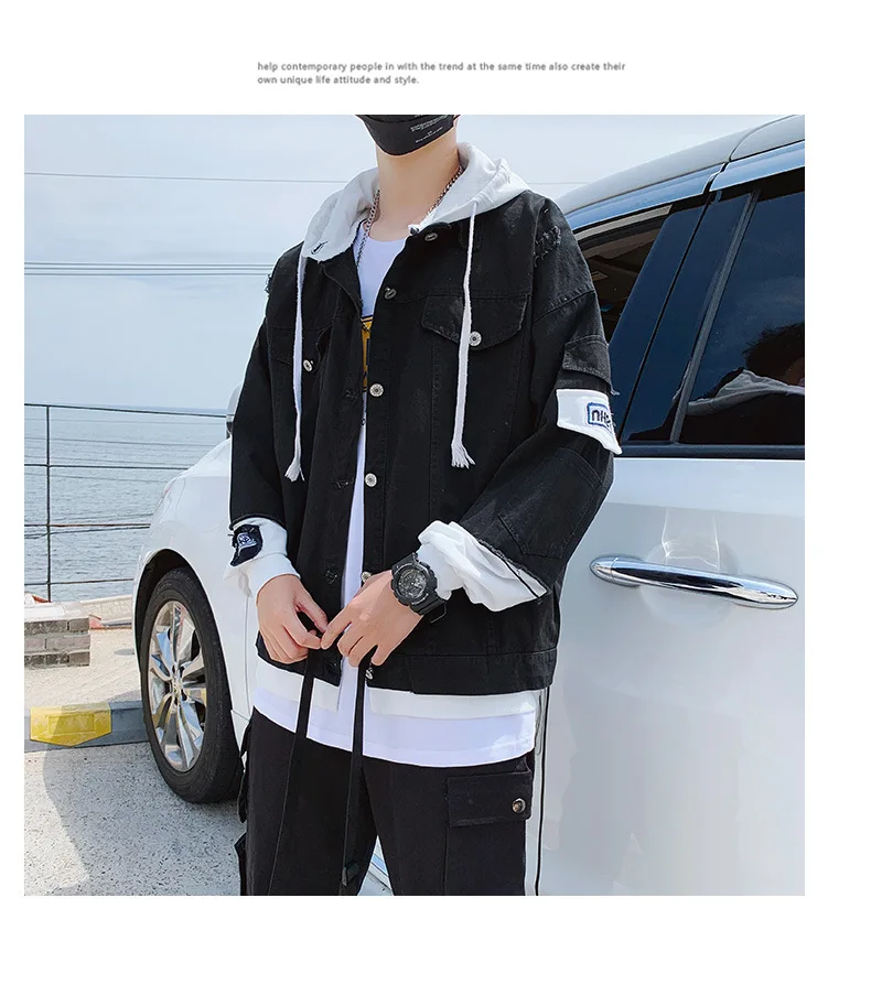 Spring Autumn 2022 Denim Fake Two-piece Jacket Men’s Korean Style Trend Hong Kong Style Student Handsome Jacket Men’s Clothes