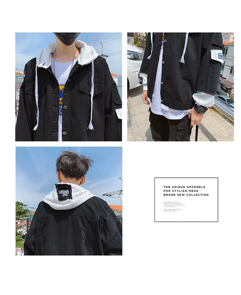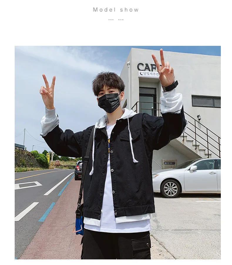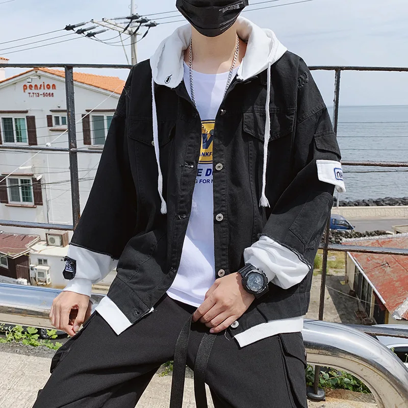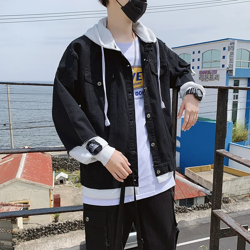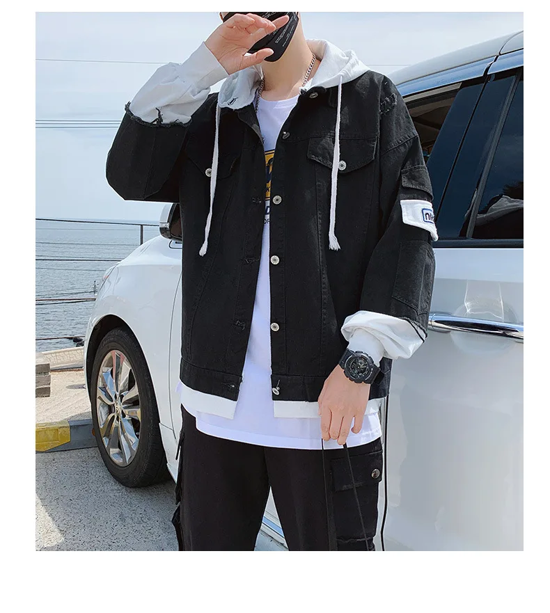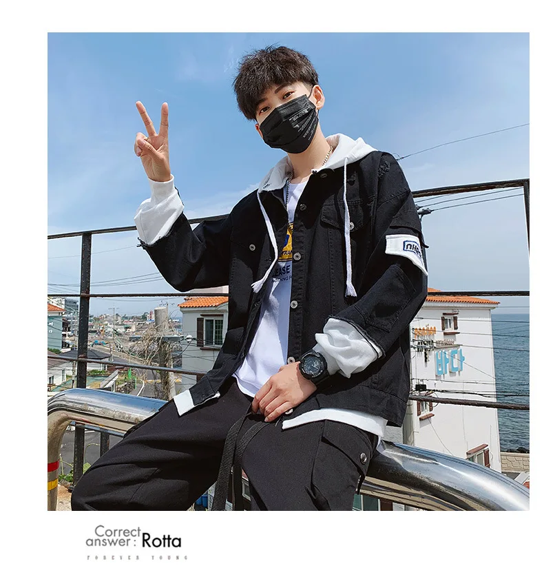 Spring Autumn 2022 Denim Fake Two-piece Jacket Men’s Korean Style Trend Hong Kong Style Student Handsome Jacket Men’s Clothes