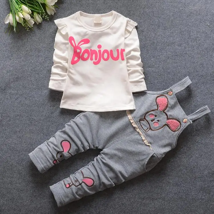 Spring/autumn baby girls/boys clothing sets fashion T-shirt +bib pants 2PC/sets