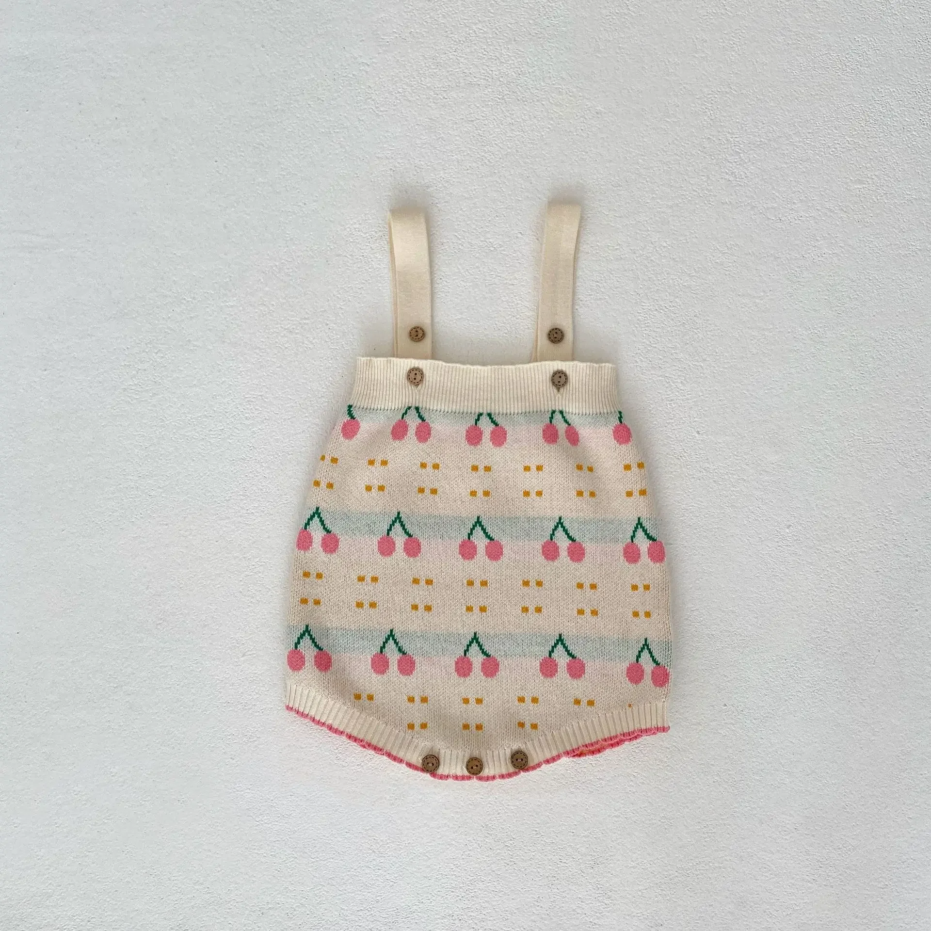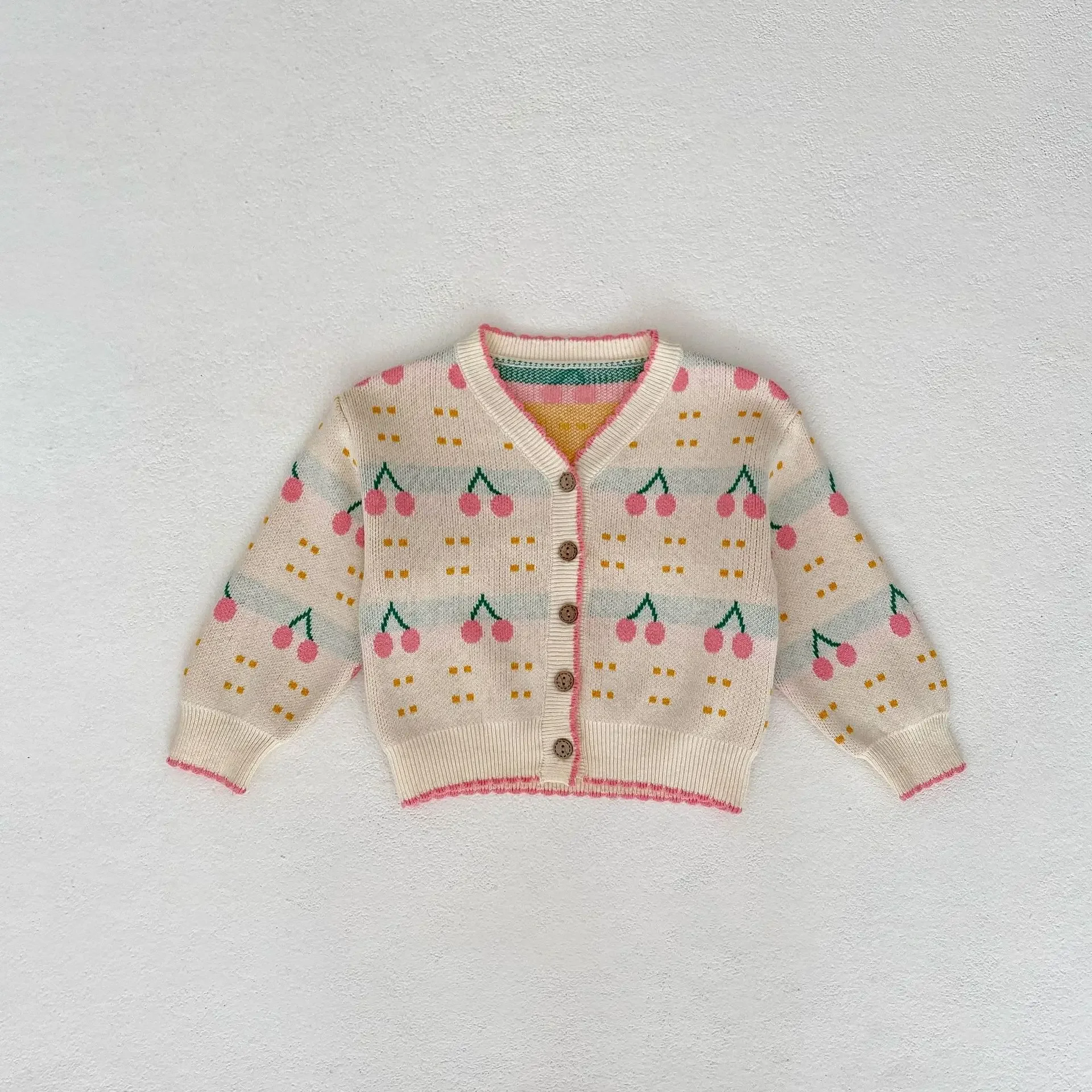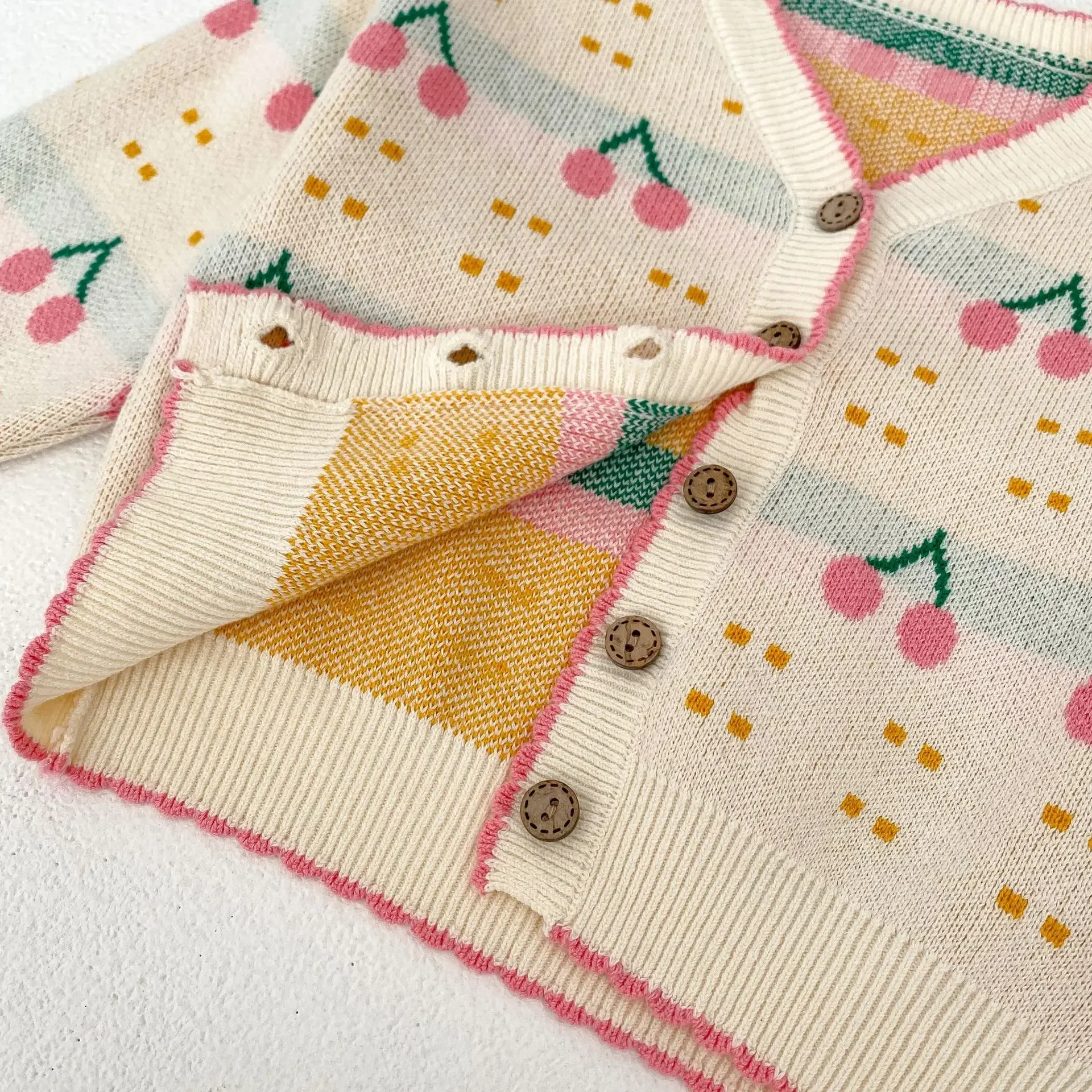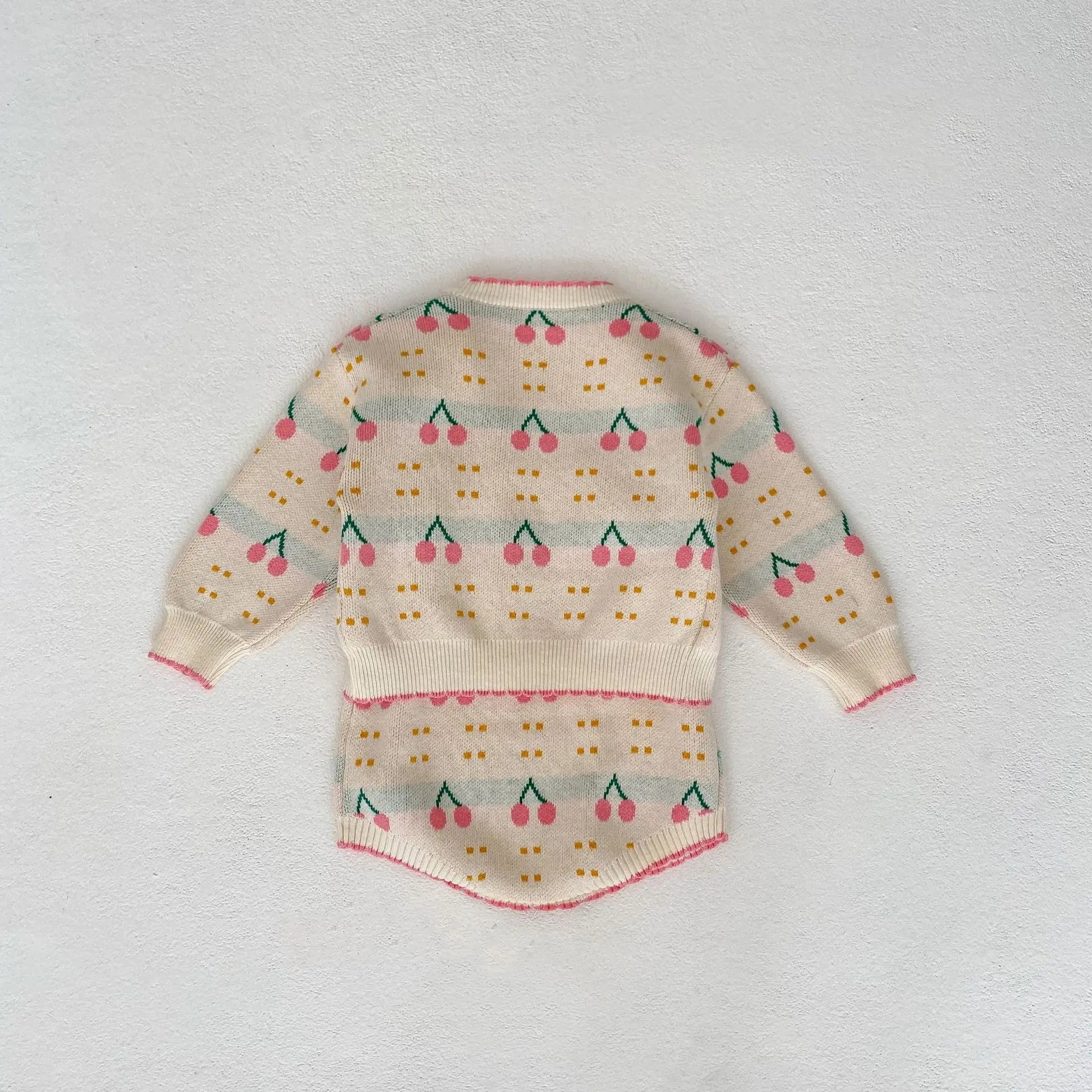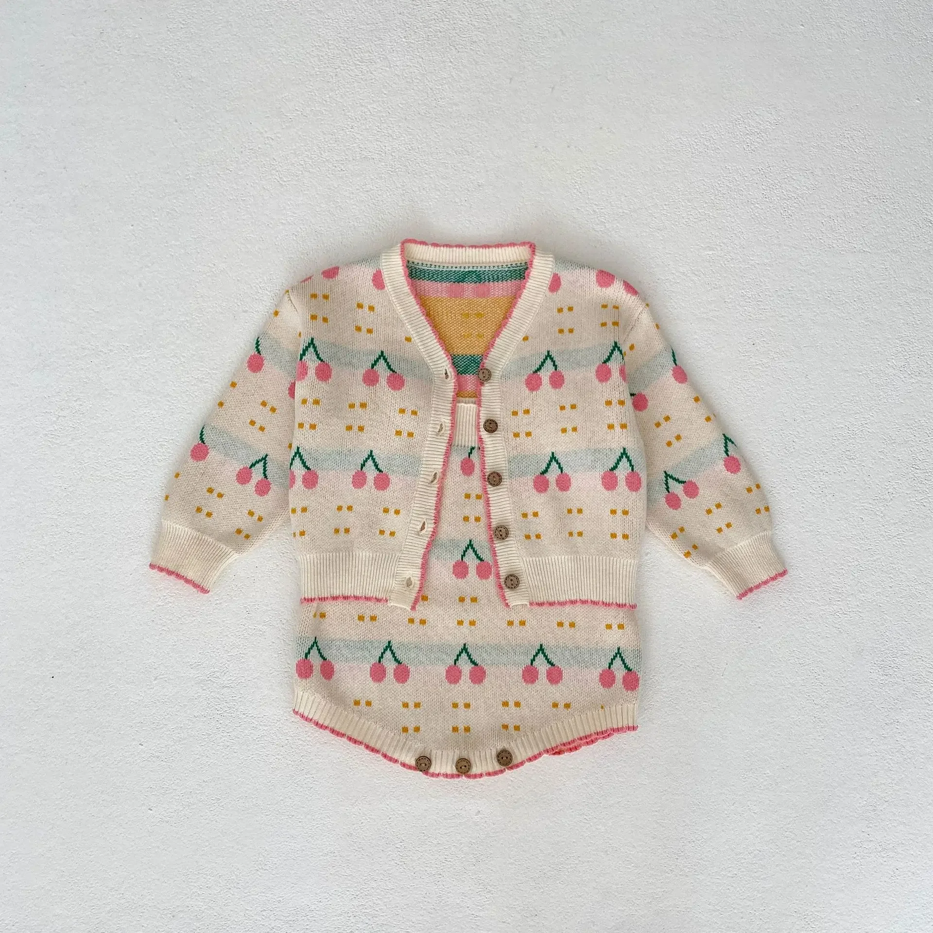Spring Autumn baby girls sweet cherry knitted bodysuit and cardigan Infants outfits baby knitwears