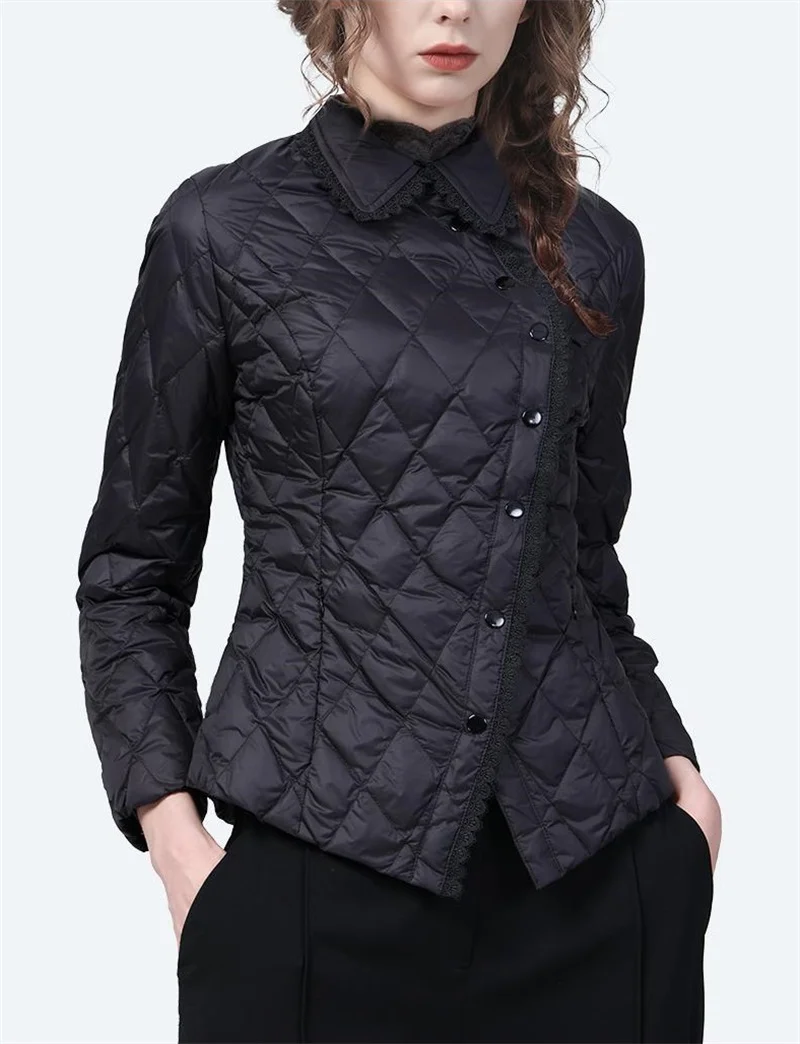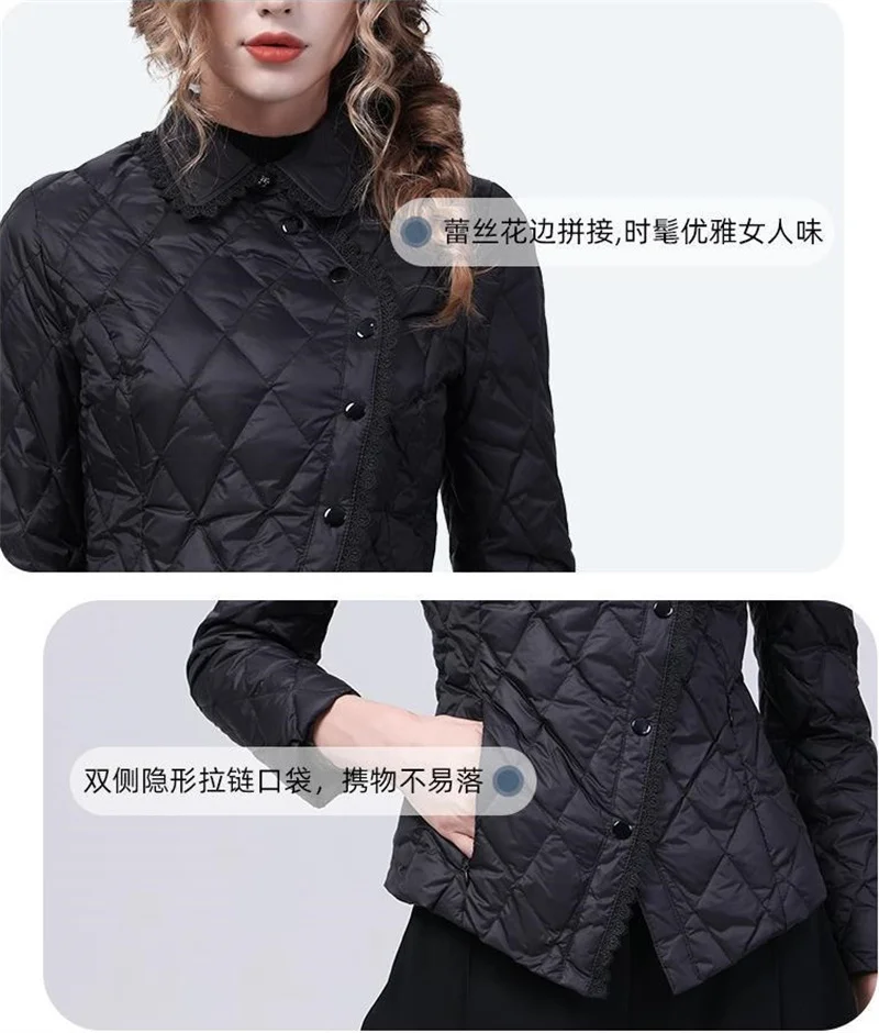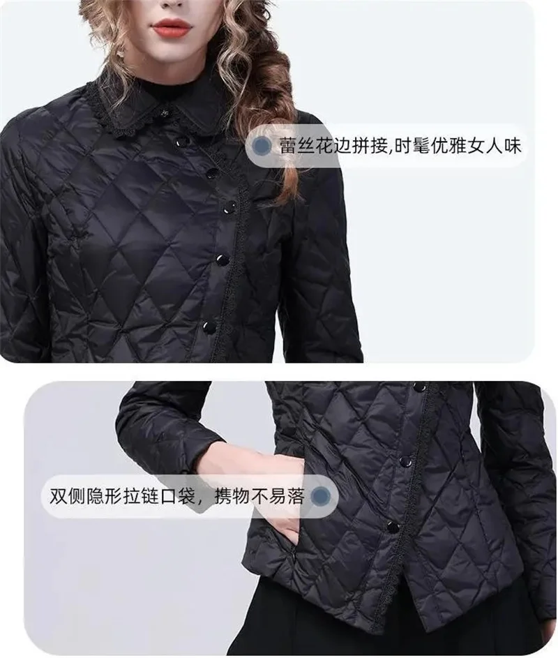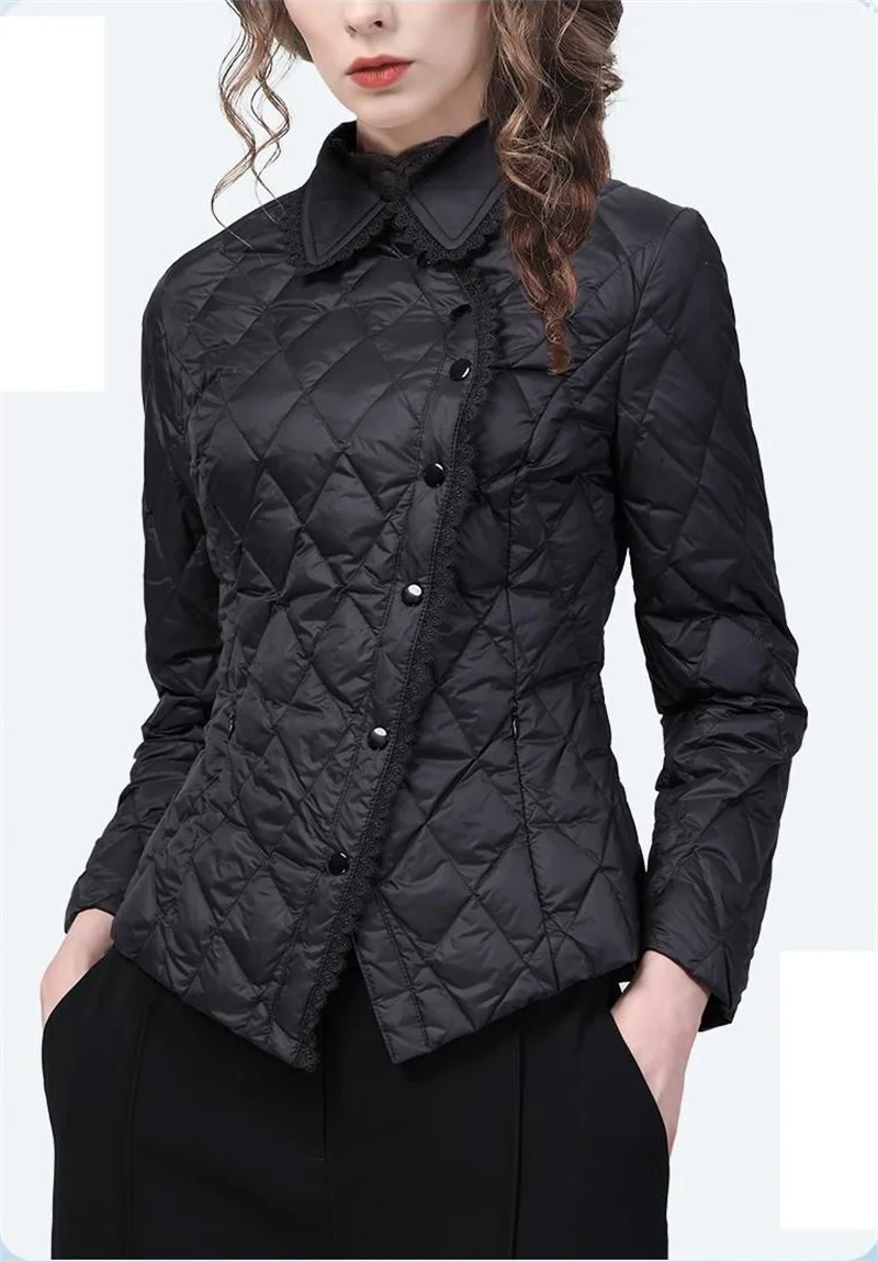 Spring Autumn Female Slim Waist Down Cotton-padded Jacket Women Short Lace Doll Collar With High-grade Thin Cotton-padded Coat
