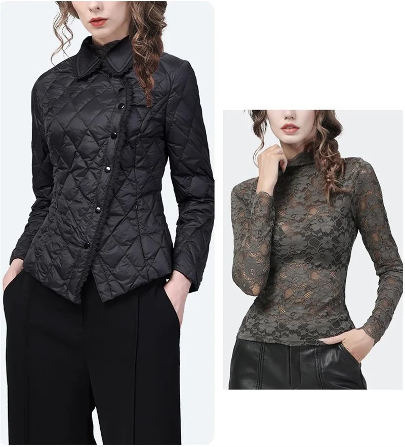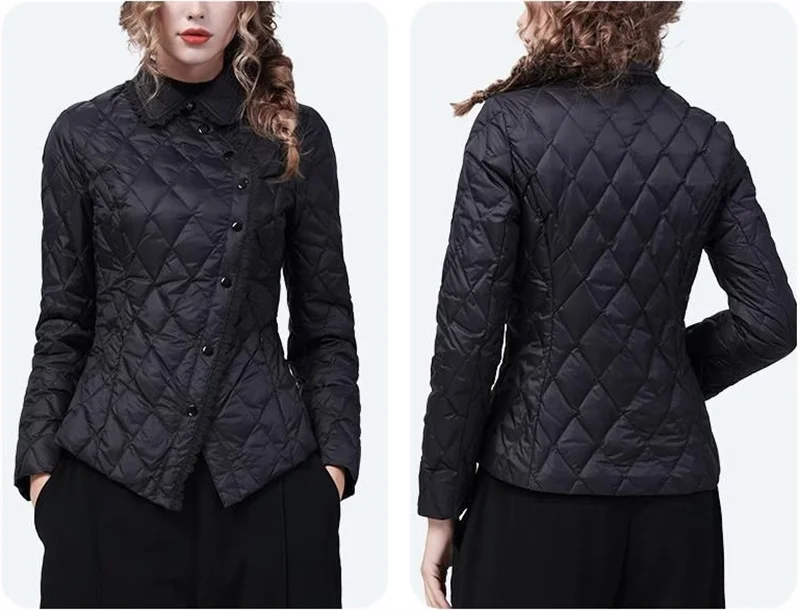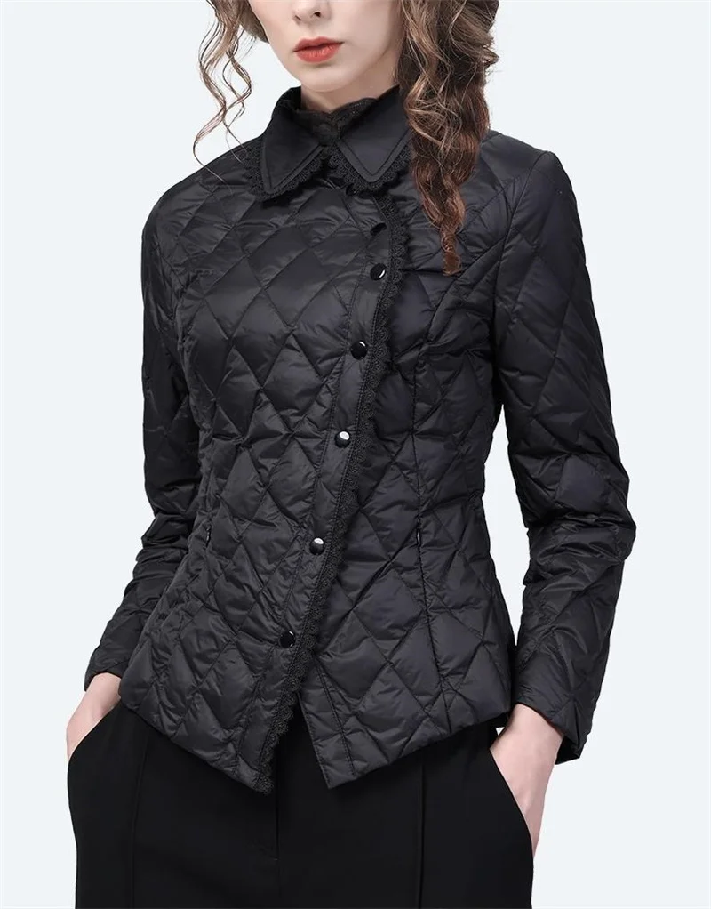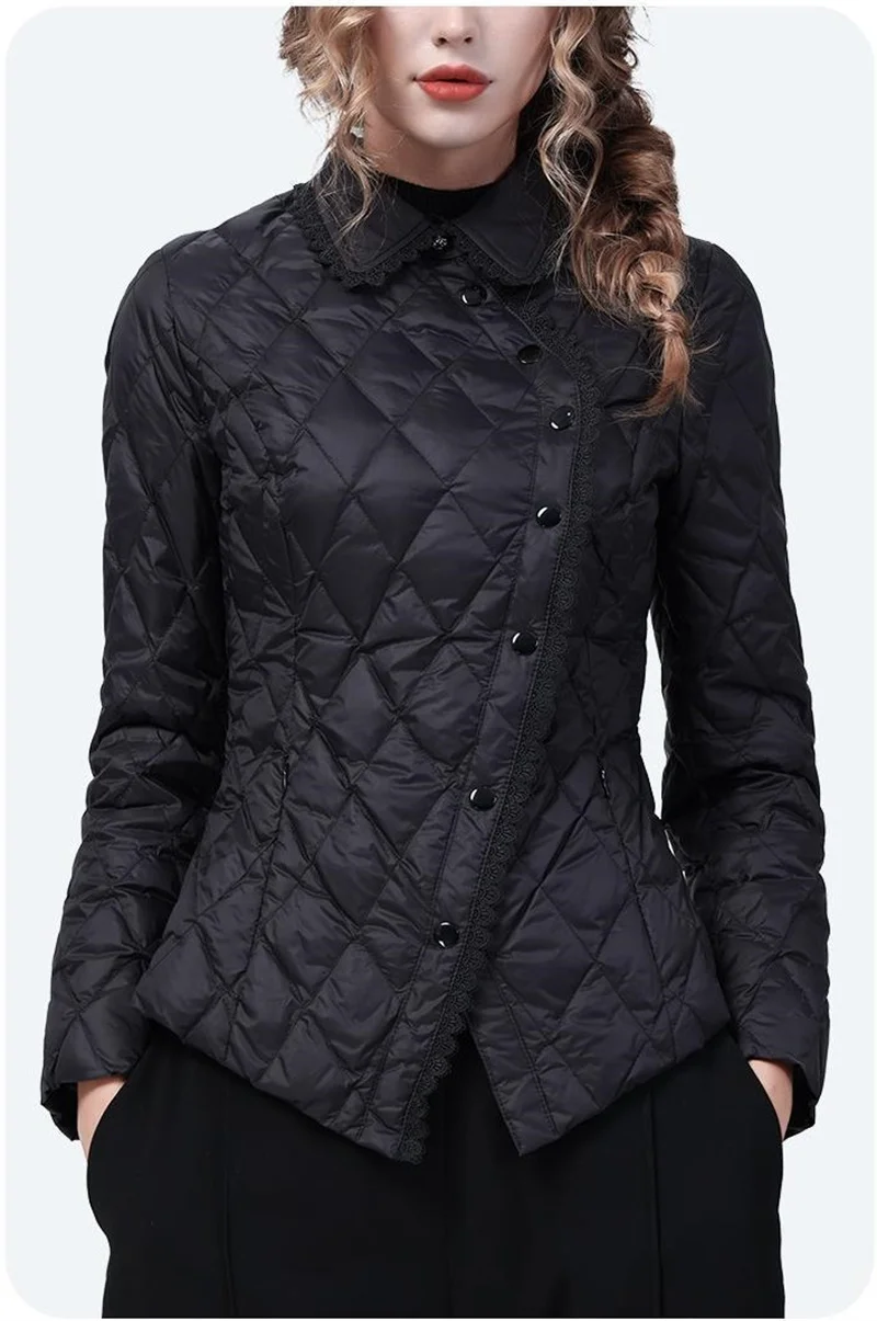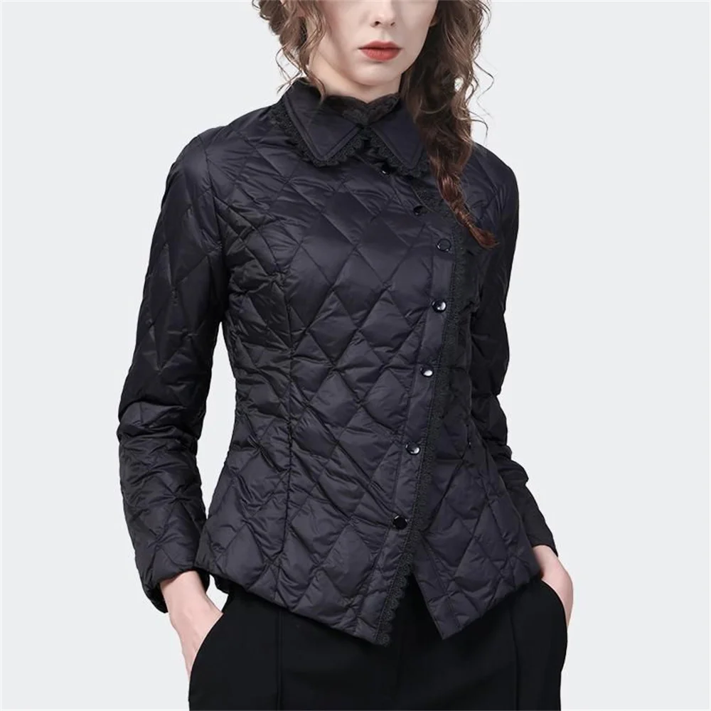 Spring Autumn Female Slim Waist Down Cotton-padded Jacket Women Short Lace Doll Collar With High-grade Thin Cotton-padded Coat