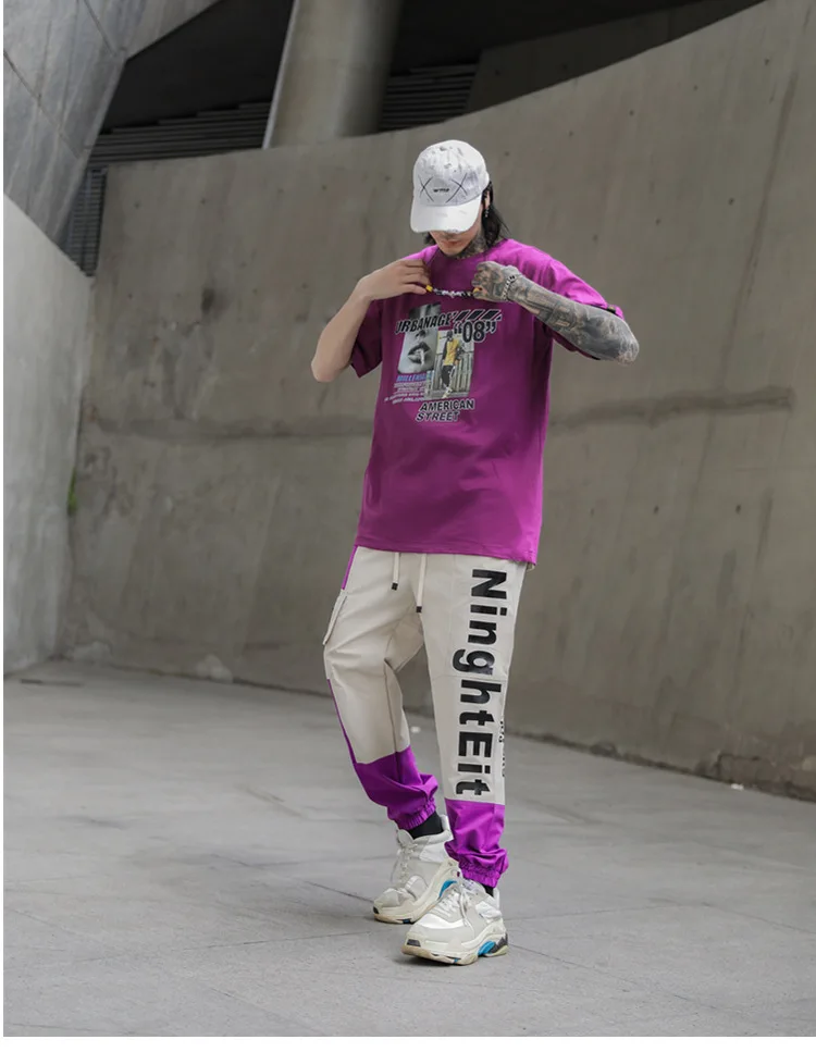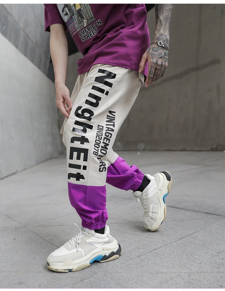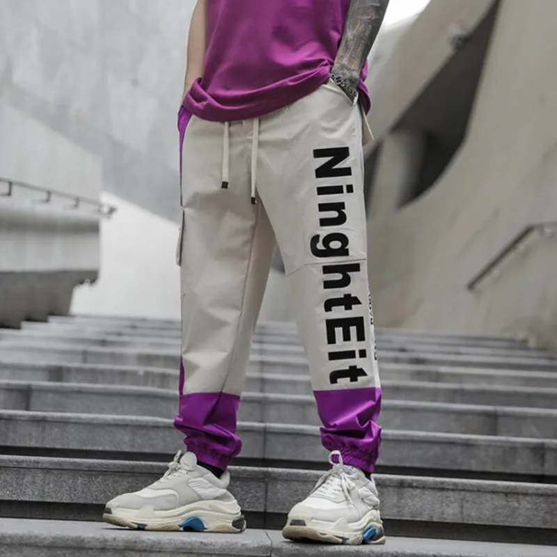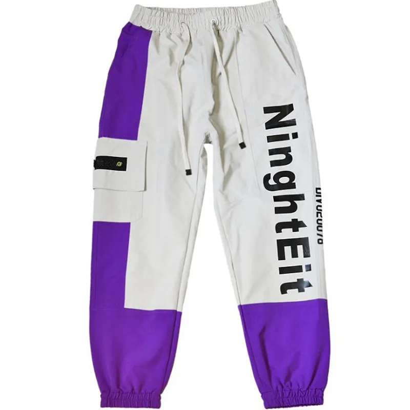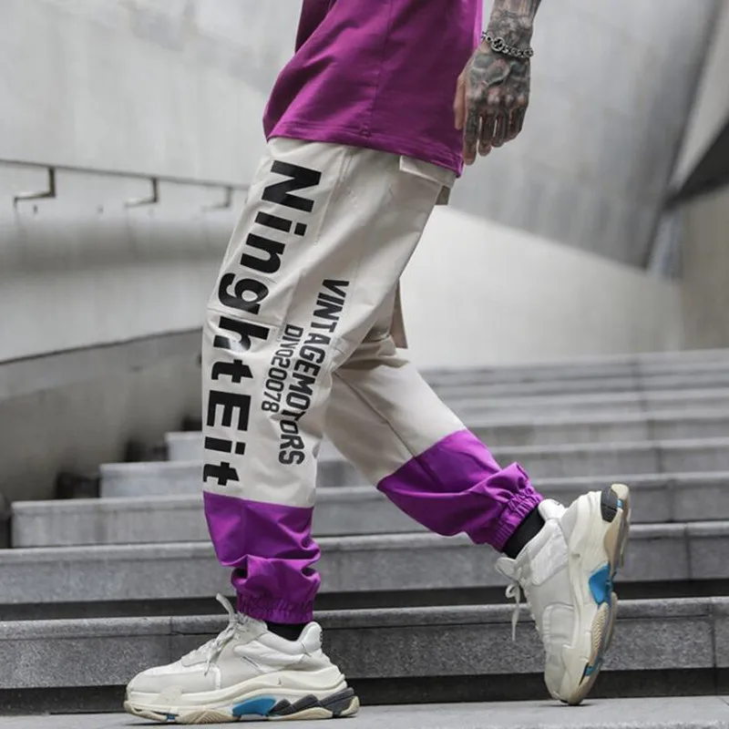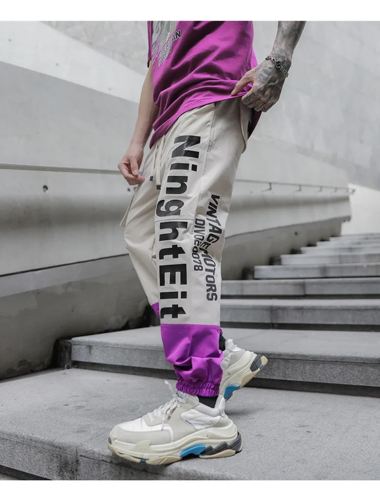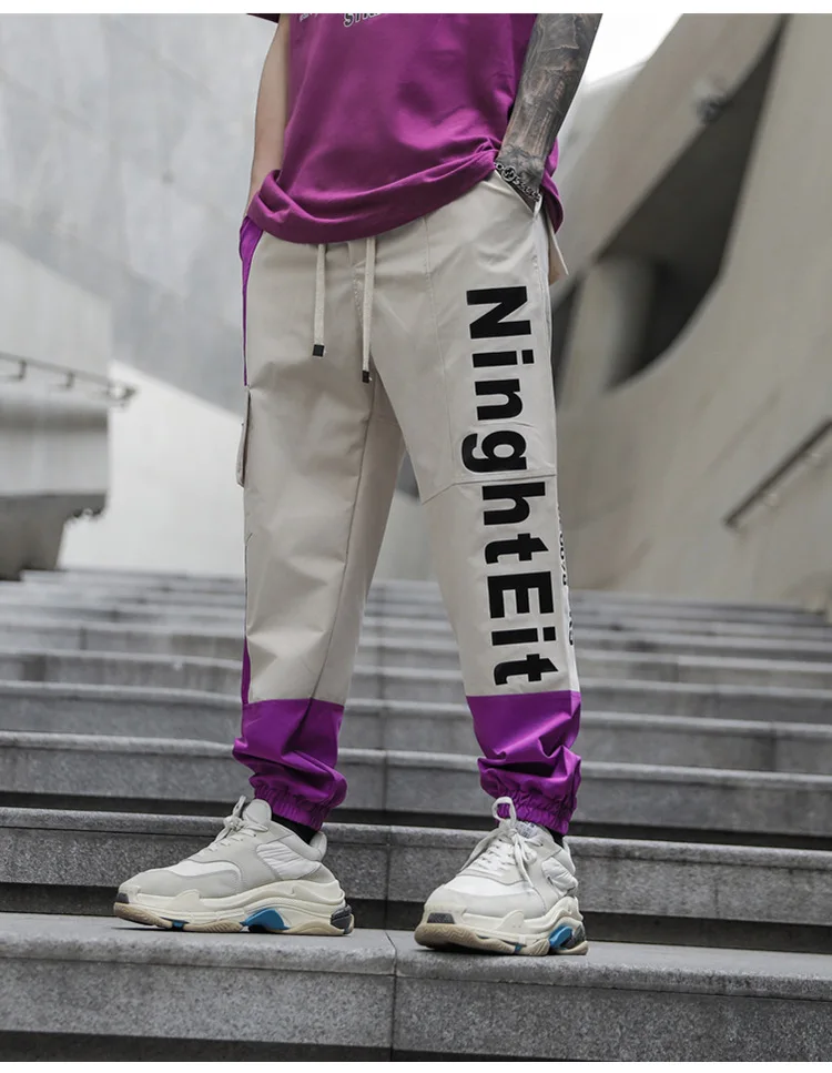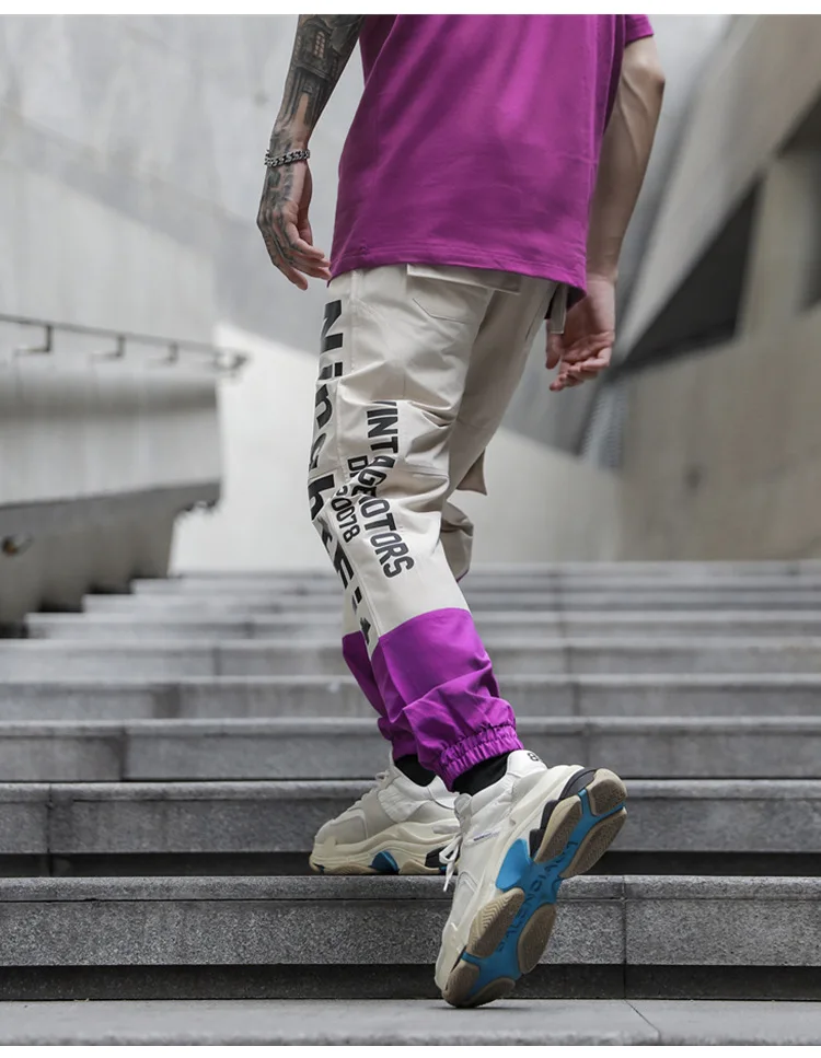 Spring autumn man vintage hip hop cargo pants purple patchwork joggers mens sport sweatpants korean streetwear