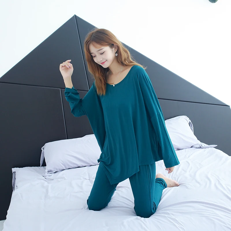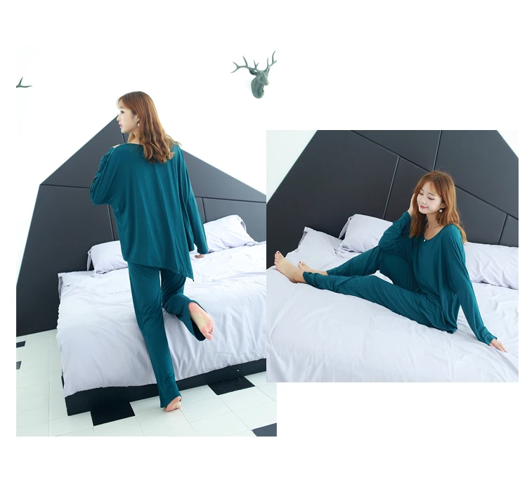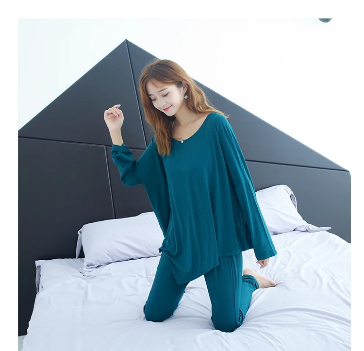 Spring Autumn Women Pajamas Set Cotton Nightwear Housing Clothing Suit Female Casual Sleepwear Two Piece Set T Shirt+Pants 1545