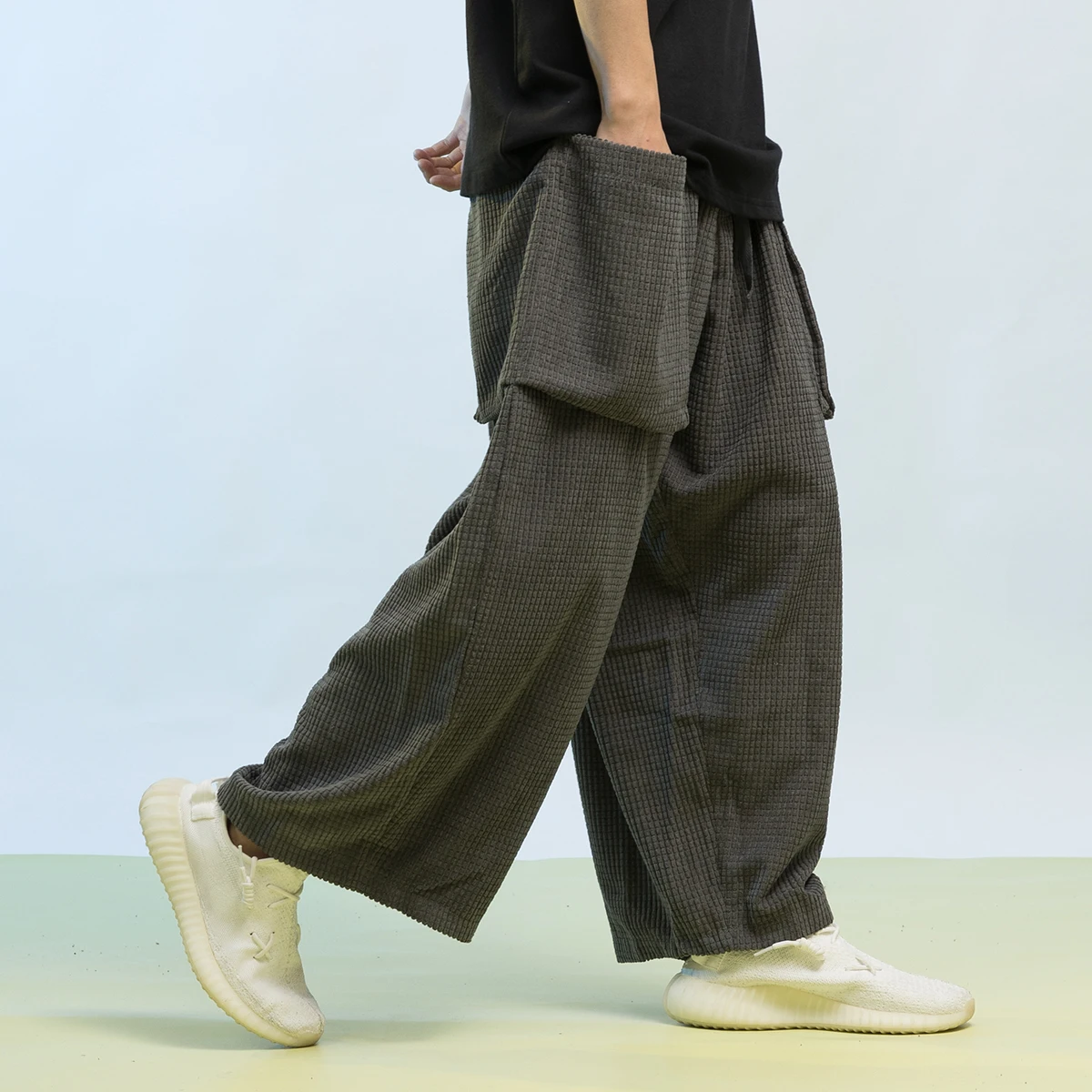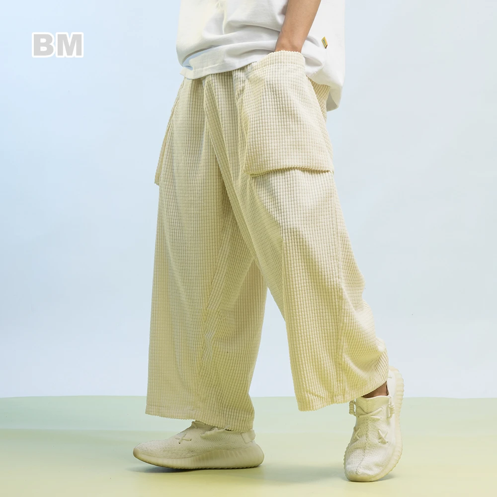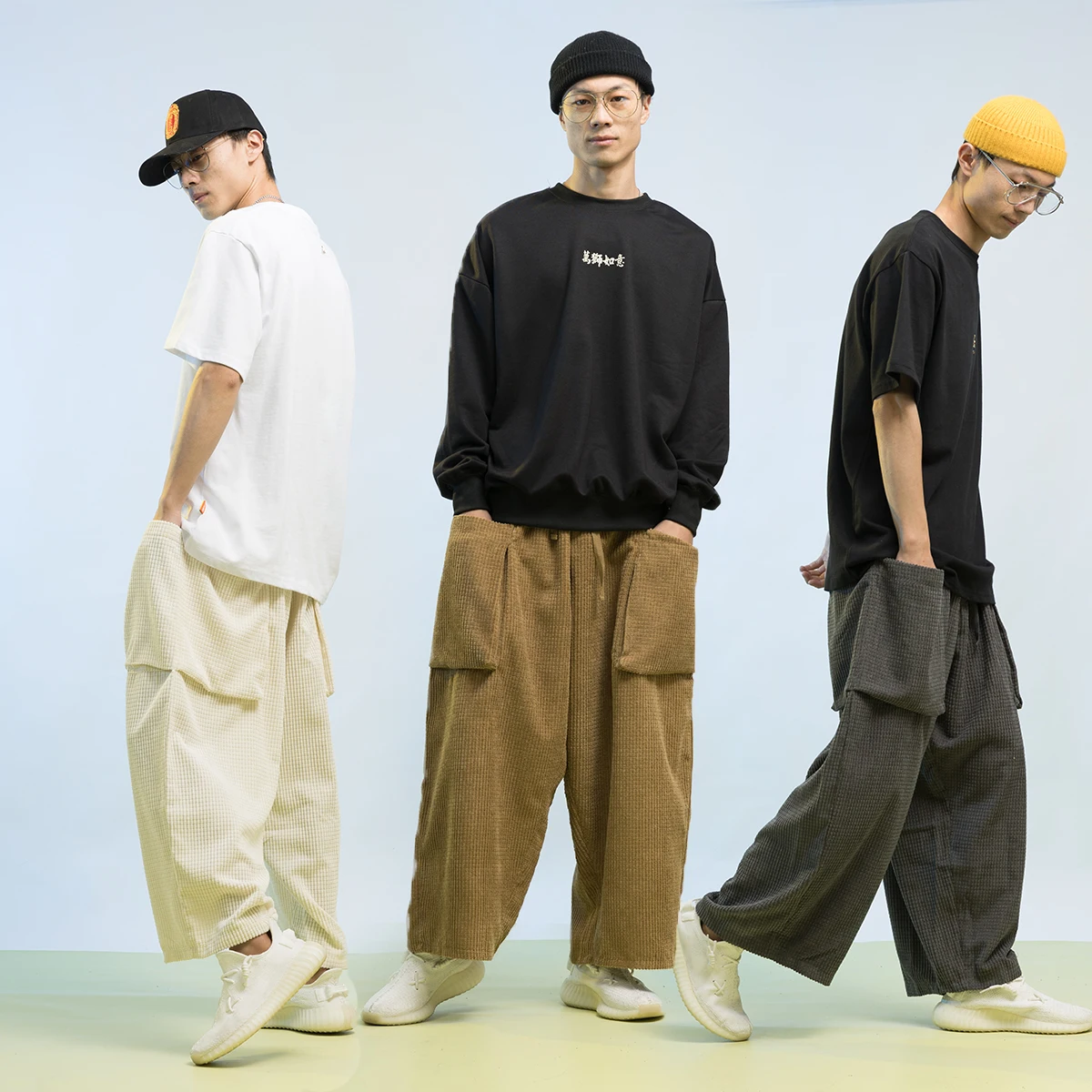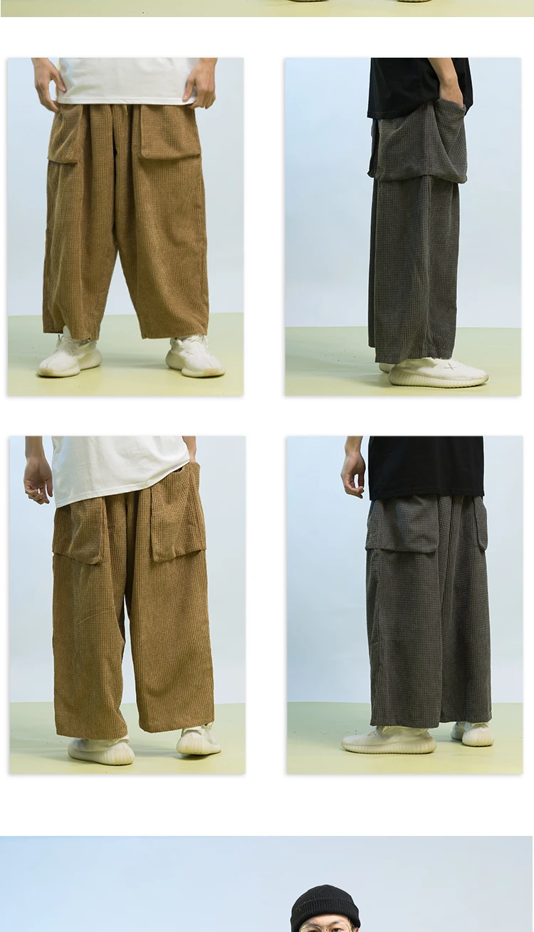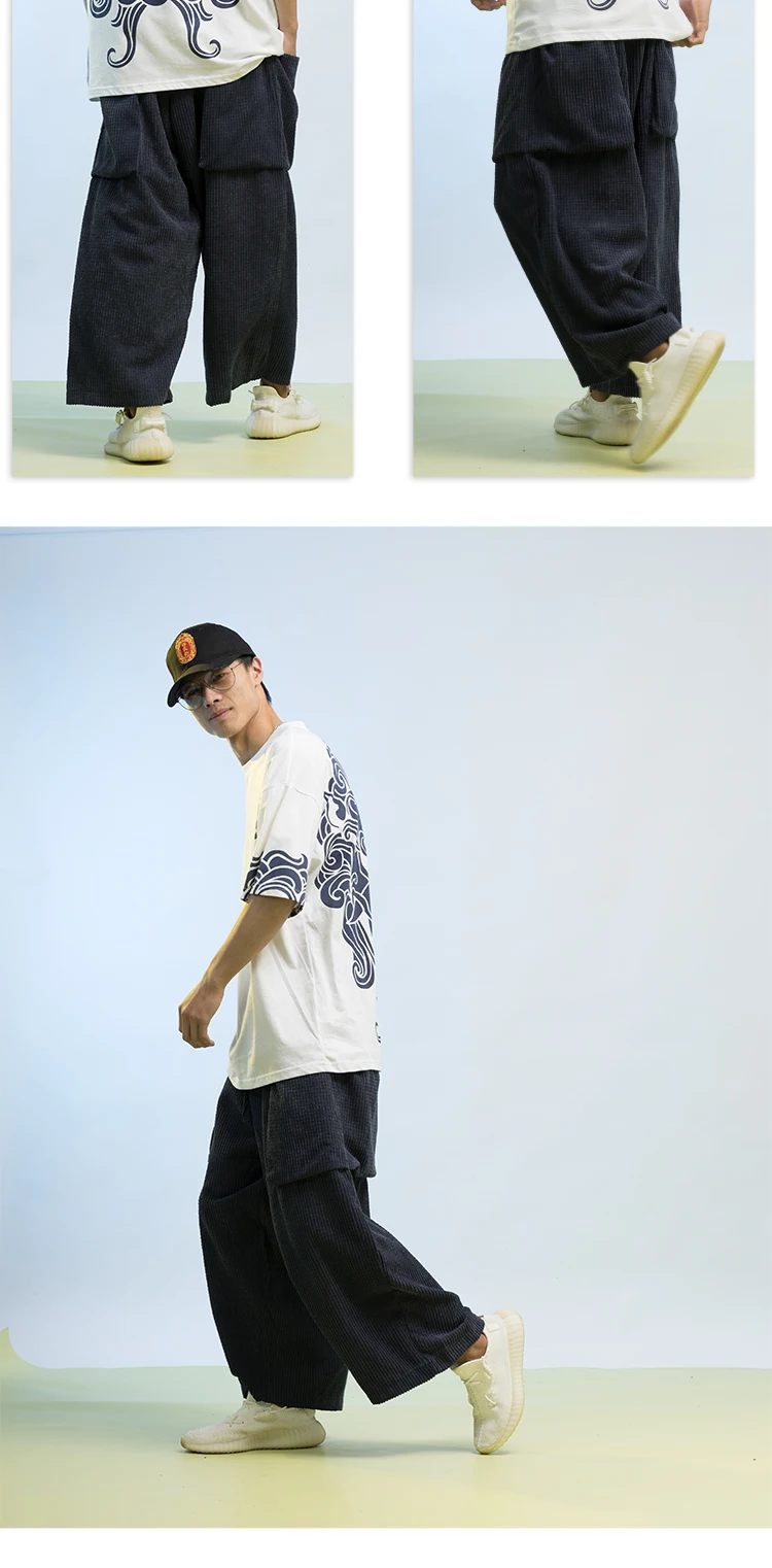 Spring Big Pocket Loose Plus Size Wide Leg Pants Hip Hop Couple Clothes Harajuku Straight Corduroy Cropped Trousers Men Women