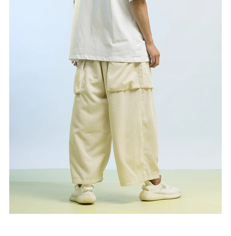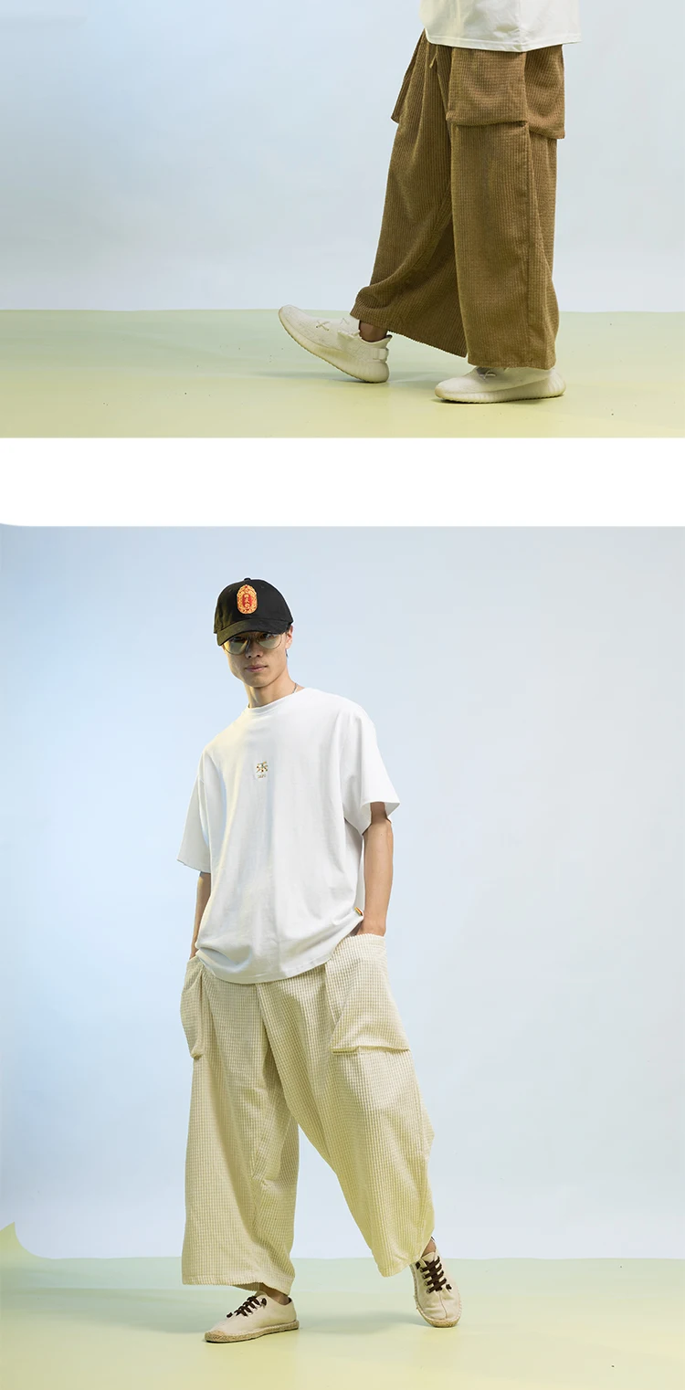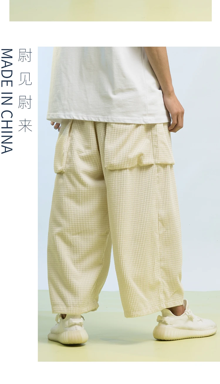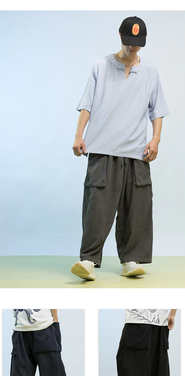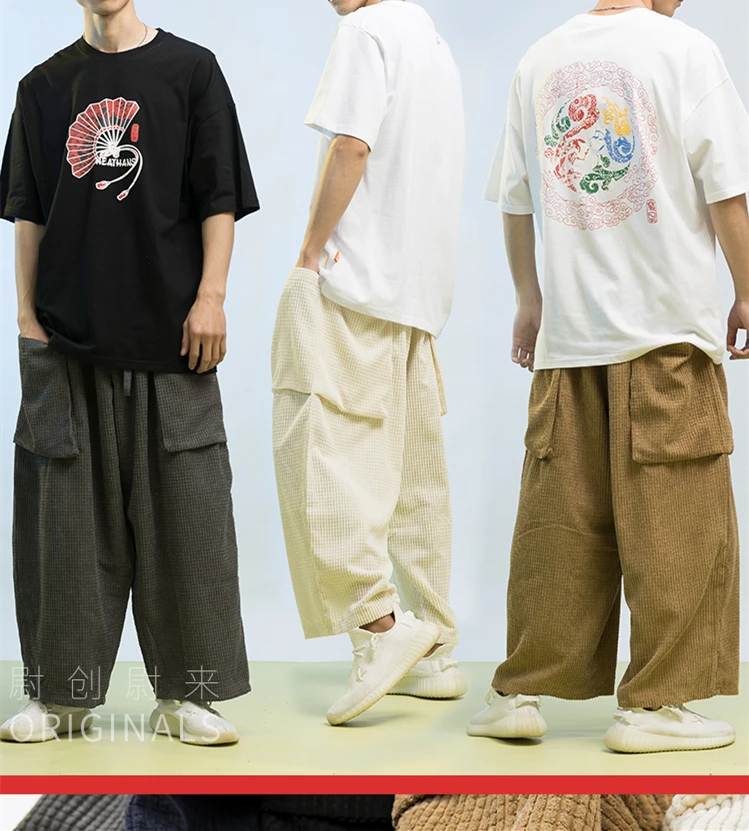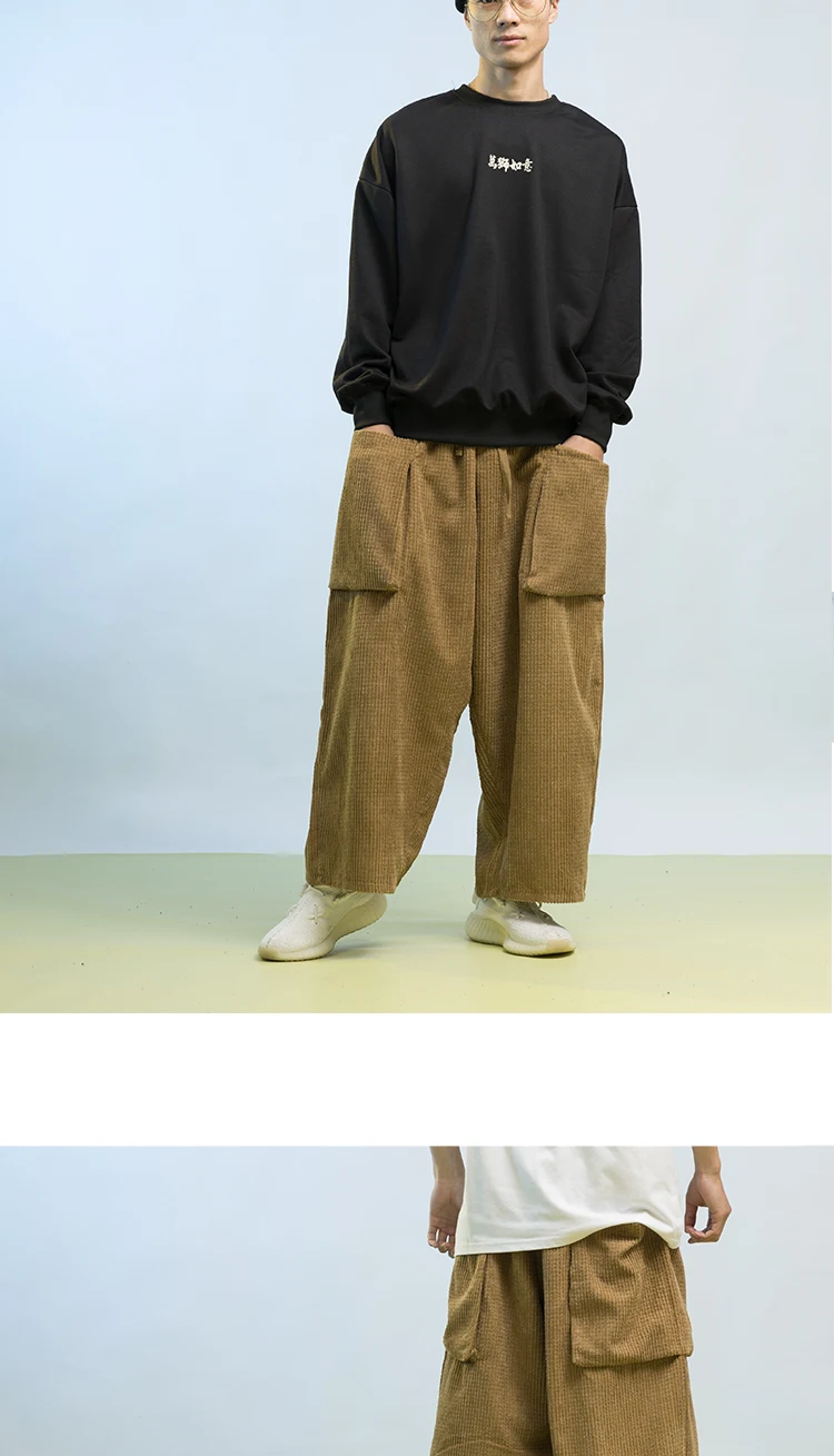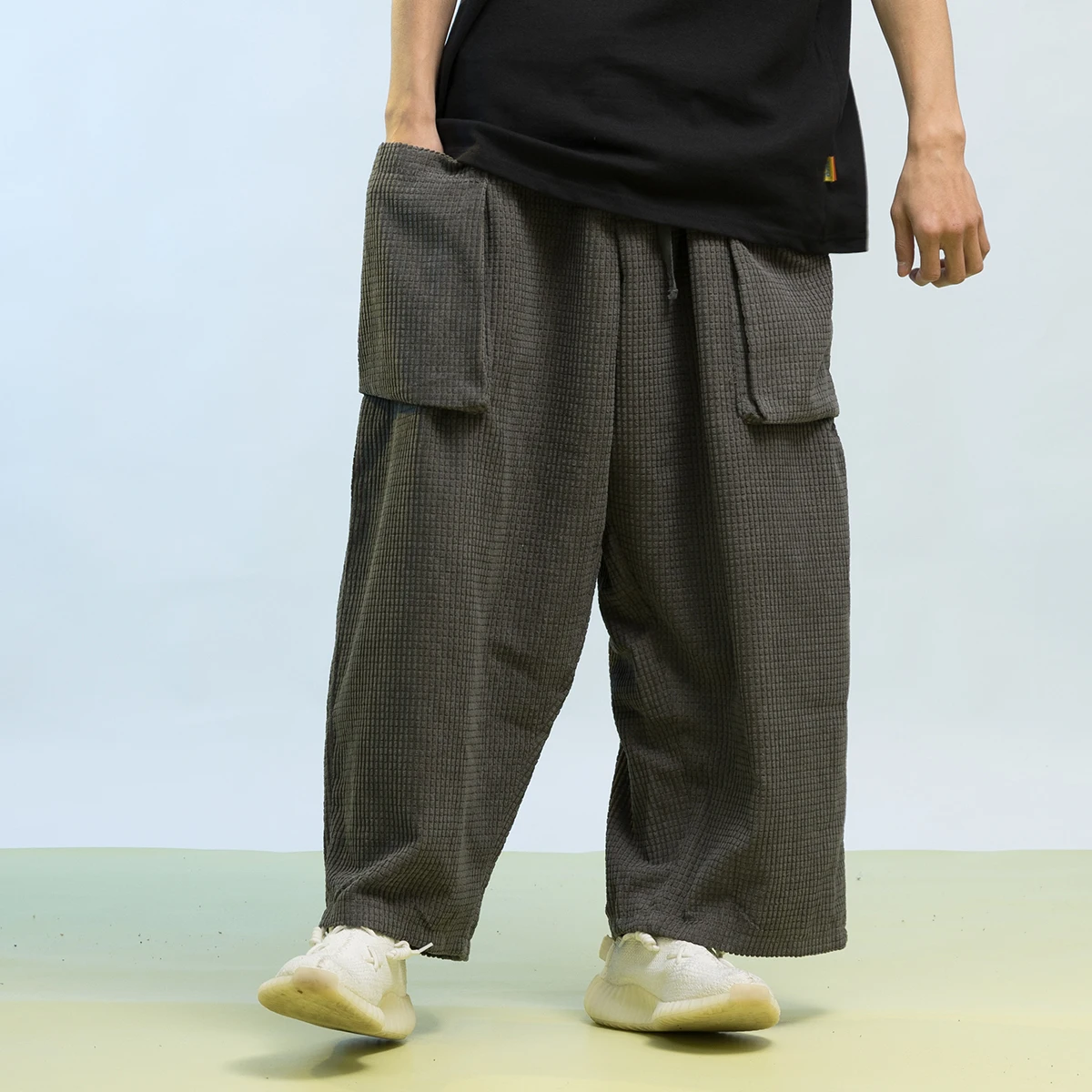 Spring Big Pocket Loose Plus Size Wide Leg Pants Hip Hop Couple Clothes Harajuku Straight Corduroy Cropped Trousers Men Women