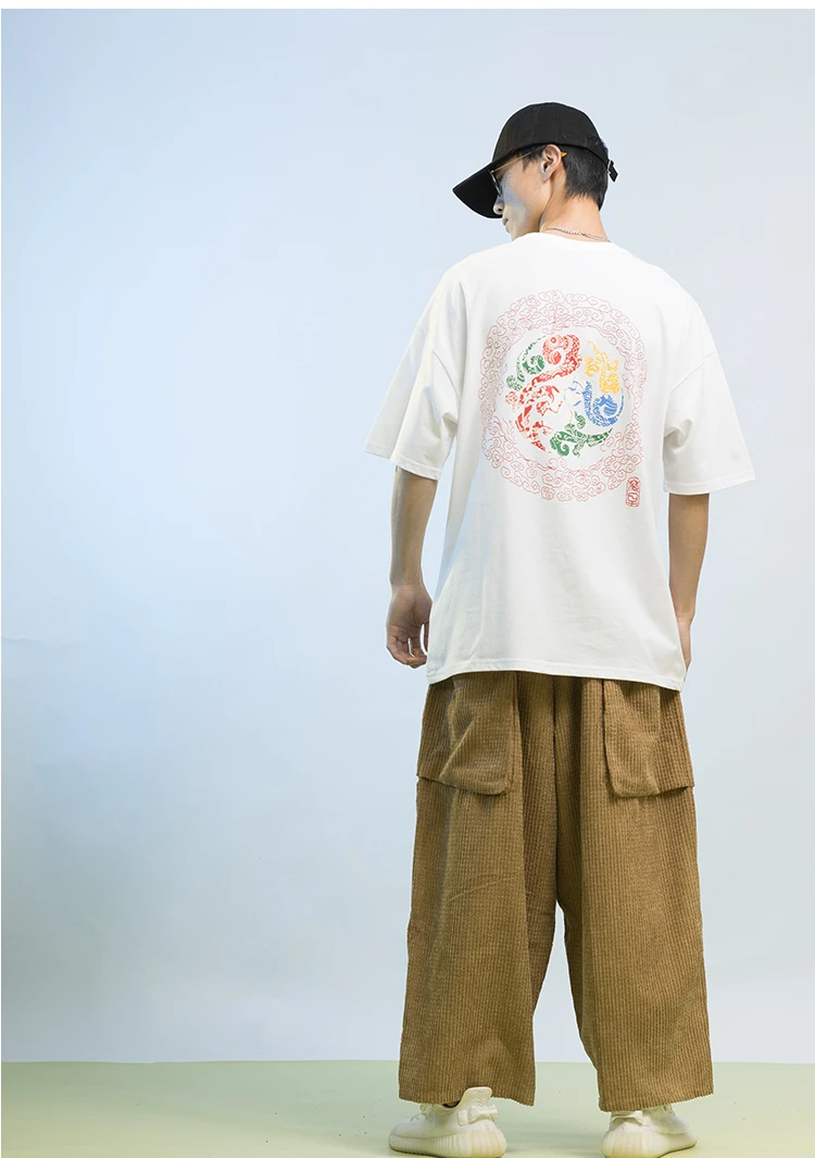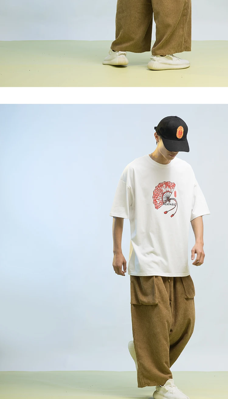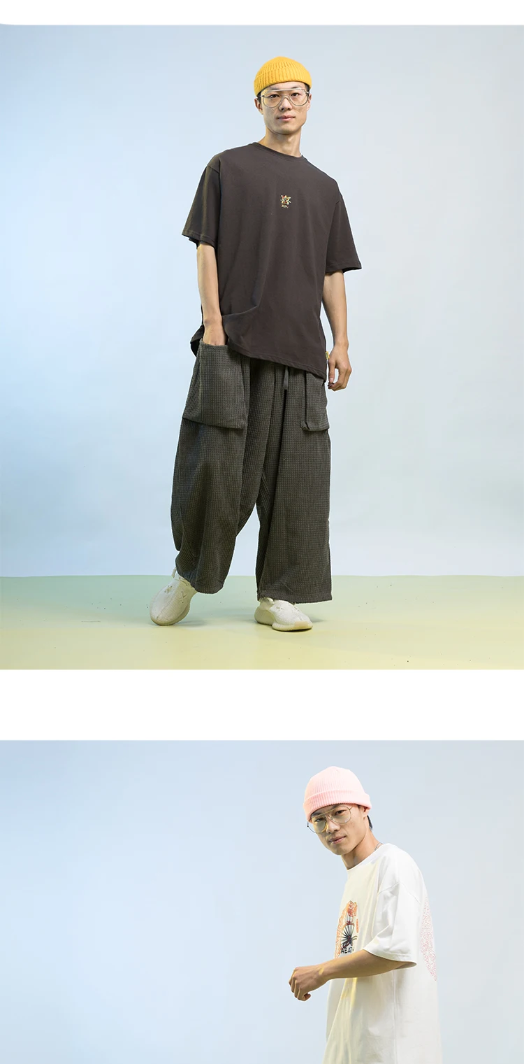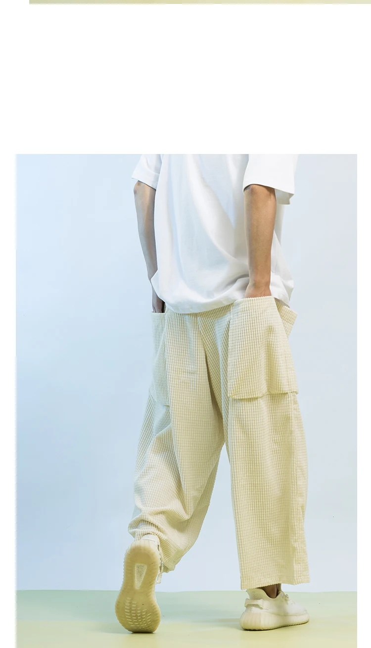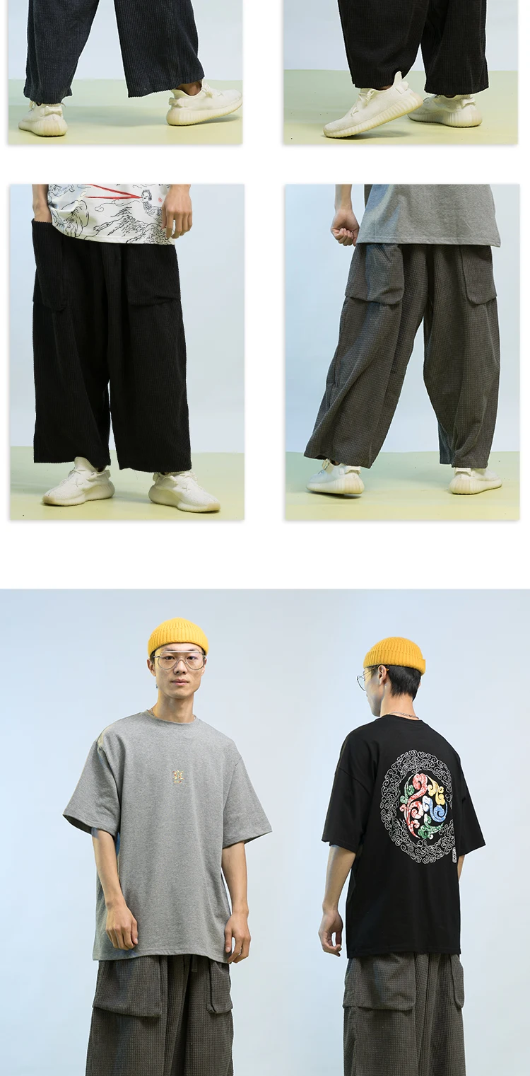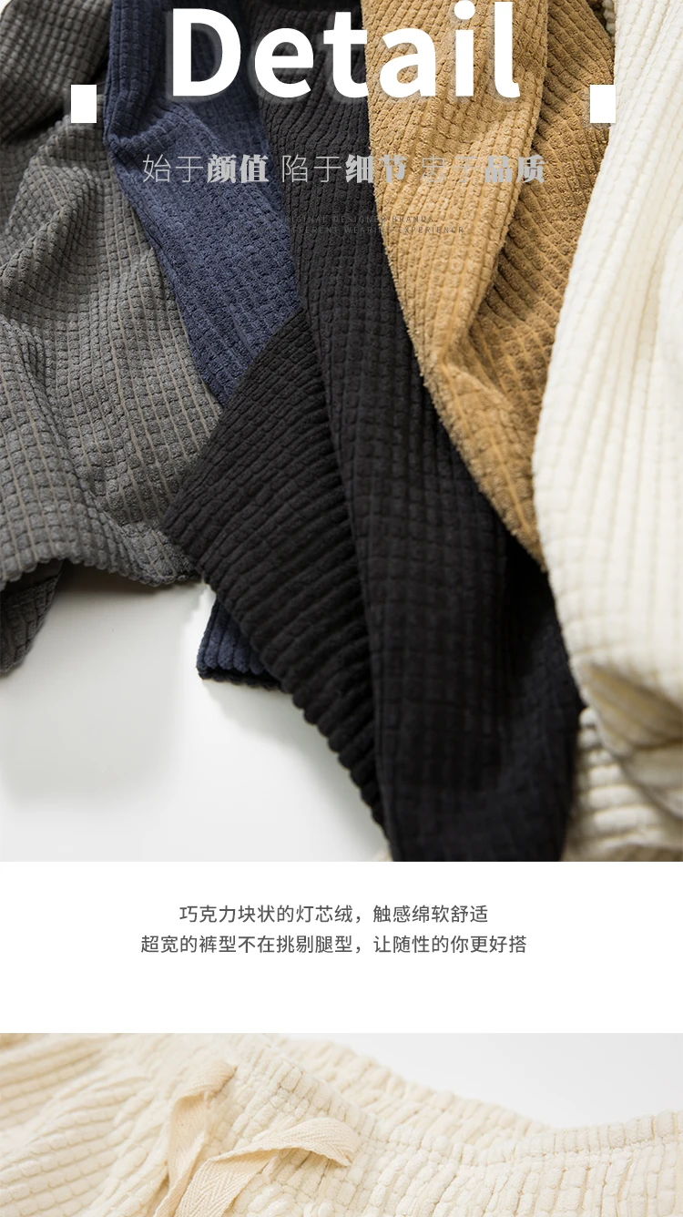 Spring Big Pocket Loose Plus Size Wide Leg Pants Hip Hop Couple Clothes Harajuku Straight Corduroy Cropped Trousers Men Women