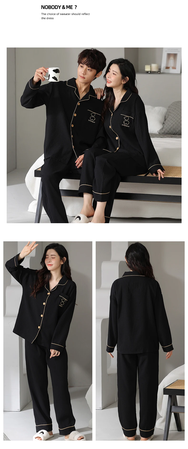 Spring Couple Pajamas 100% Cotton Sleepwear for Women and Men Pijamas Mujer Home Clothes M-4XL Pyjamas Femme
