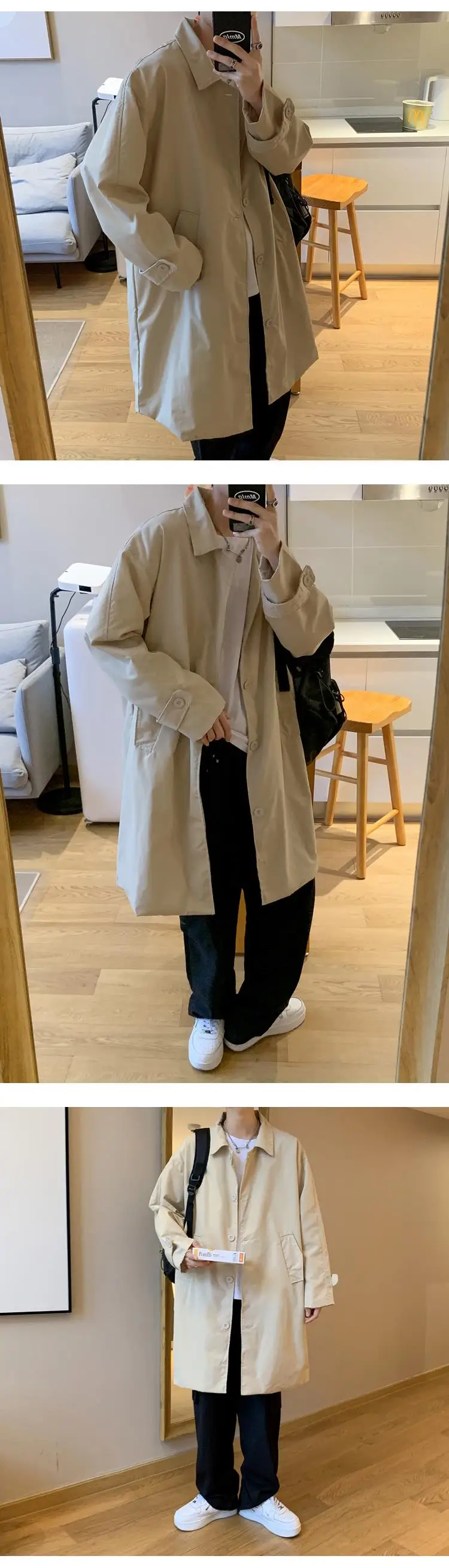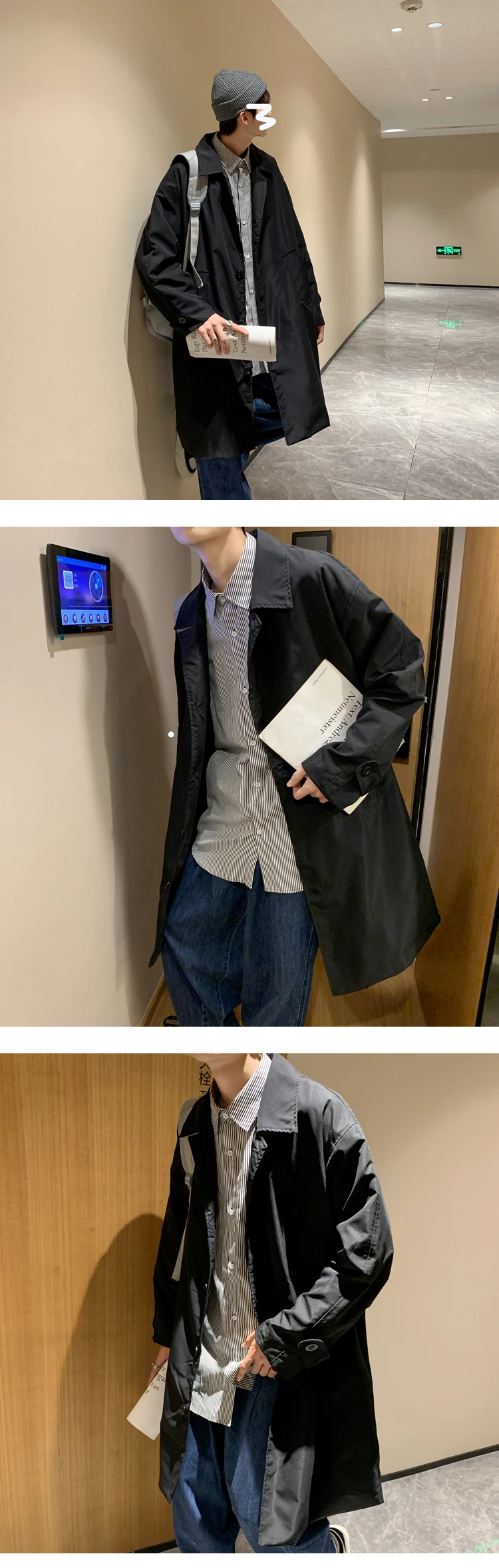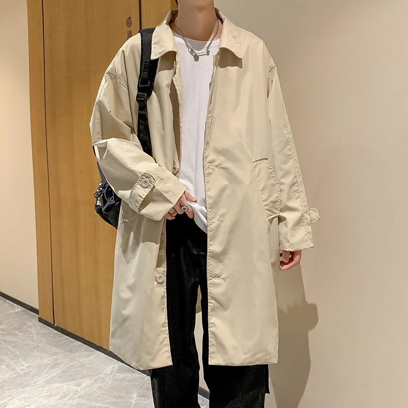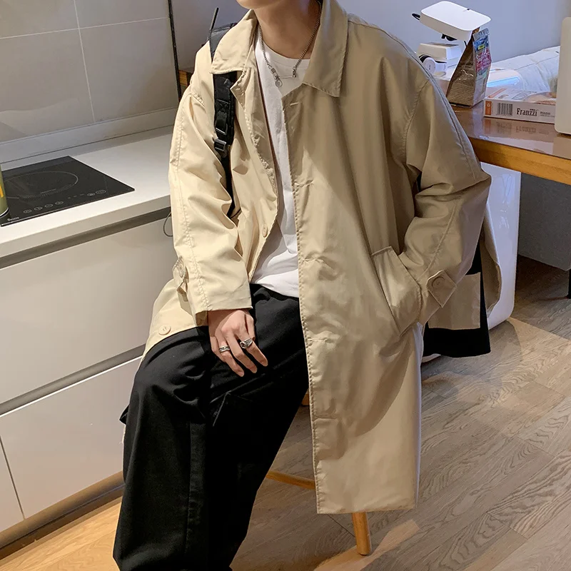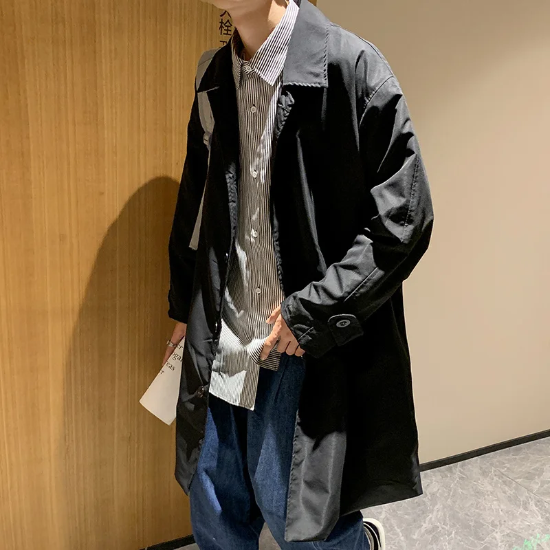 Spring Khaki/Black Trench Coat Men Fashion Casual Long Coat Men Streetwear Korean Loose Windbreaker Jacket Mens Overcoat M-2XL