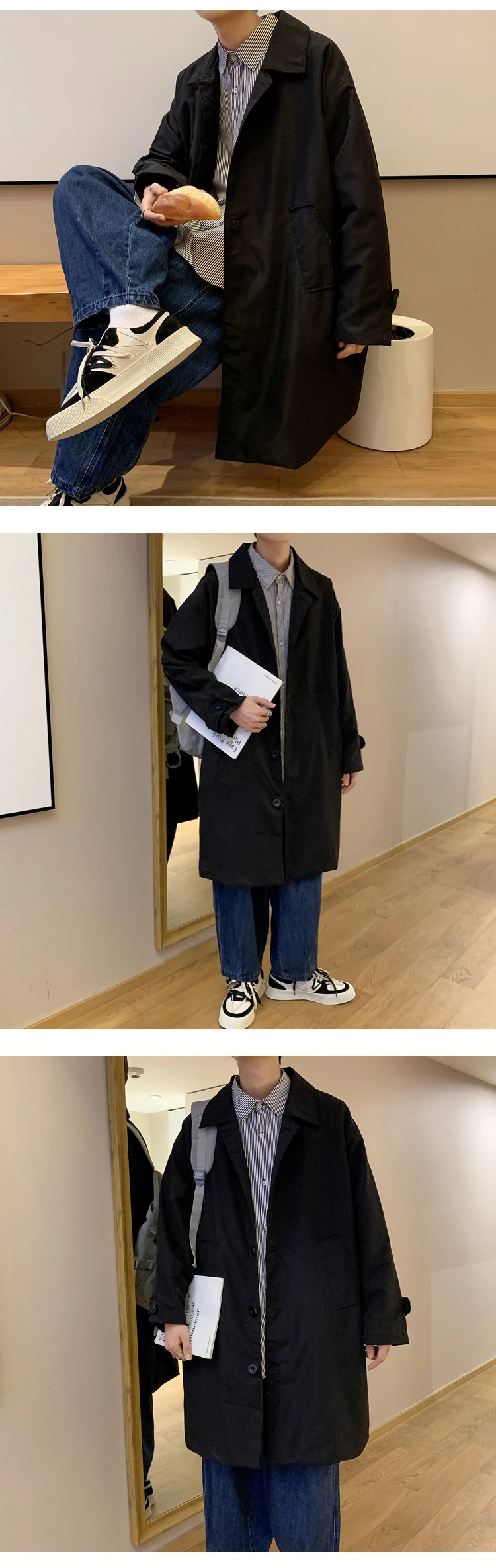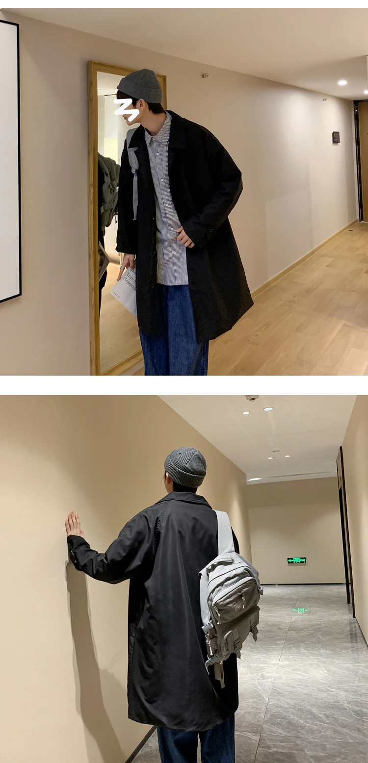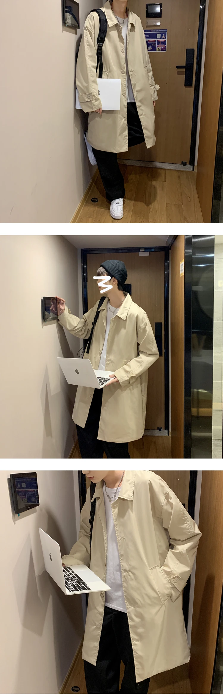 Spring Khaki/Black Trench Coat Men Fashion Casual Long Coat Men Streetwear Korean Loose Windbreaker Jacket Mens Overcoat M-2XL