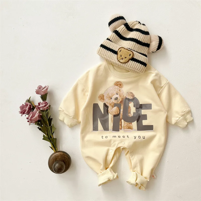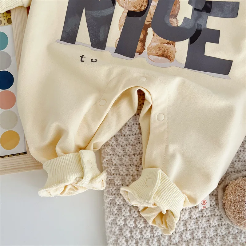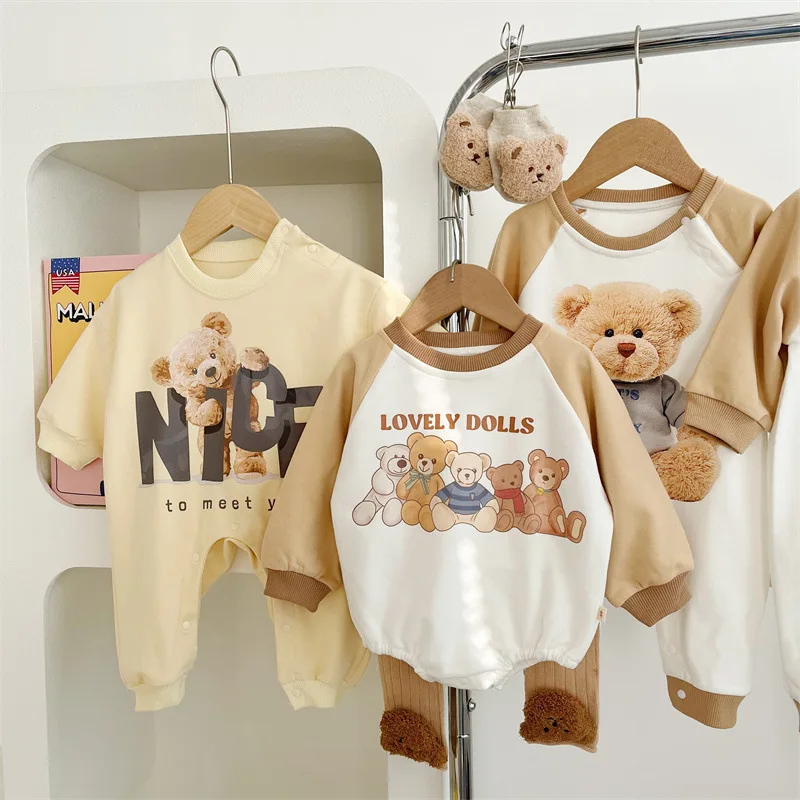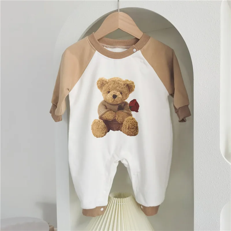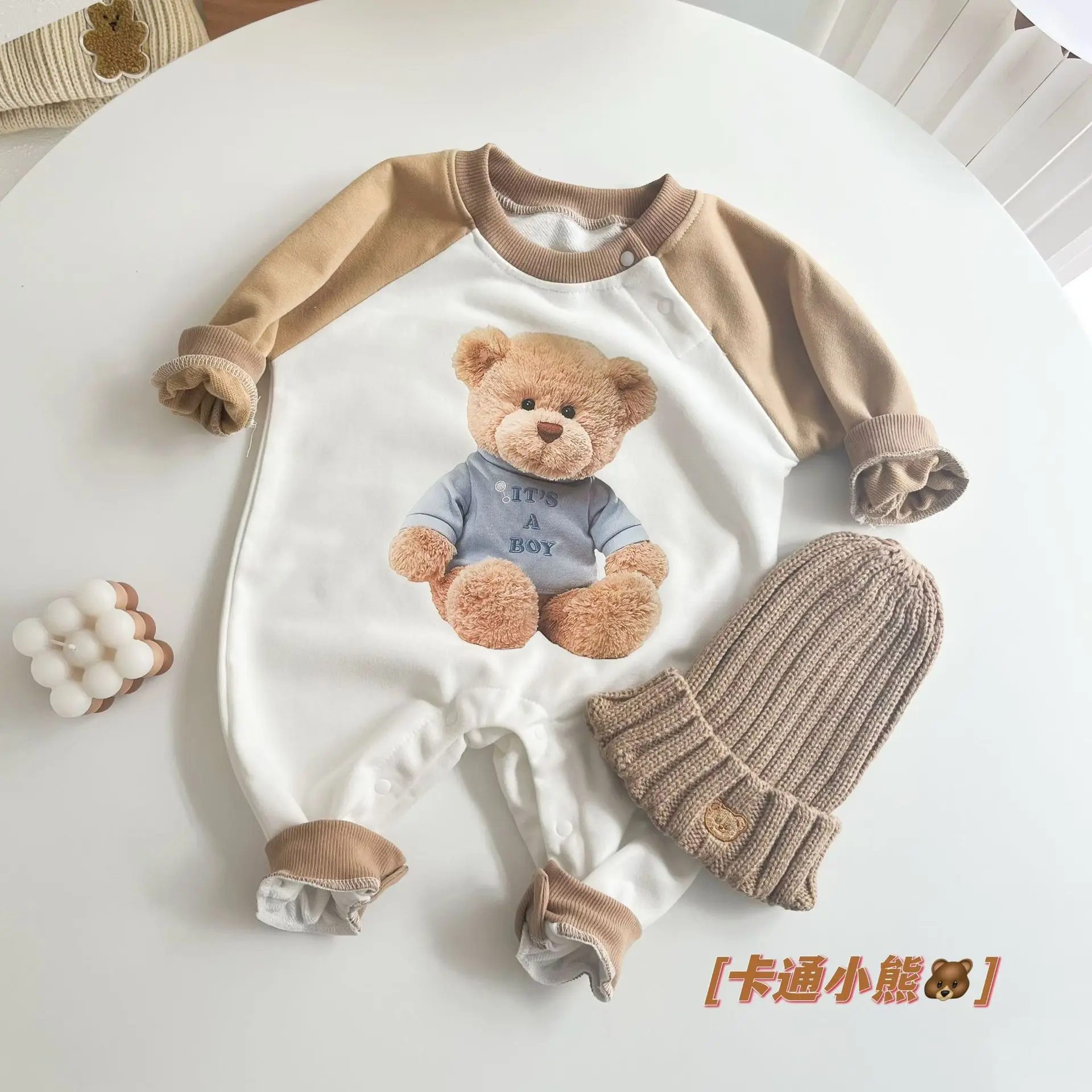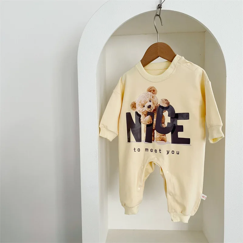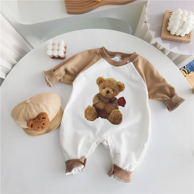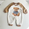 Spring khaki Cartoon Bear fashion sweater style jumpsuit for Gentalmen boys Onesie Cute girls Clothes 0-2 year
