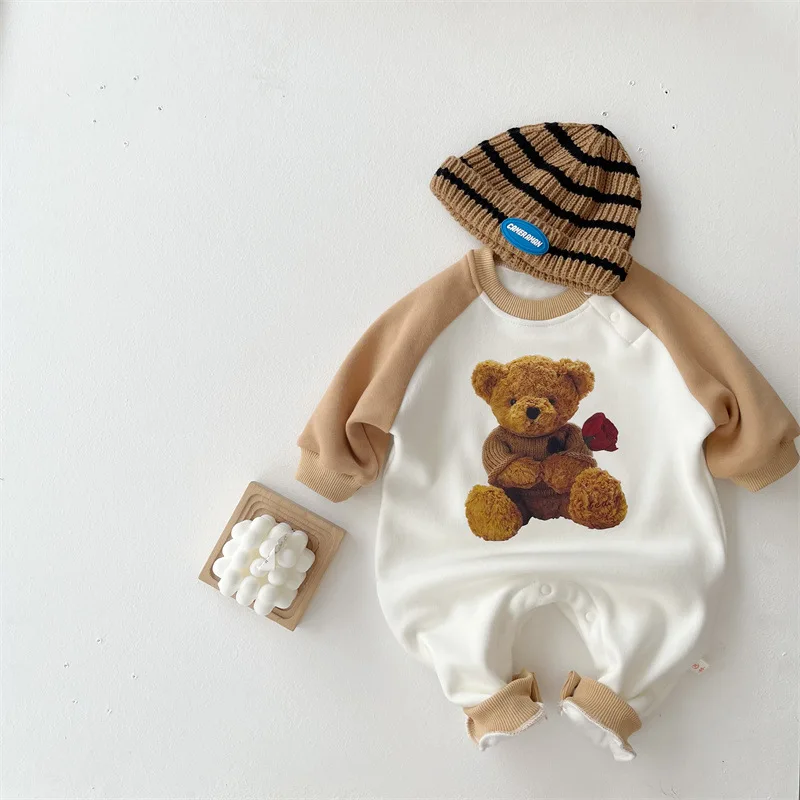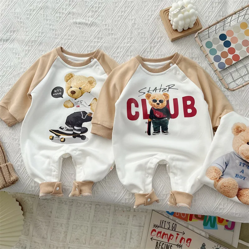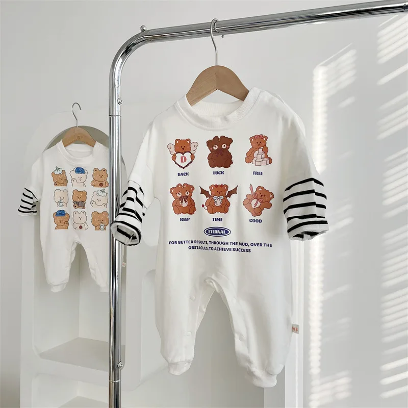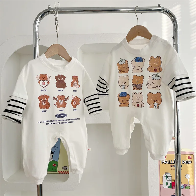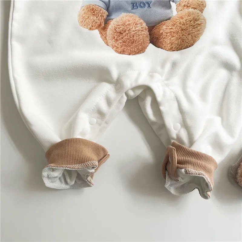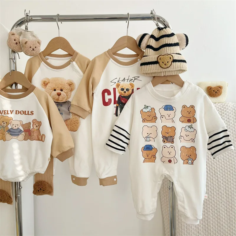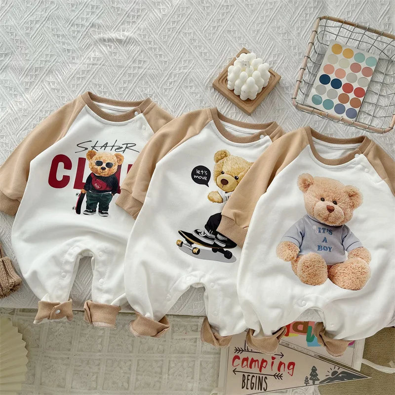 Spring khaki Cartoon Bear fashion sweater style jumpsuit for Gentalmen boys Onesie Cute girls Clothes 0-2 year