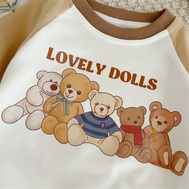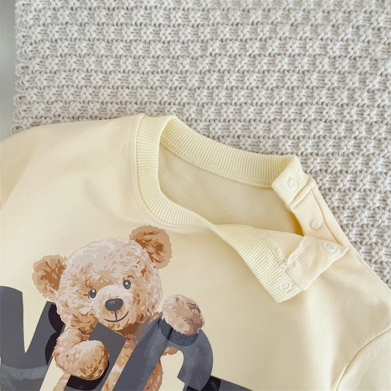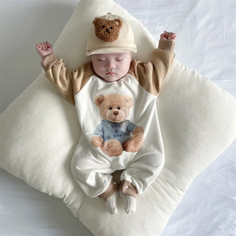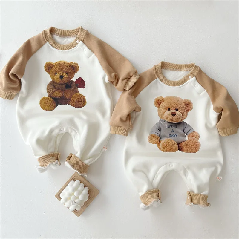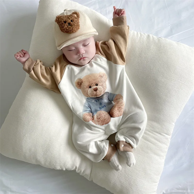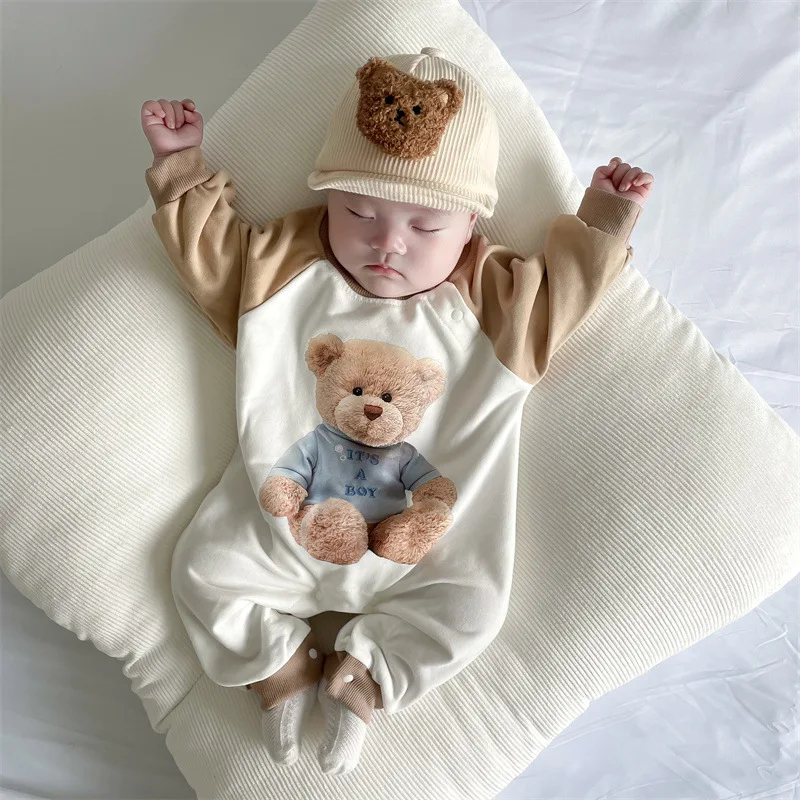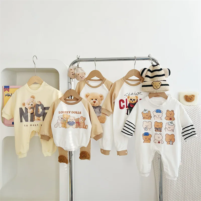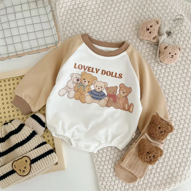 Spring khaki Cartoon Bear fashion sweater style jumpsuit for Gentalmen boys Onesie Cute girls Clothes 0-2 year