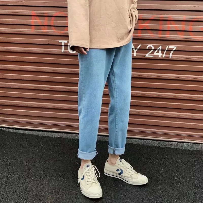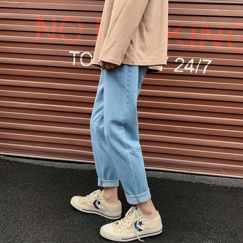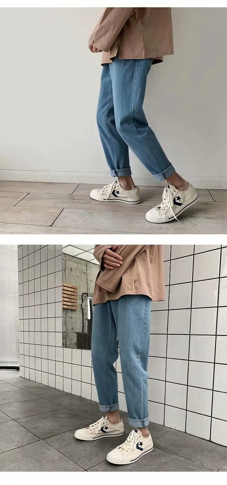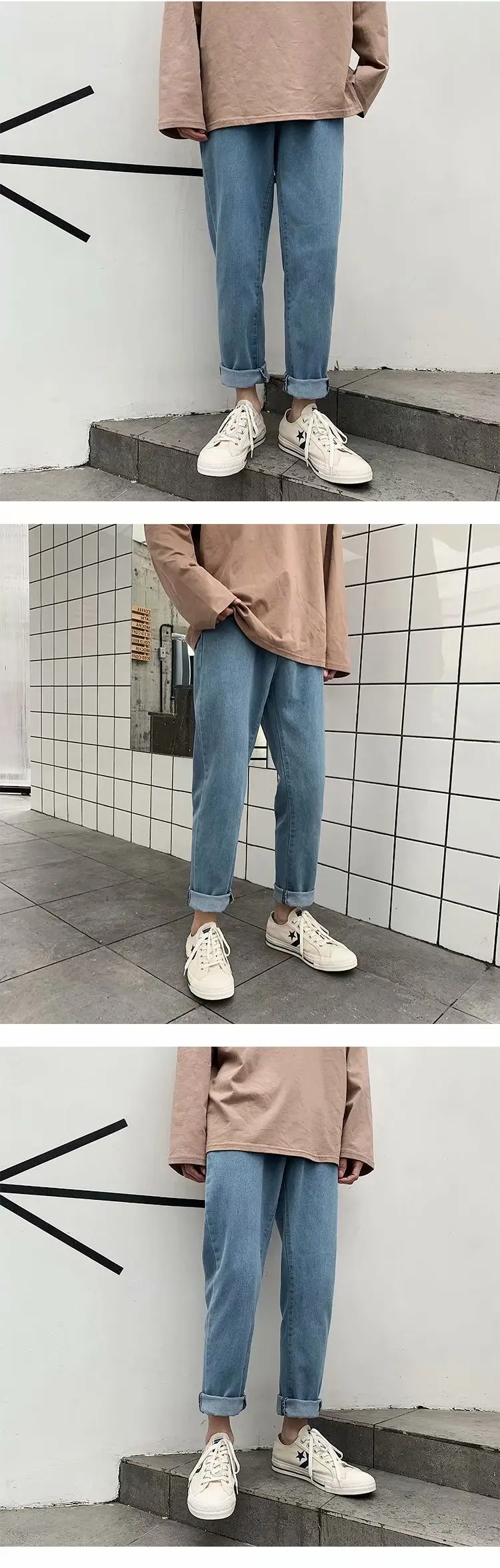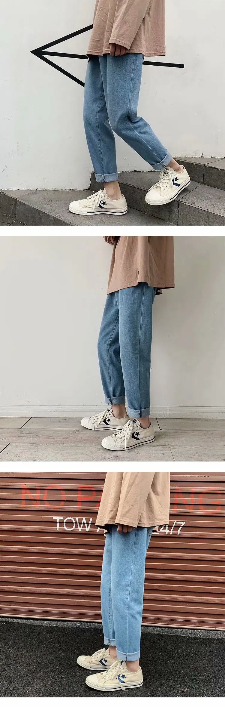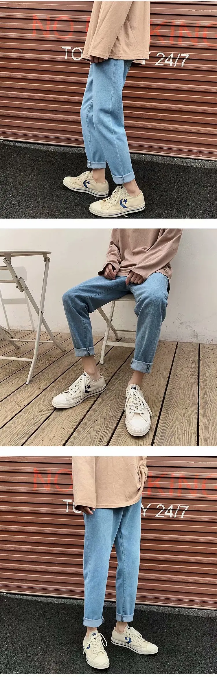 Spring Summer 2022 Fashion Straight Jeans Men’s Washed Wild Korean Trendy Loose Teenagers Cropped Pants Students Bf Casual Pants