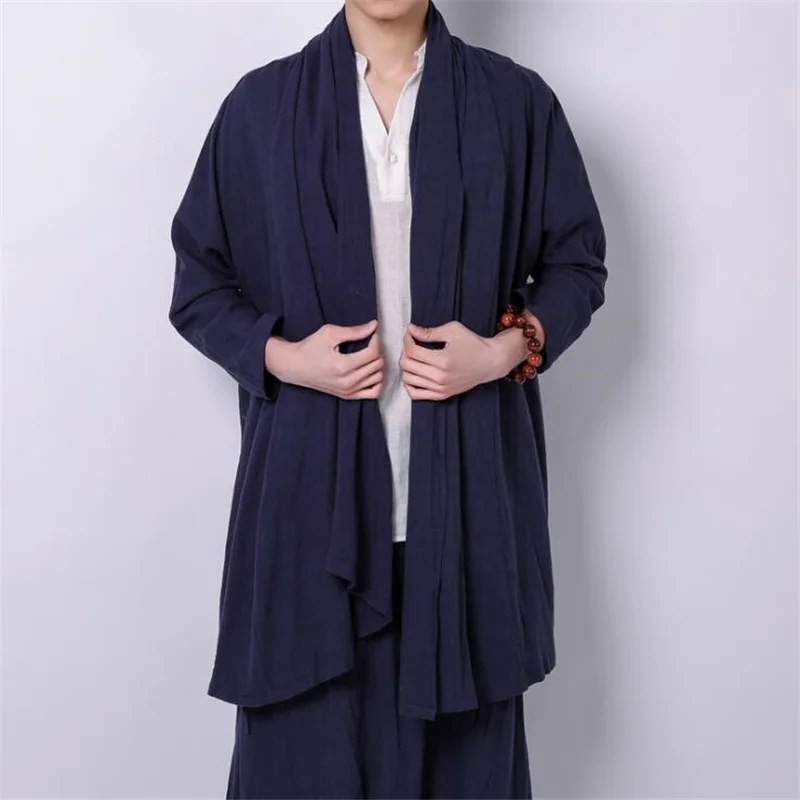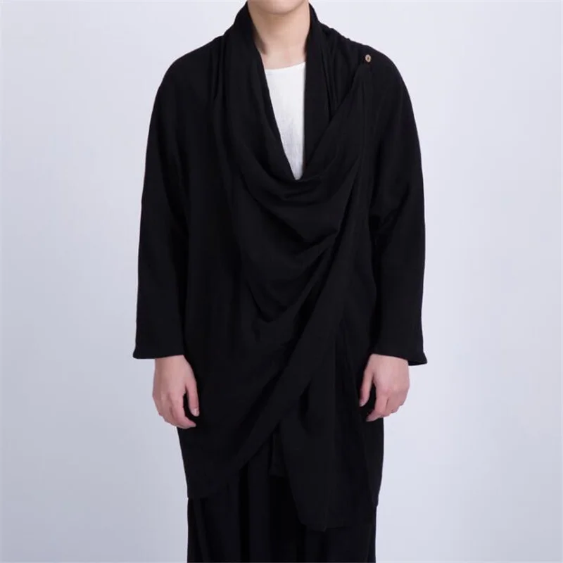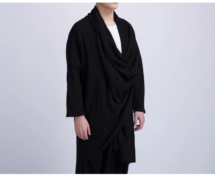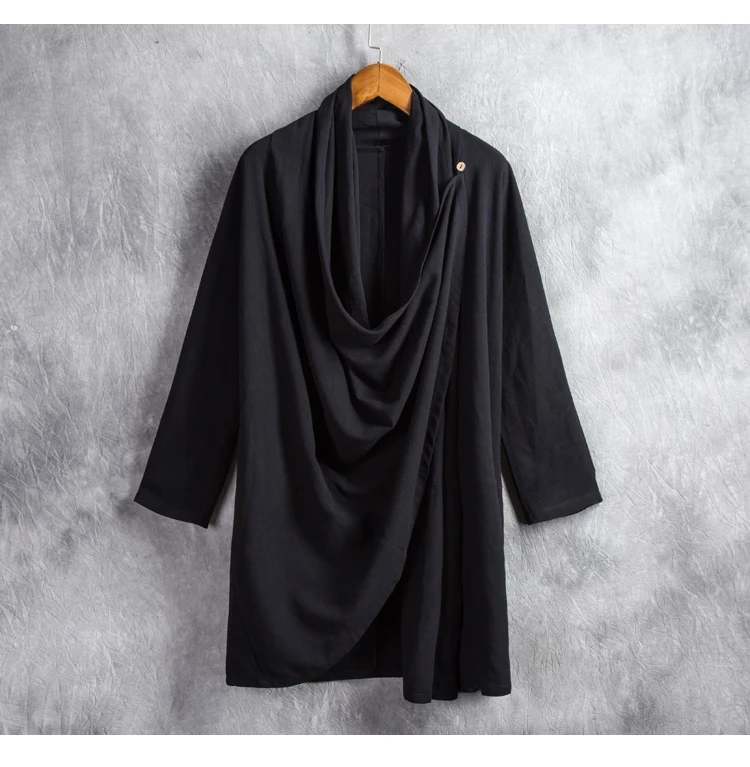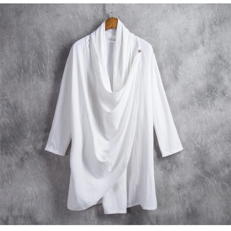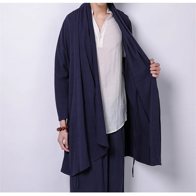 Spring summer men cotton & linen vintage long trench coat nightclub DJ singer stage costume sinicism cardigan cloak for man