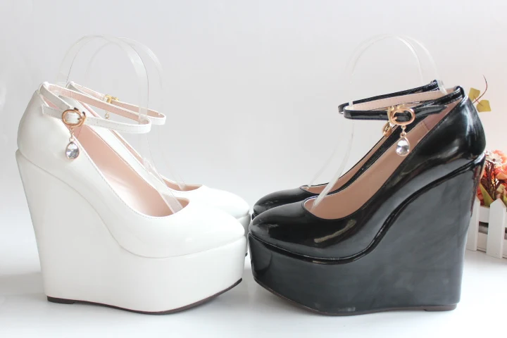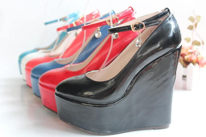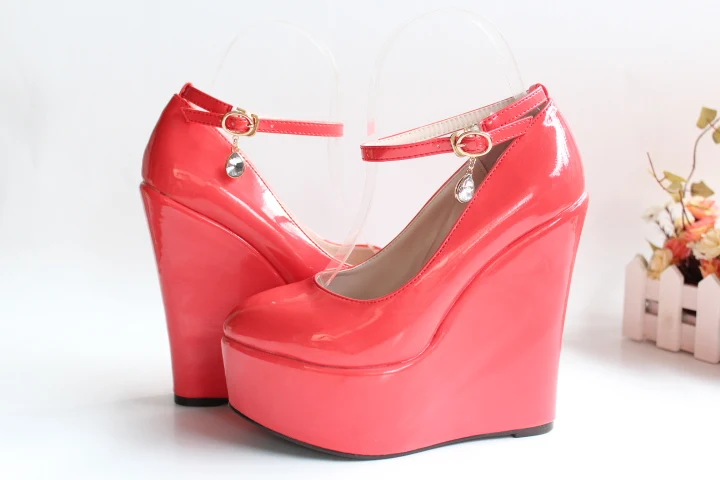 Spring Women’s Wedding Shoes Female Super High Heels with Platform Wedges Patent Leather Women’s Pumps Shallow Mouth 30–43