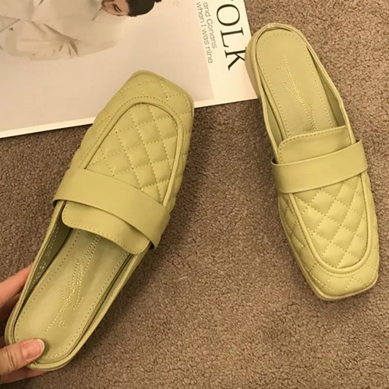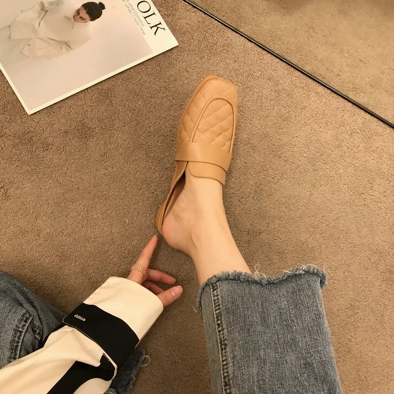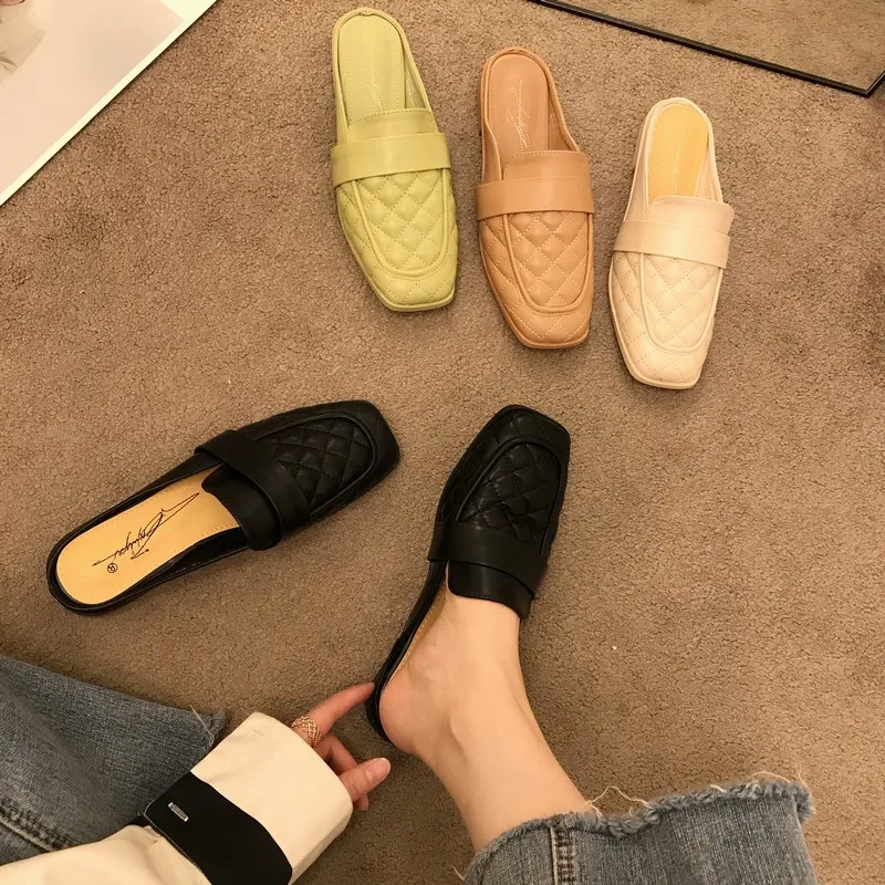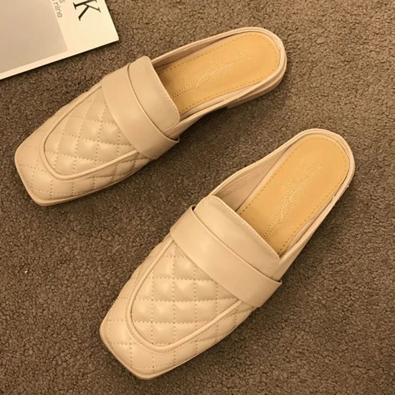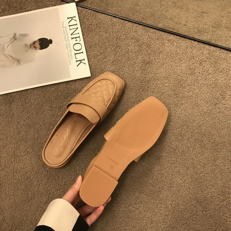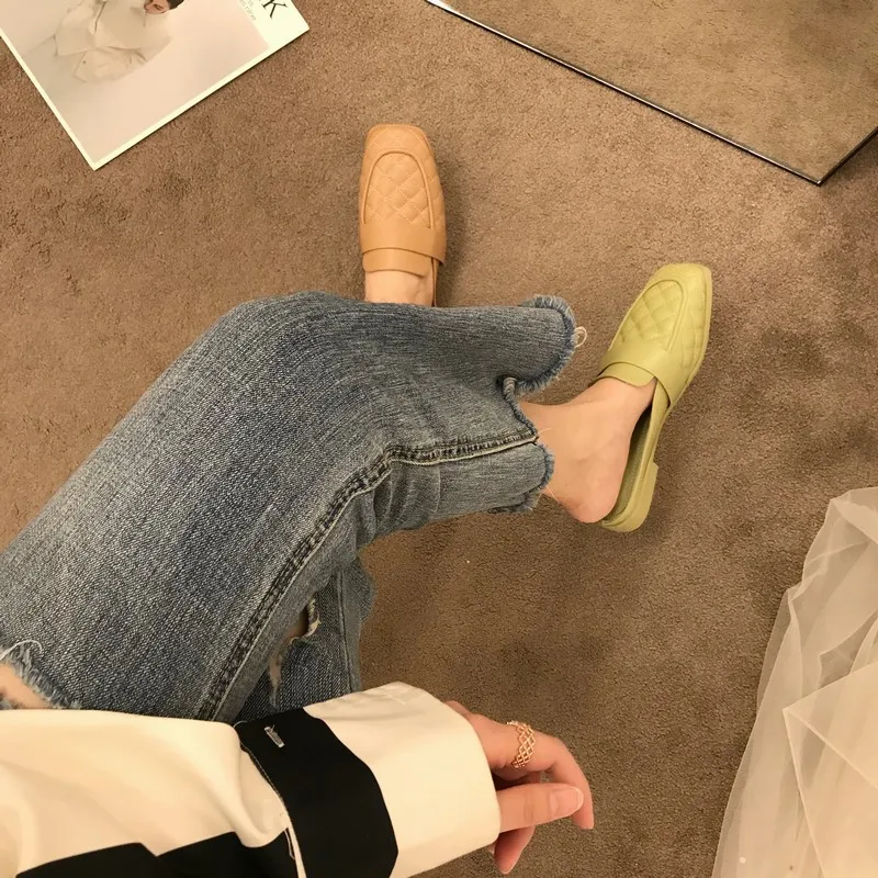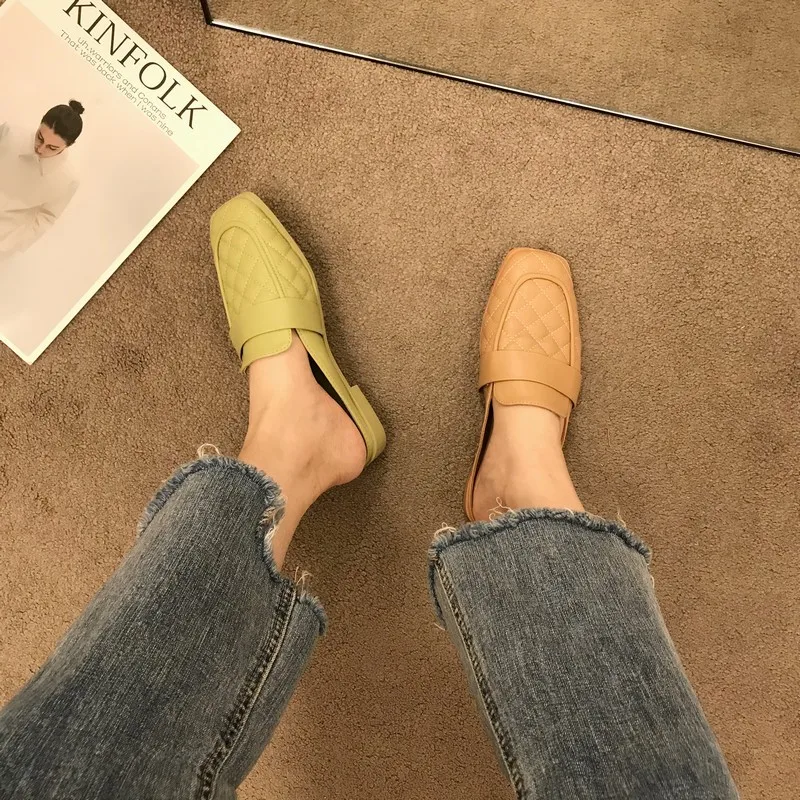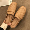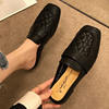 Square Toe weave mules beach flat slides women shoes microfiber leather flip flops solid knitted cover toe slippers women 2020