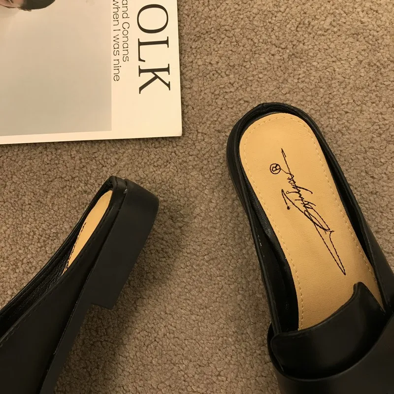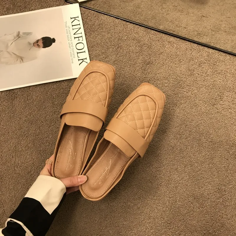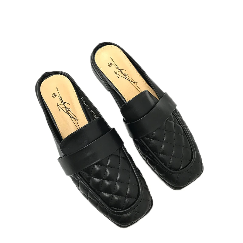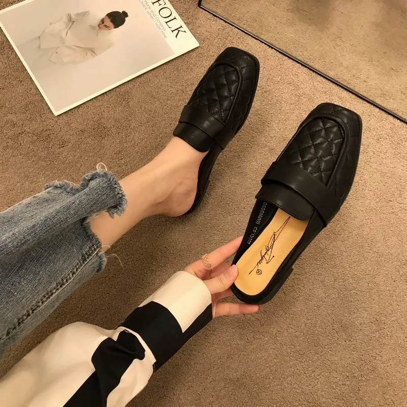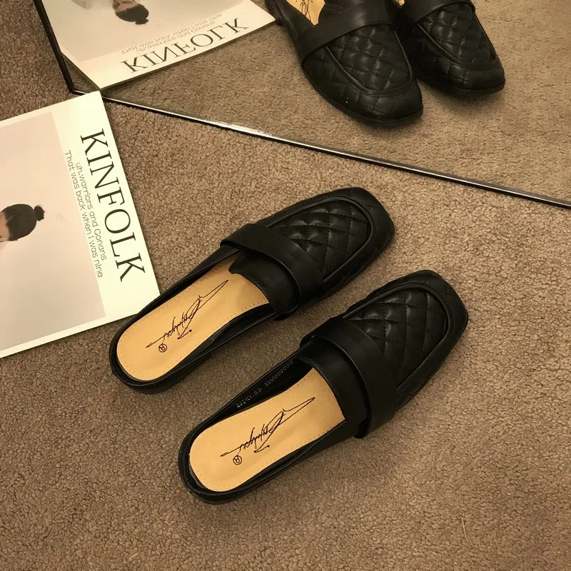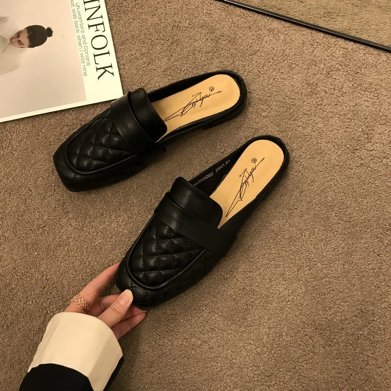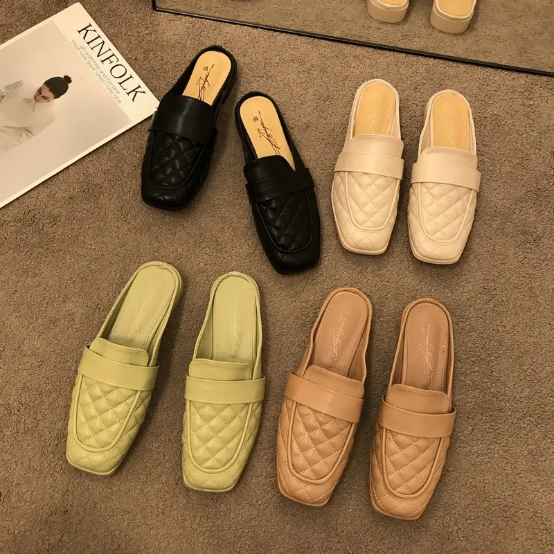 Square Toe weave mules beach flat slides women shoes microfiber leather flip flops solid knitted cover toe slippers women 2020