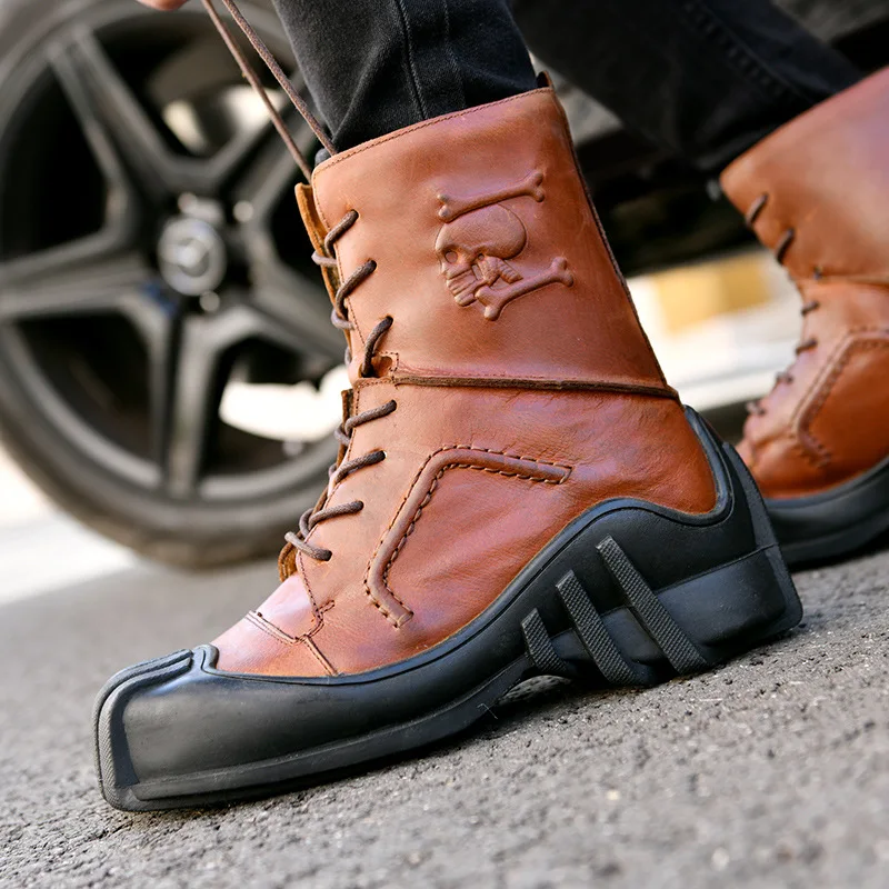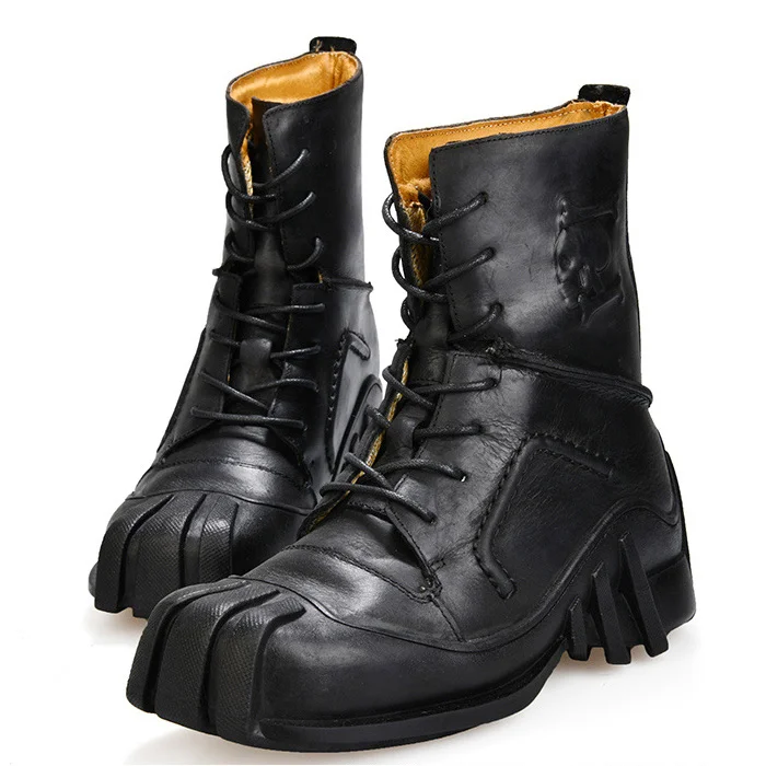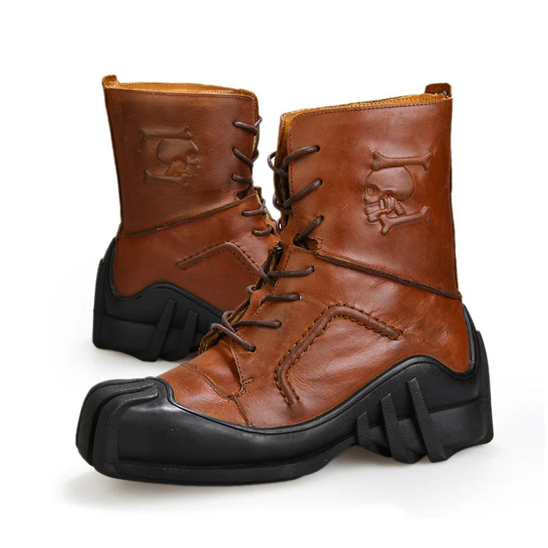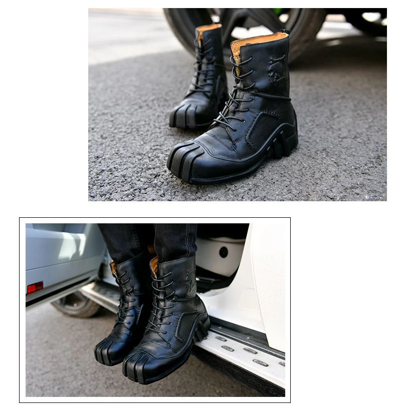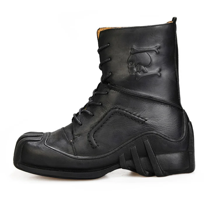 Steampunk Men’s Boots Genuine Cow Leather Retro Males Locomotive Riding Martin Motorcycle Men Tooling Boot 38~50
