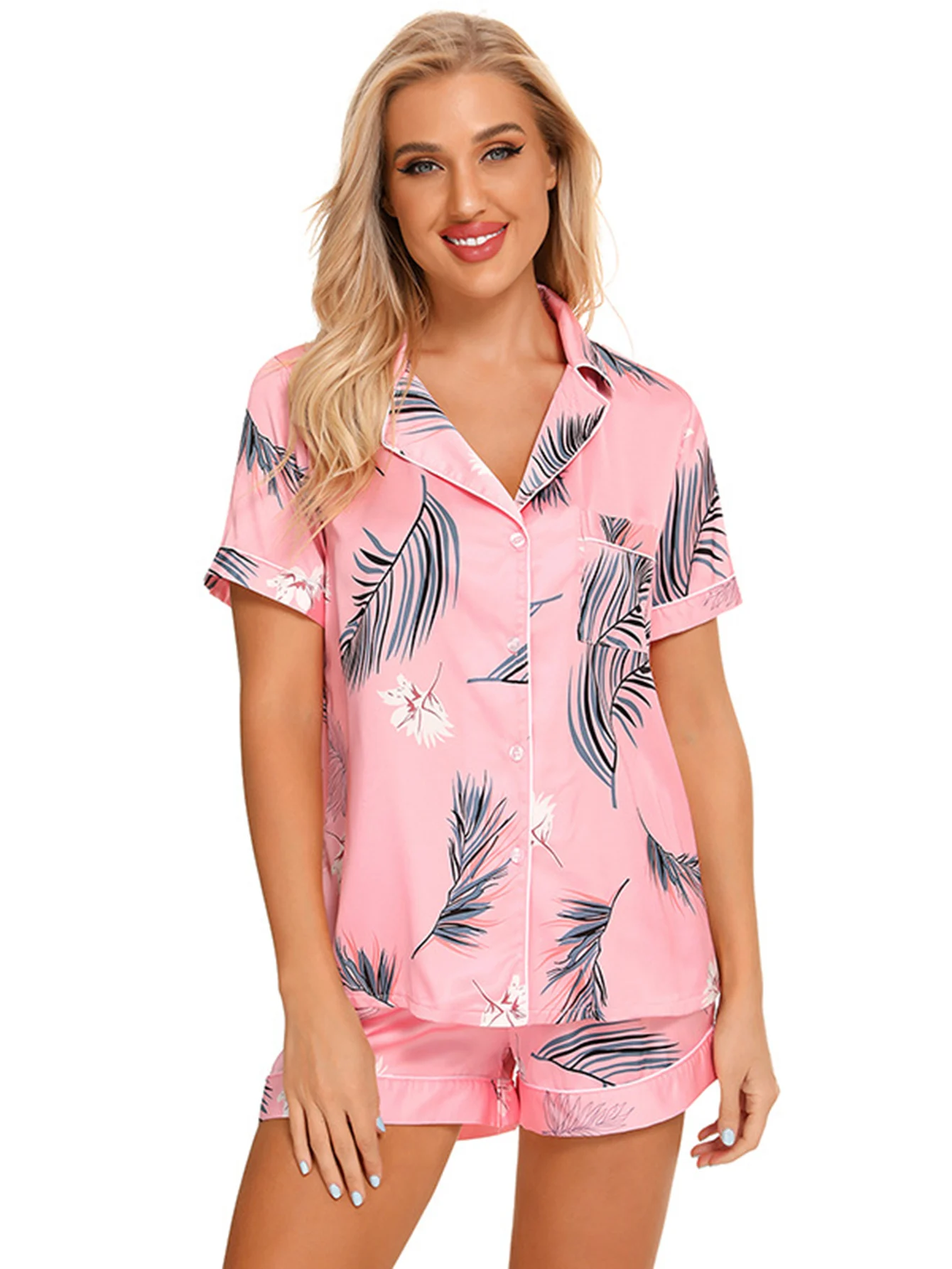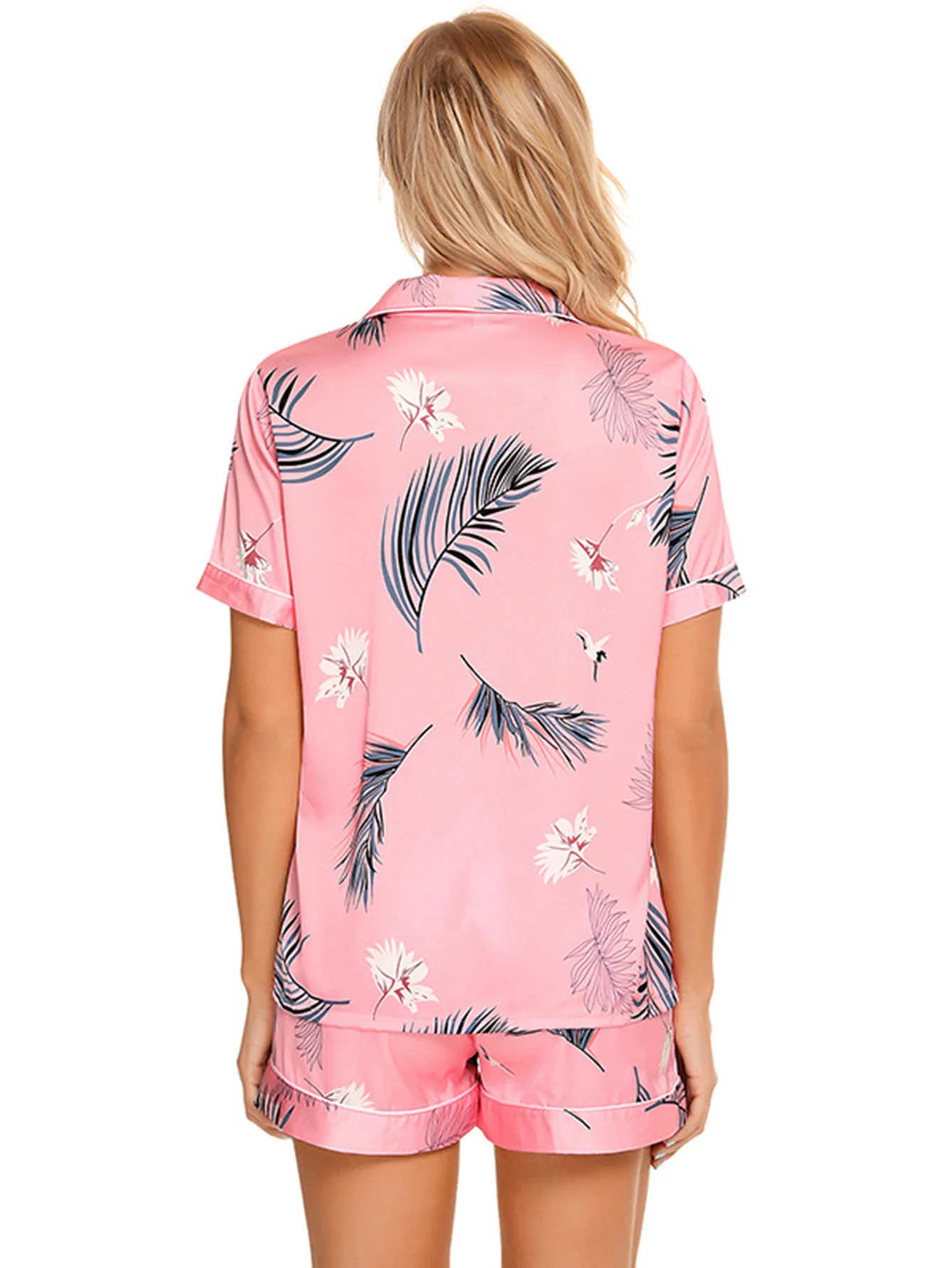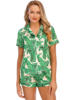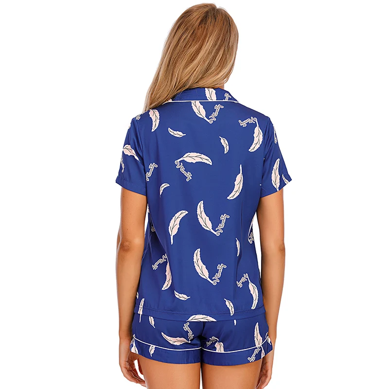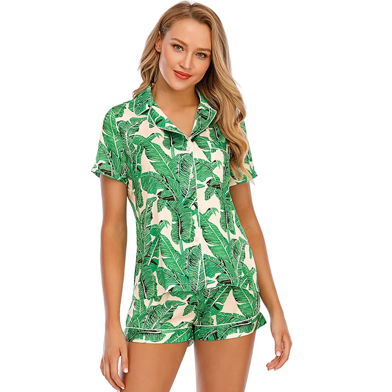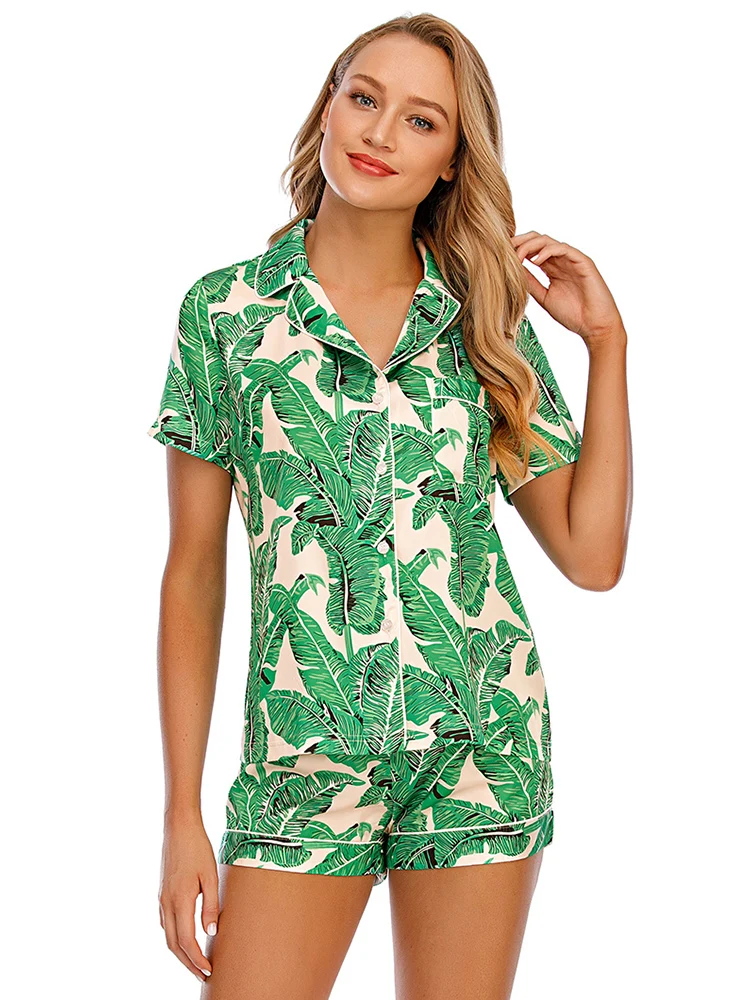 Stretch Satin Satin Printed Short Sleeve Shorts Set Kiriken Lapel Comfort Loungewear