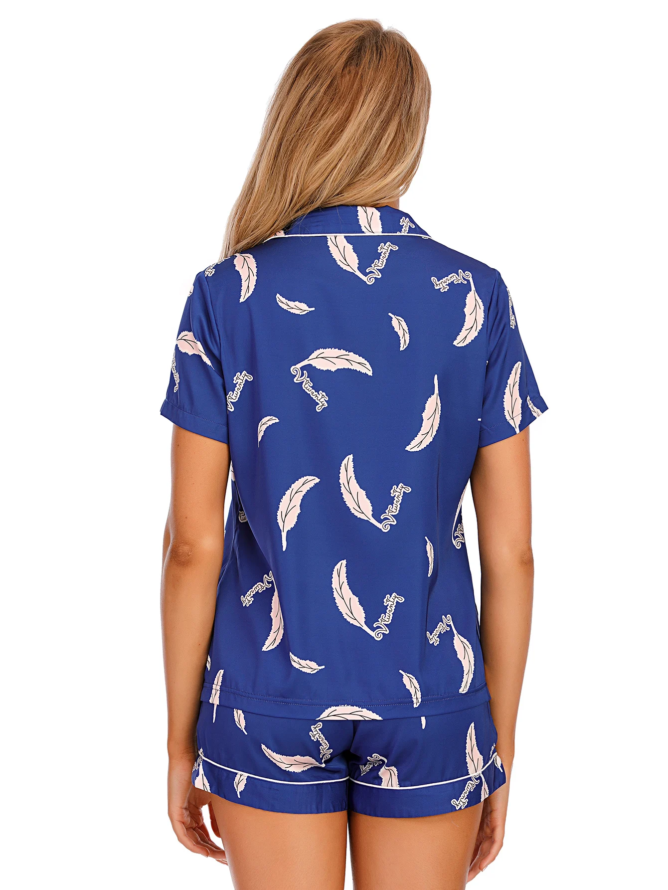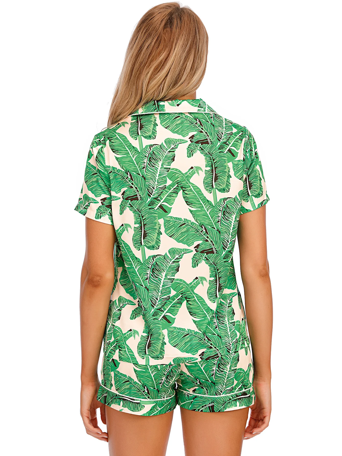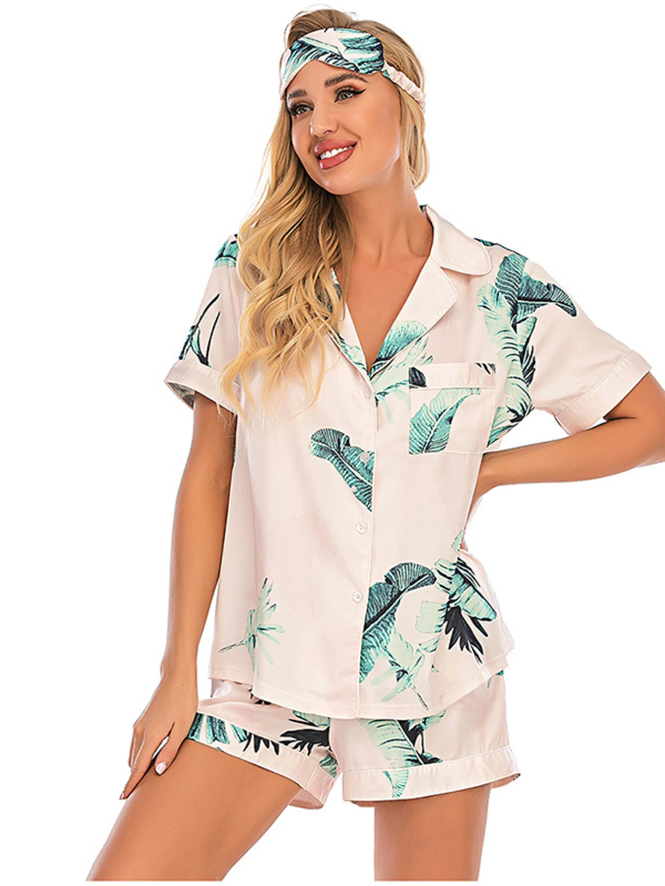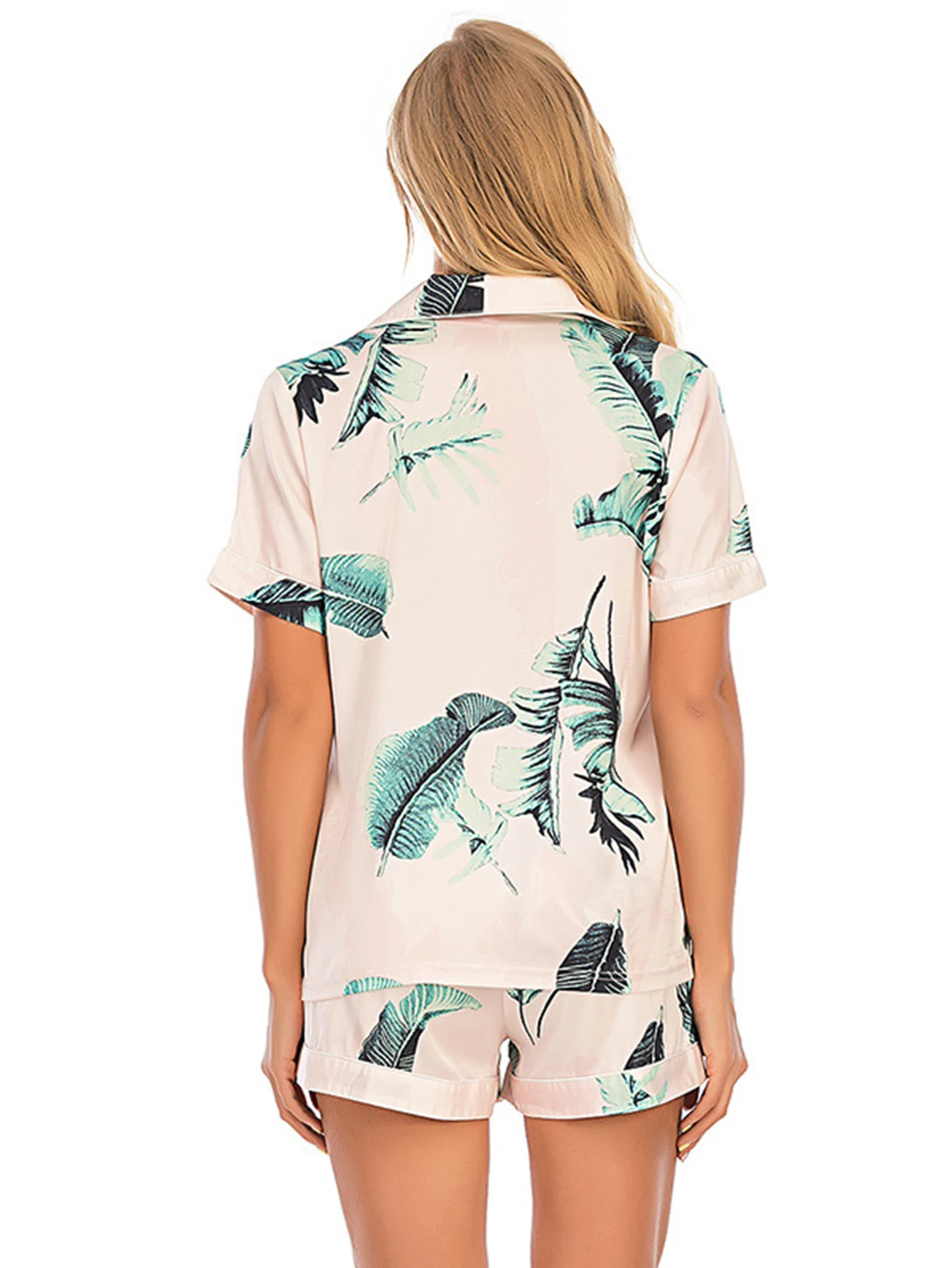 Stretch Satin Satin Printed Short Sleeve Shorts Set Kiriken Lapel Comfort Loungewear