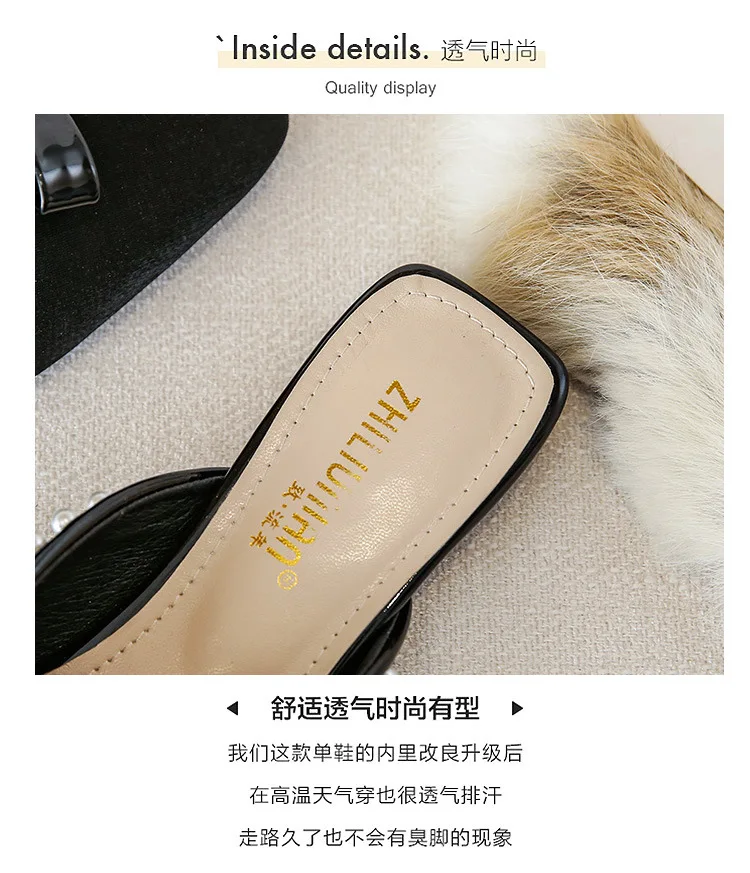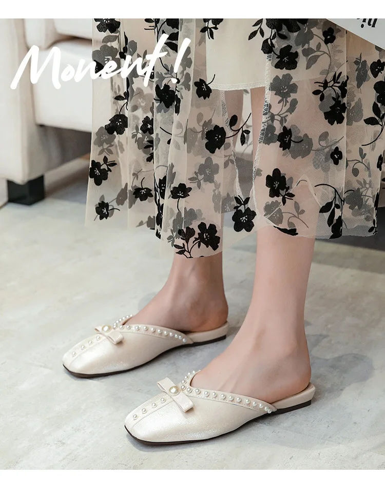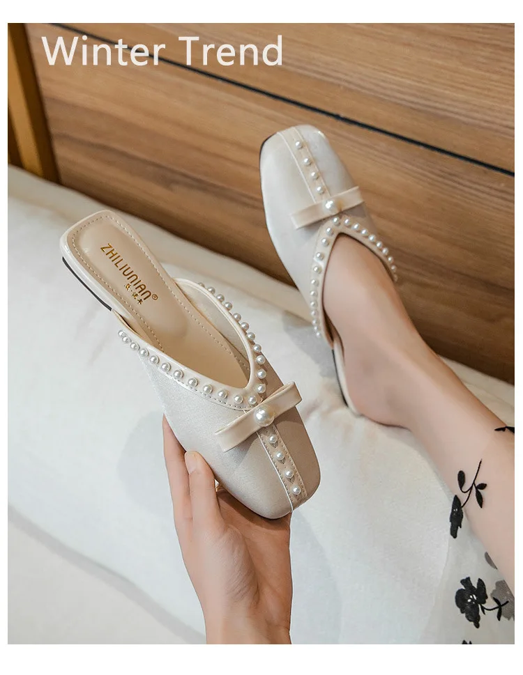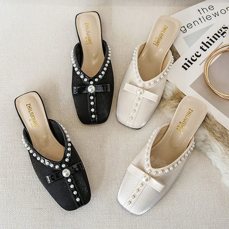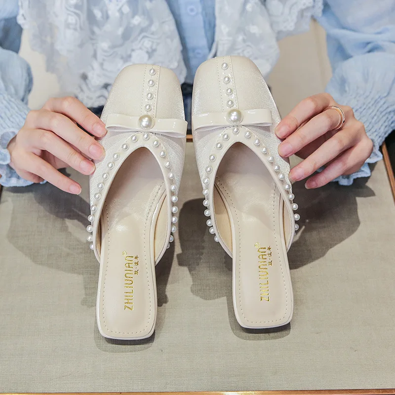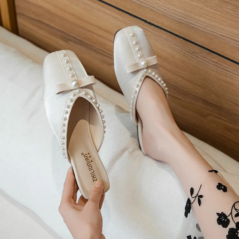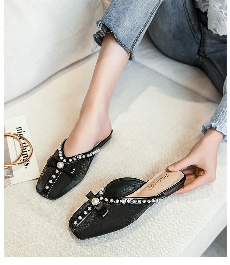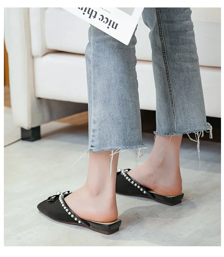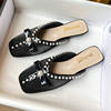 Celebrity Square Toe Pearl Slippers Women Mules Summer Shoes Woman