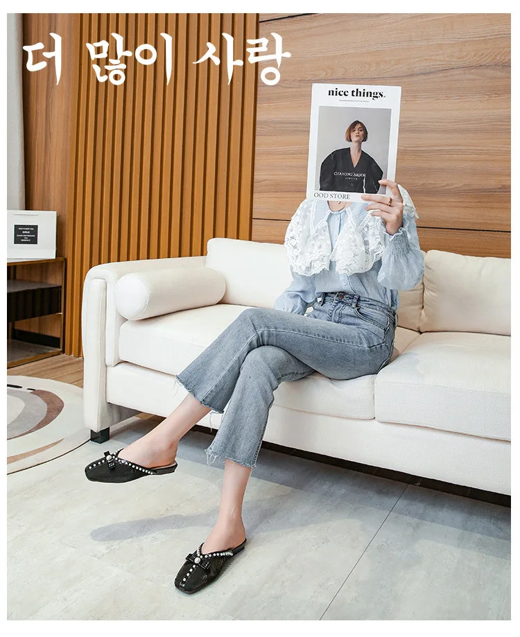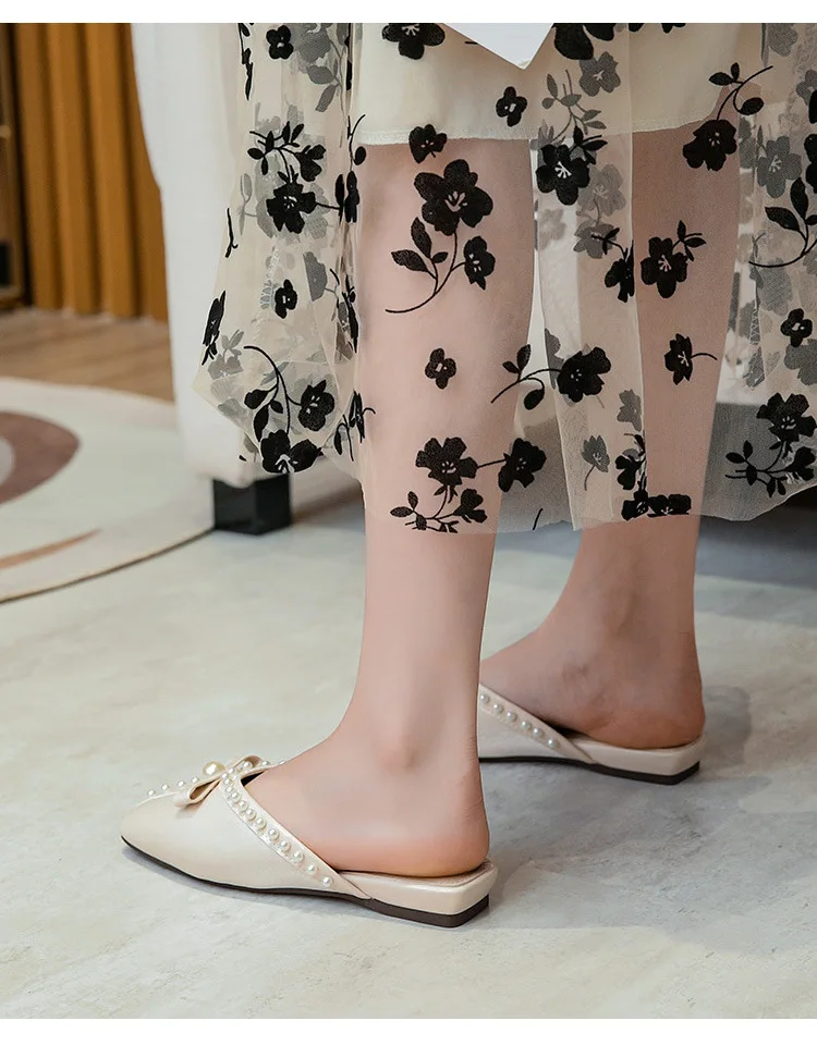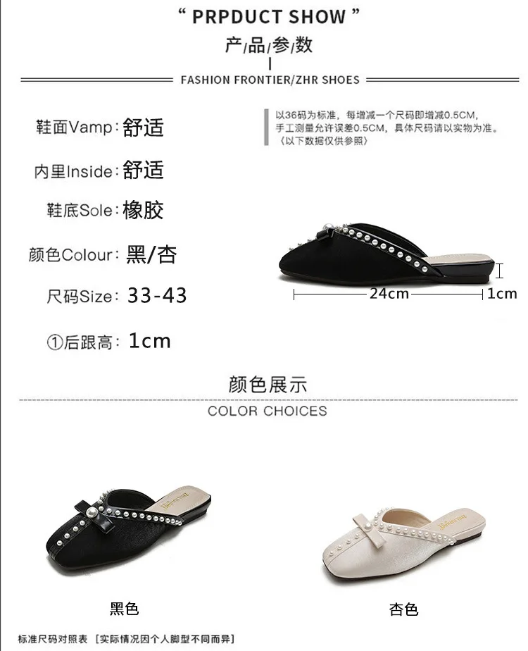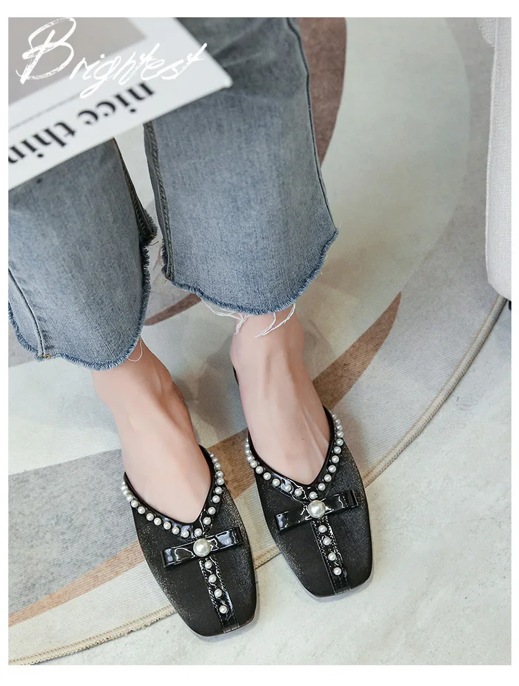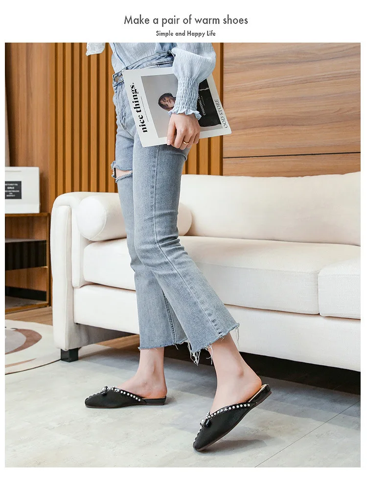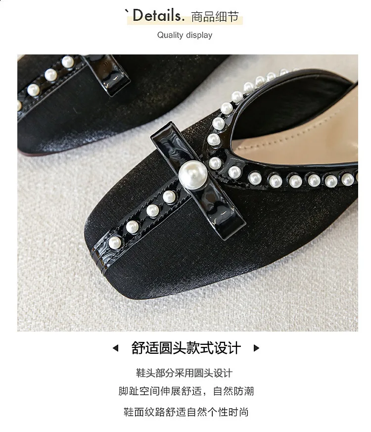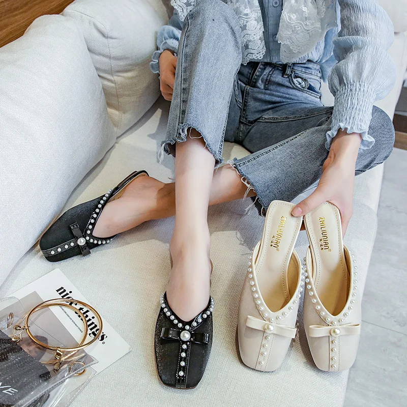 Celebrity Square Toe Pearl Slippers Women Mules Summer Shoes Woman