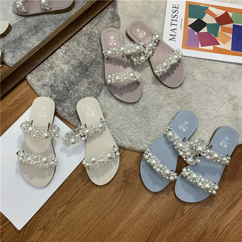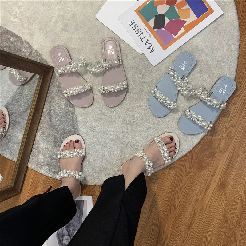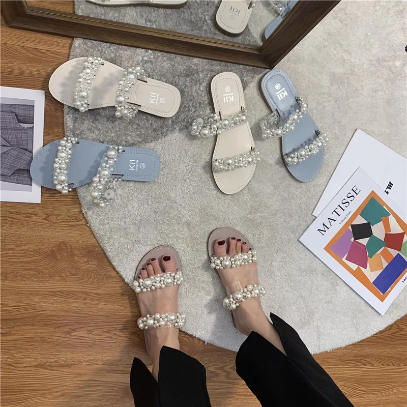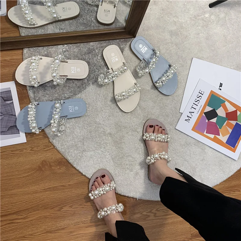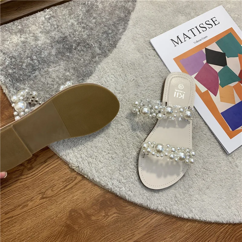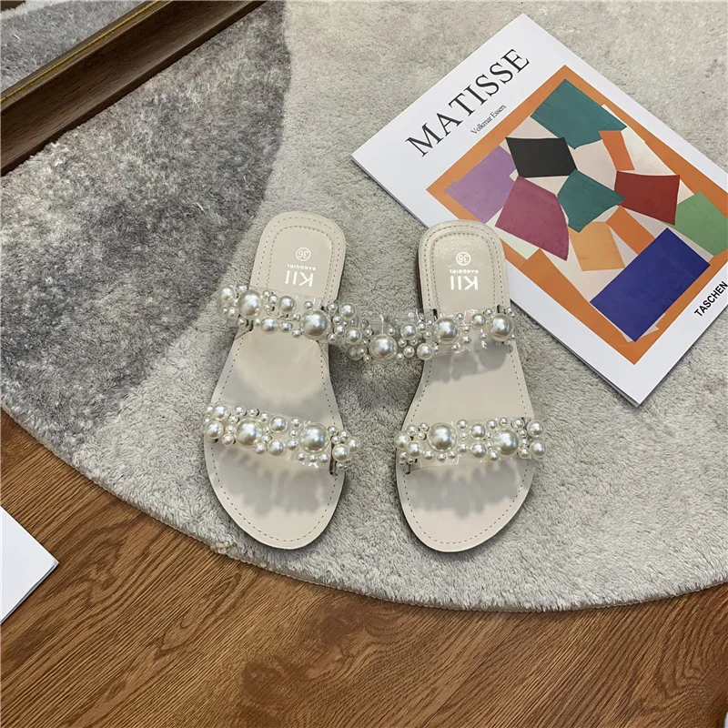 Hot PopularItem DescripptionsNet Celebrity Beads Clear BandSlippers Women Open Toe Flat Summer Shoes Slides Heel Height: 1.5CM Platform Height: 1 CM |