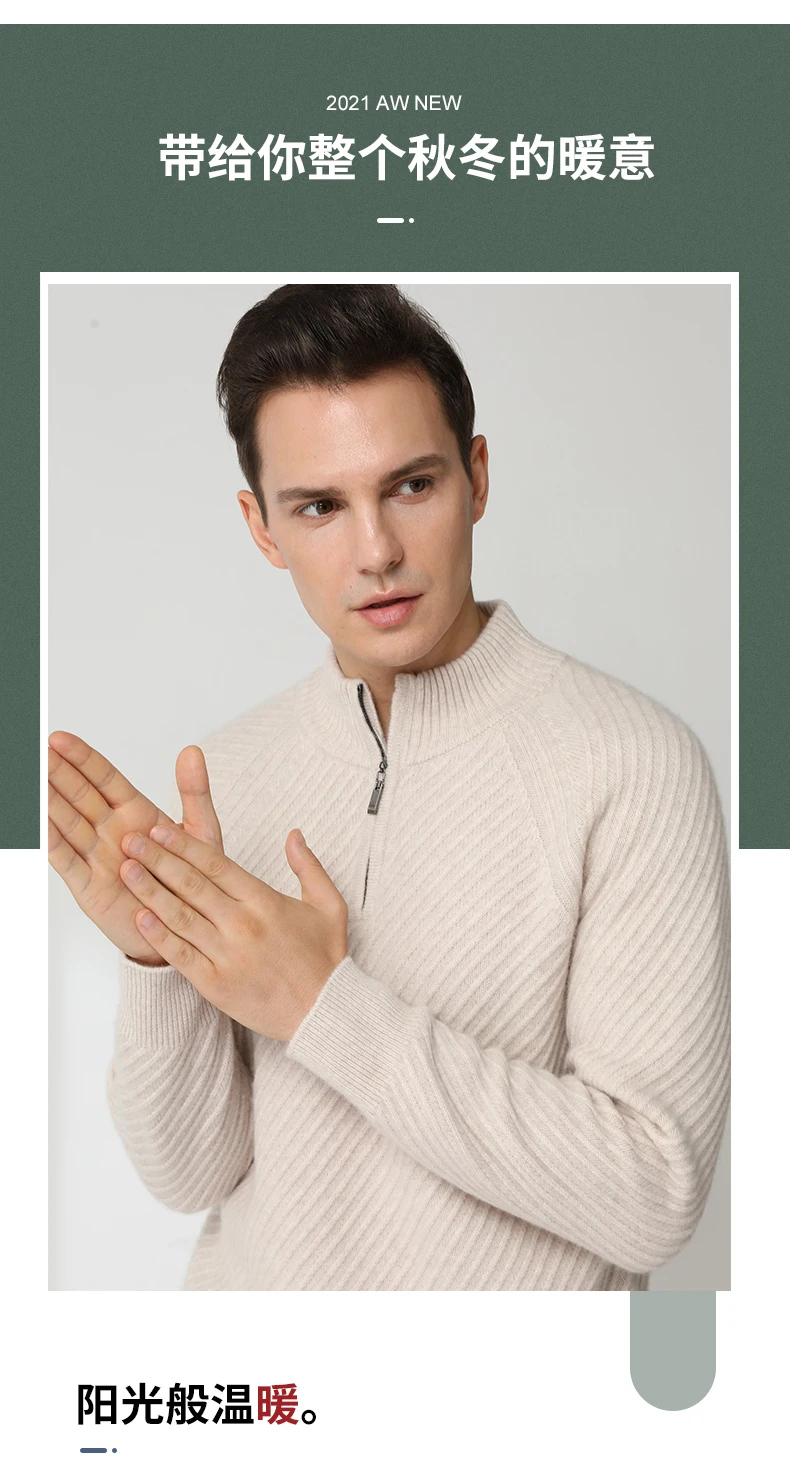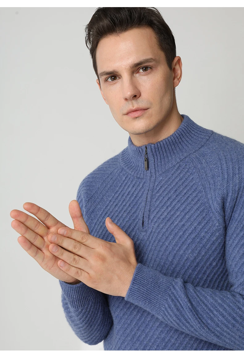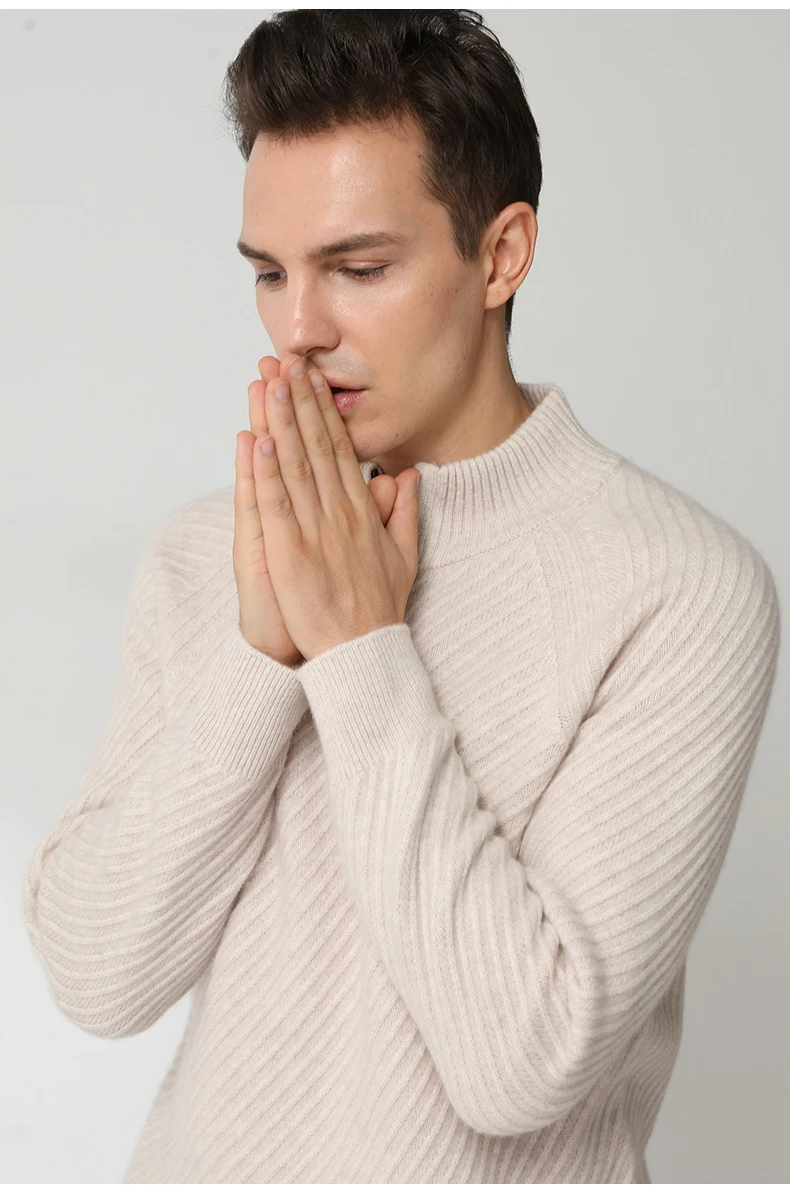 Striped Men’s Sweater 100% Cashmere Knitted Sweaters New Fashion Autumn/Winter Men Jumpers Warm 5Colors Male Tops
