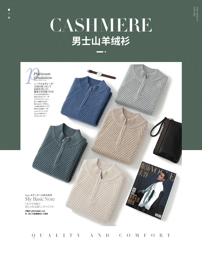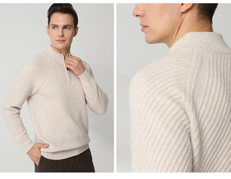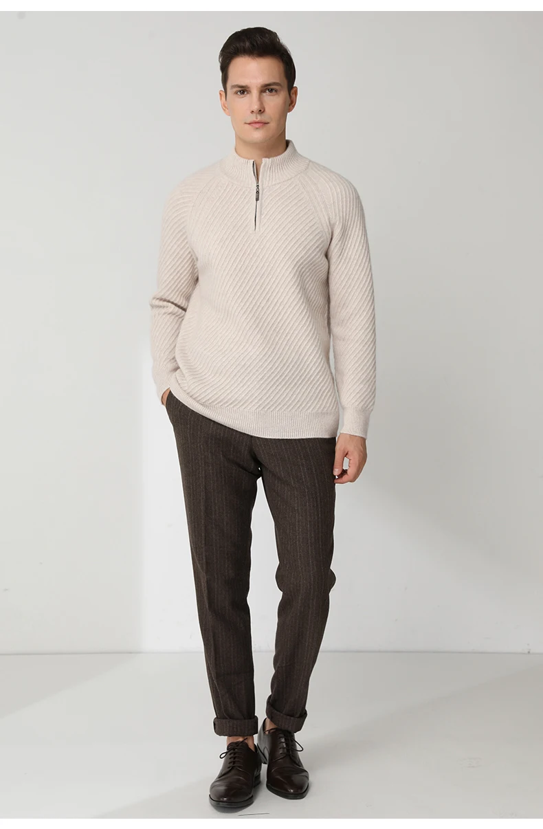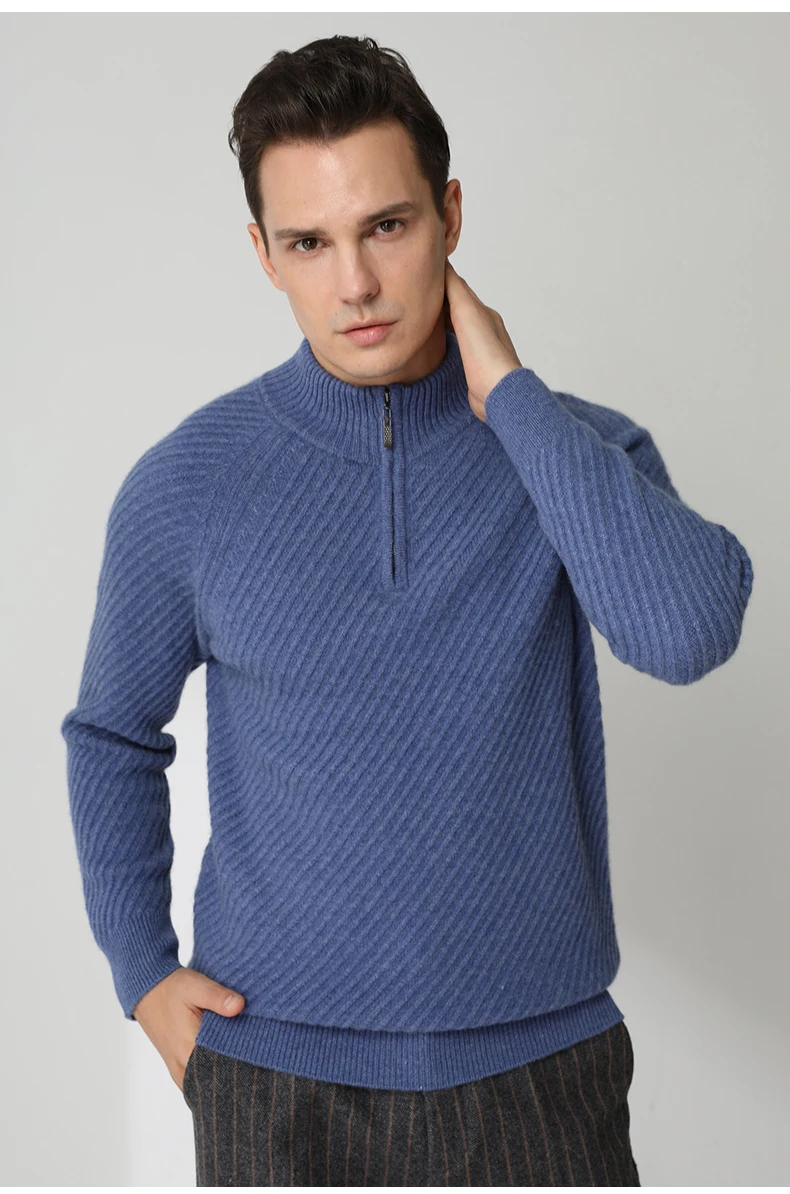 Striped Men’s Sweater 100% Cashmere Knitted Sweaters New Fashion Autumn/Winter Men Jumpers Warm 5Colors Male Tops