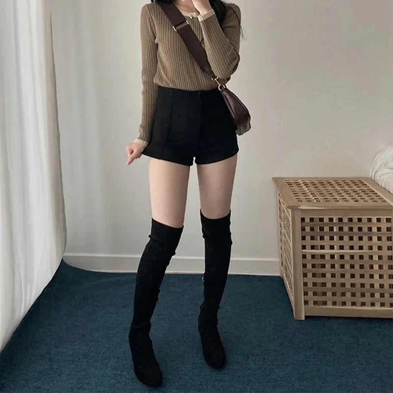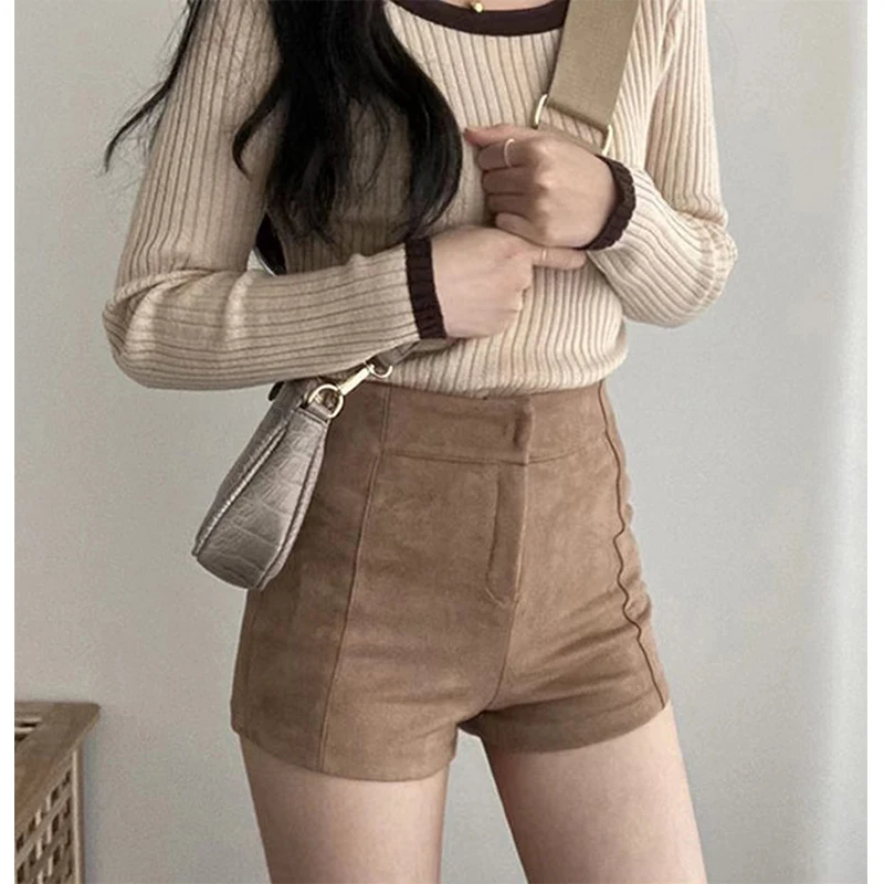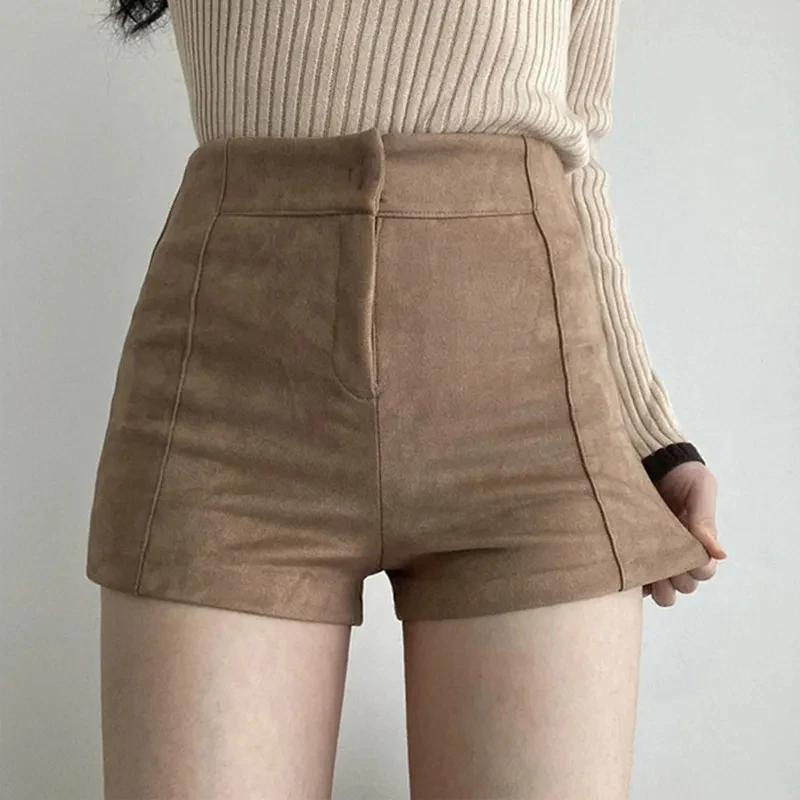 Suede Shorts Women Streetwear High Waist Black Suit Shorts Summer Korean Fashion Ladies Sexy Slim A Line Hot Short Pants New
