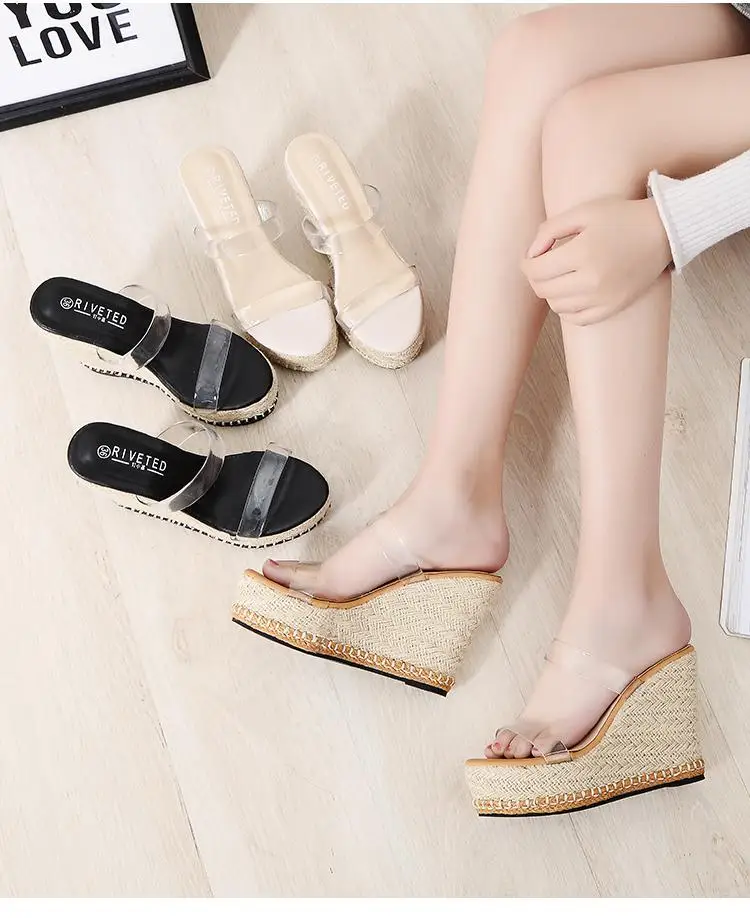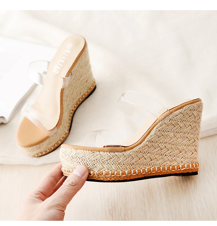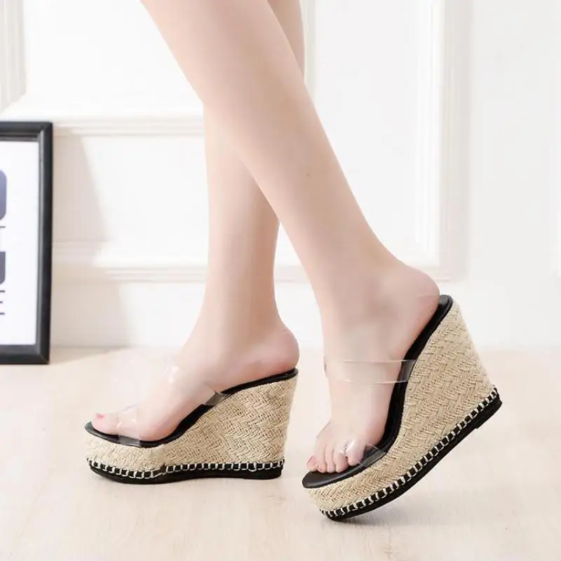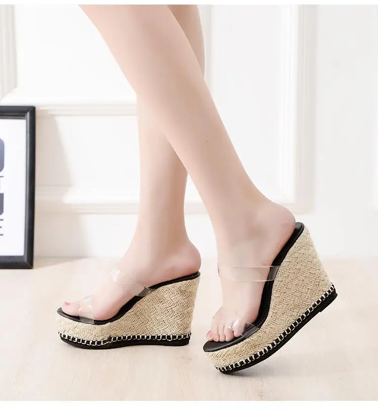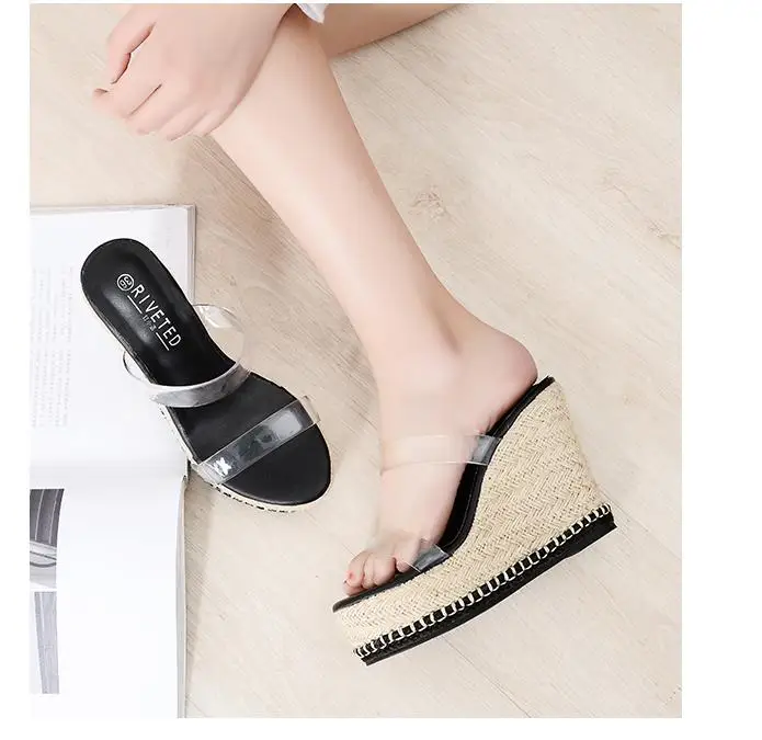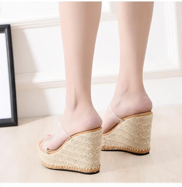 Summer 11cm High Heel Sandals Female Fashion Rome Holiday Beach Shoes Strew Wedges Heel Platform Peep Toe Ladies Sandals