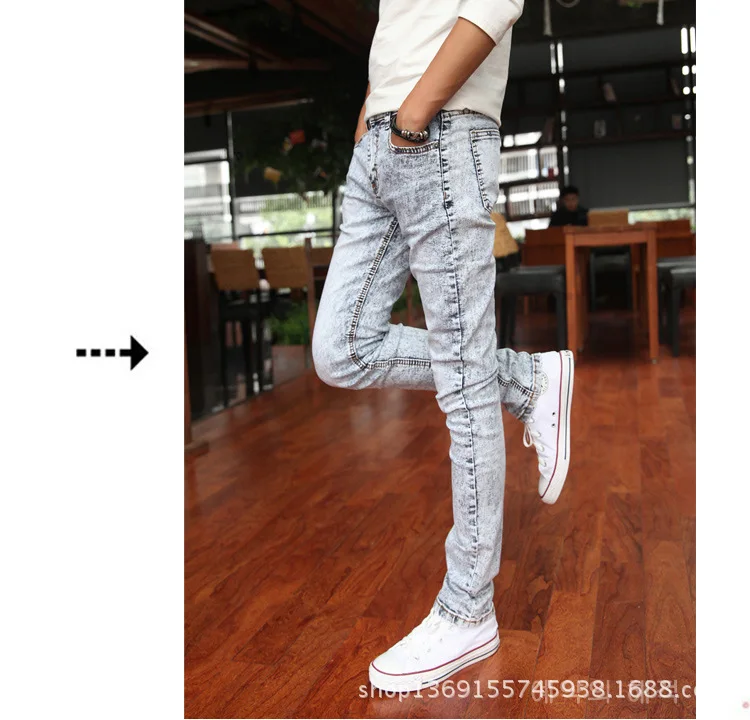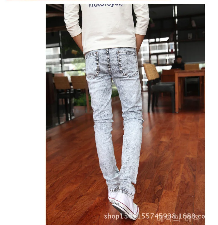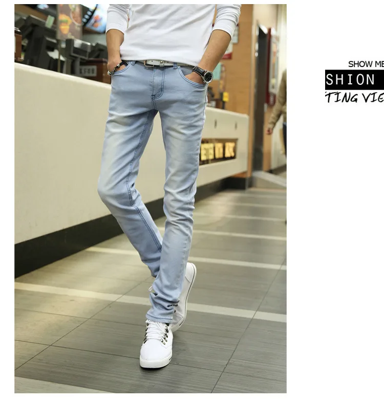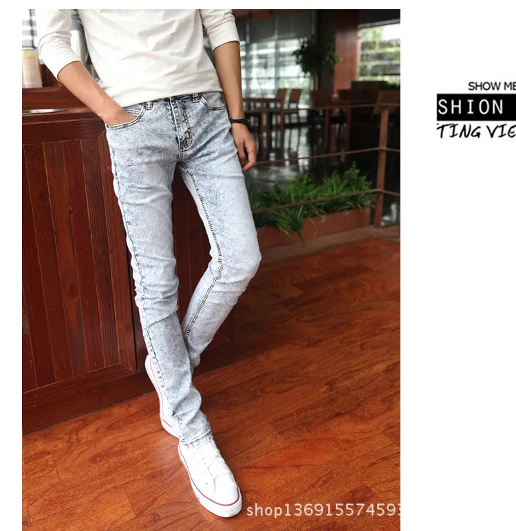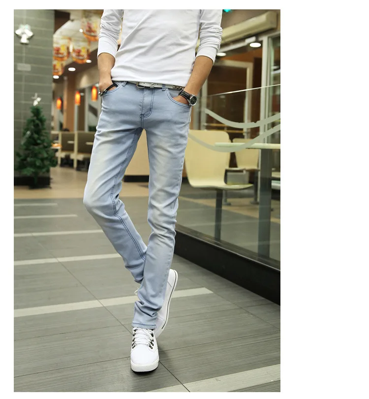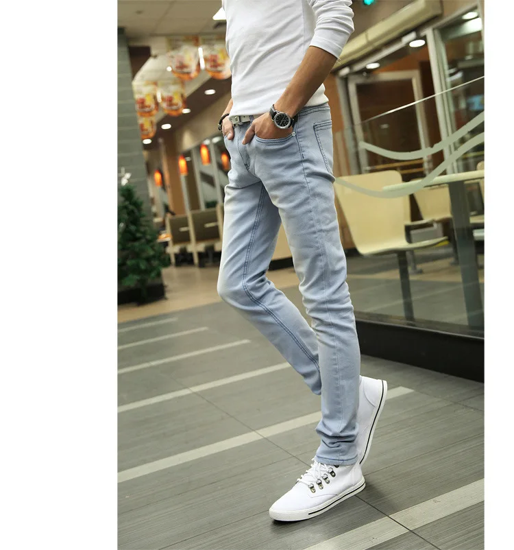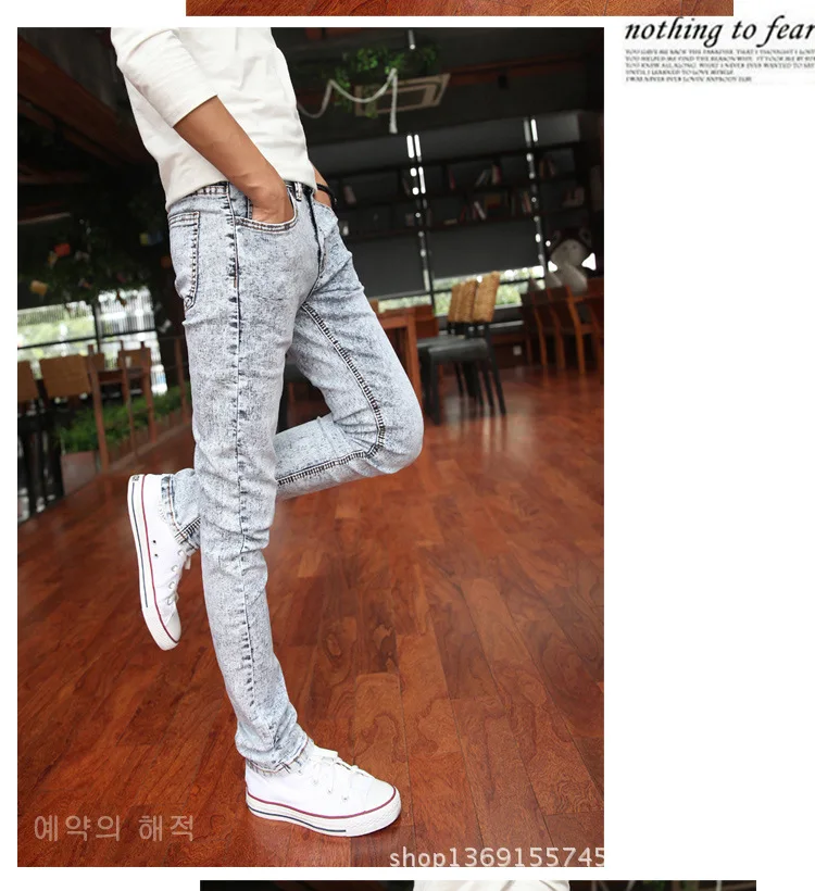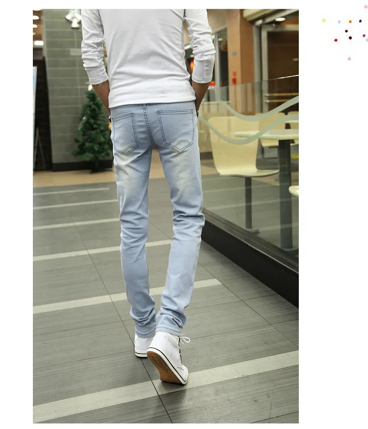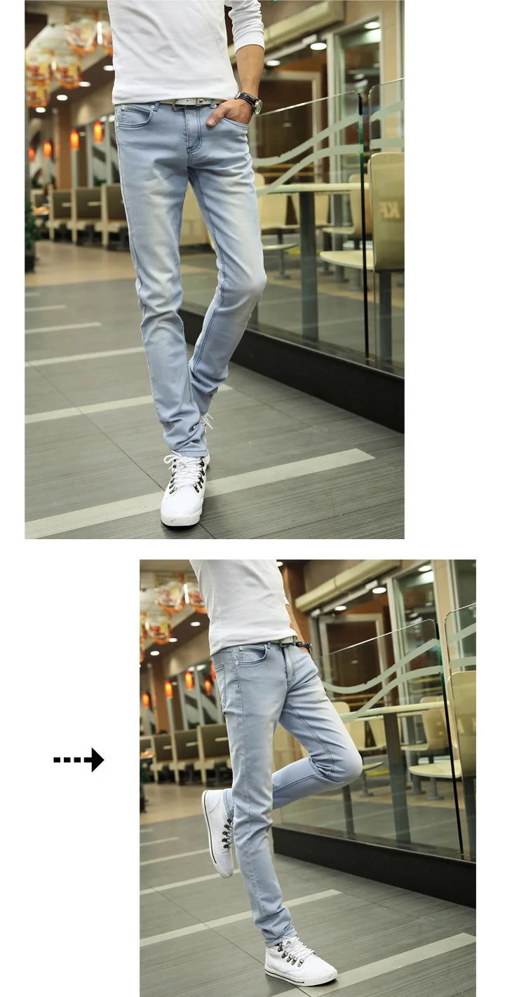 Summer 2022 Brand Teenagers Stretch Jeans Men’s Slim Feet Summer Thin Pencil Pants Men’s Korean Style Trendy Elastic Trousers