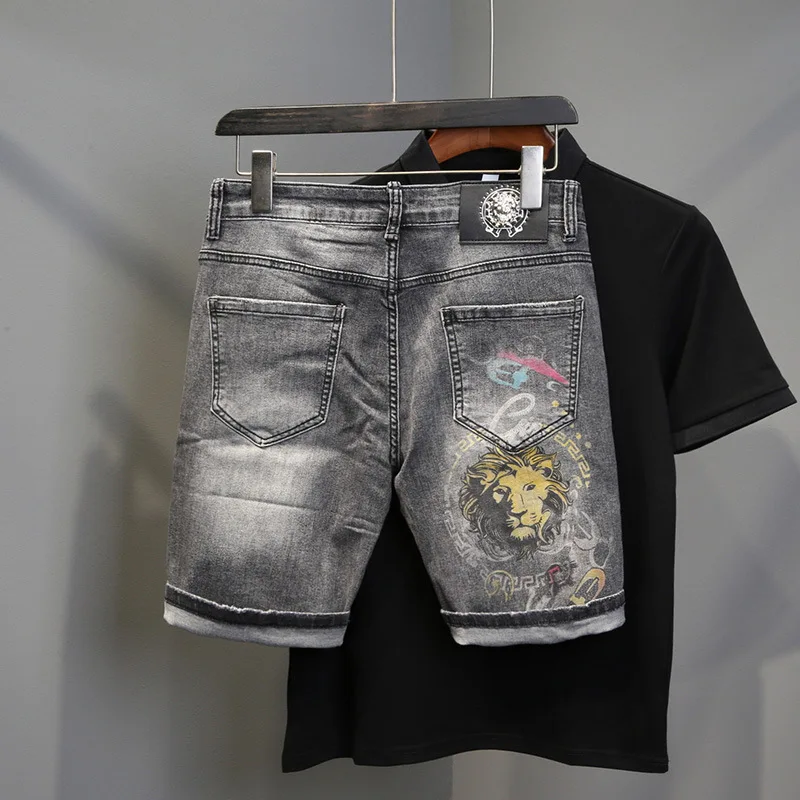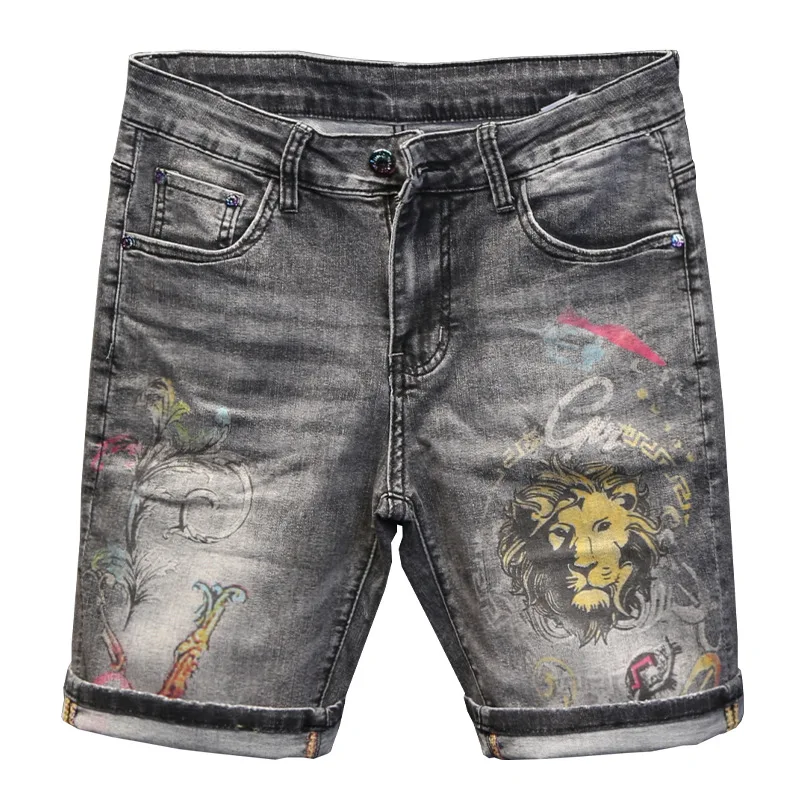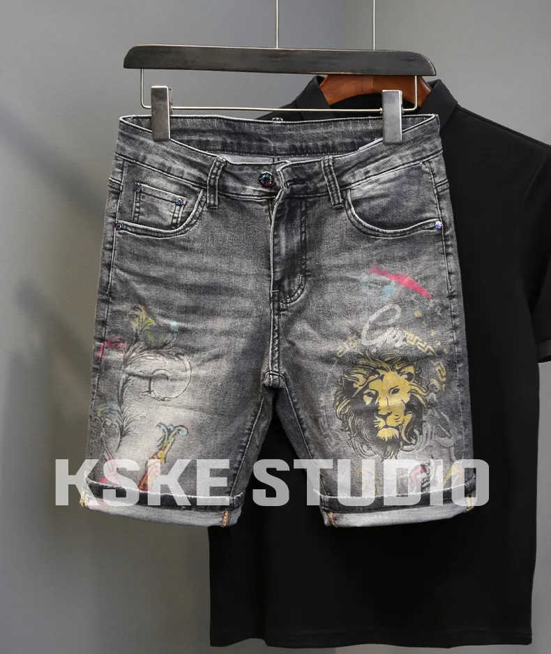 Summer 2022 Denim Jeans Loose Straight Japanese Printed Men’s Harlem Short Pants Cowboy Cropped Shorts Hip Hop Boyfriend Jeans