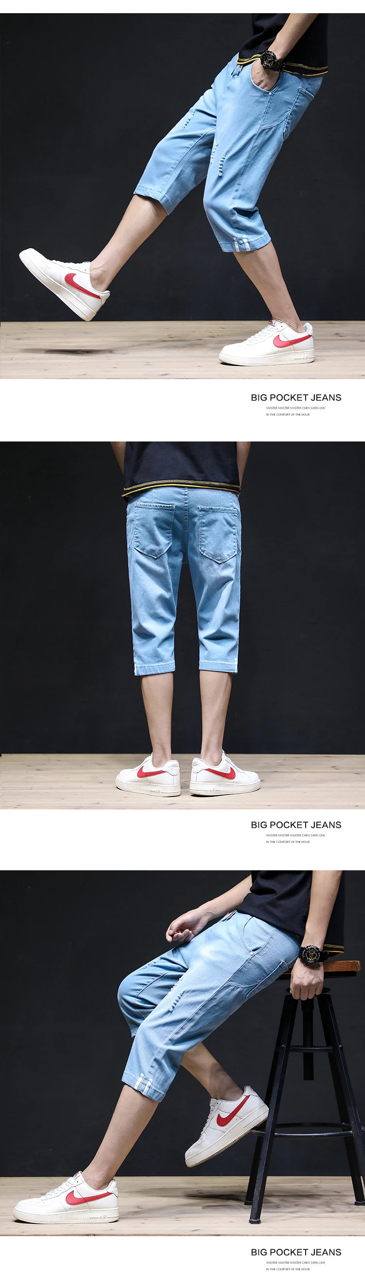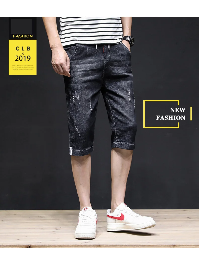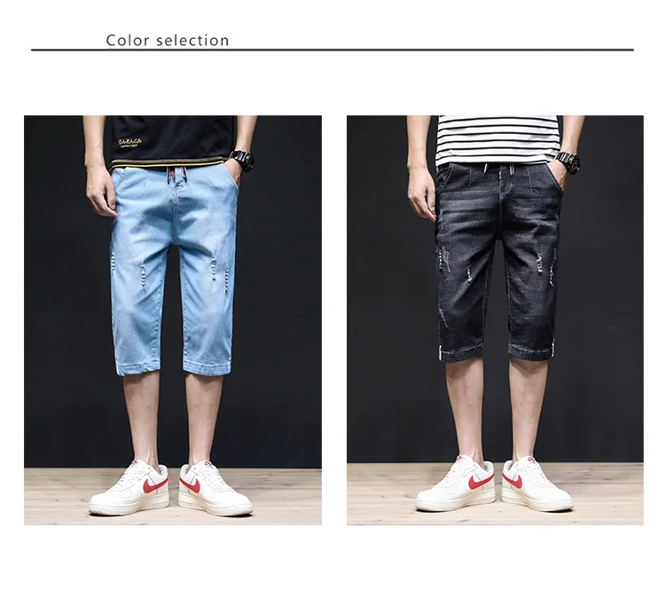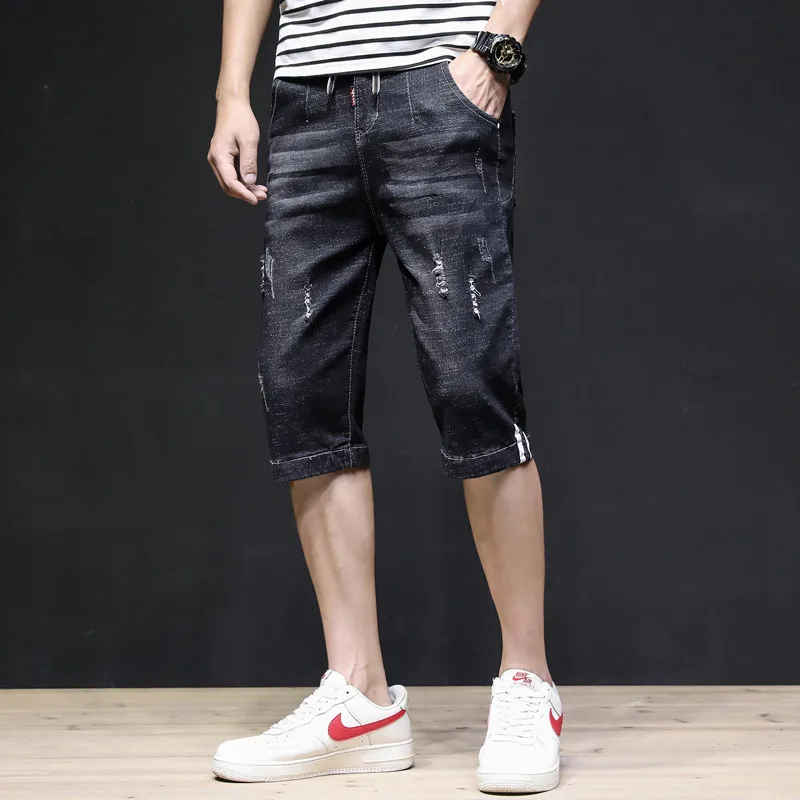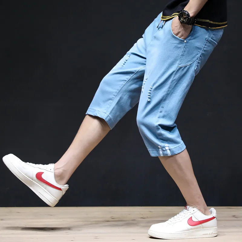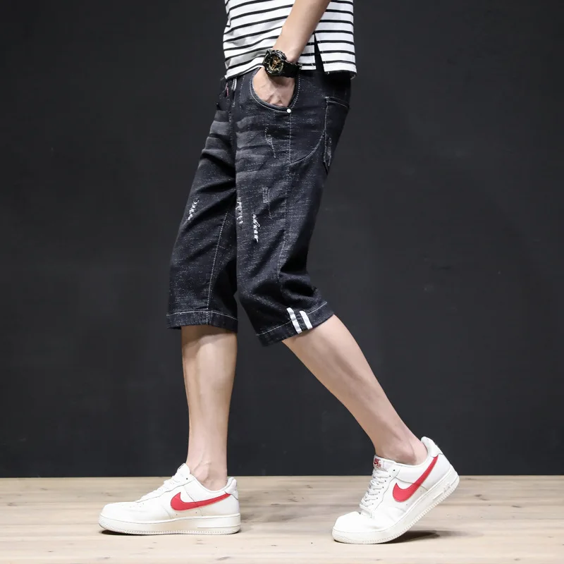 Summer 2022 Denim Thin All-match Seven-point Jeans Men’s Loose Shorts Korean Leisure Brand Tooling Breeches Cropped Pants