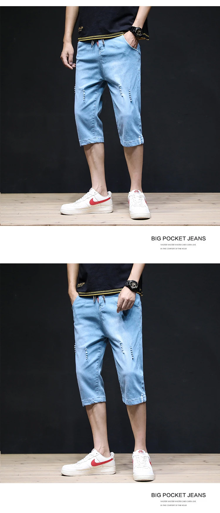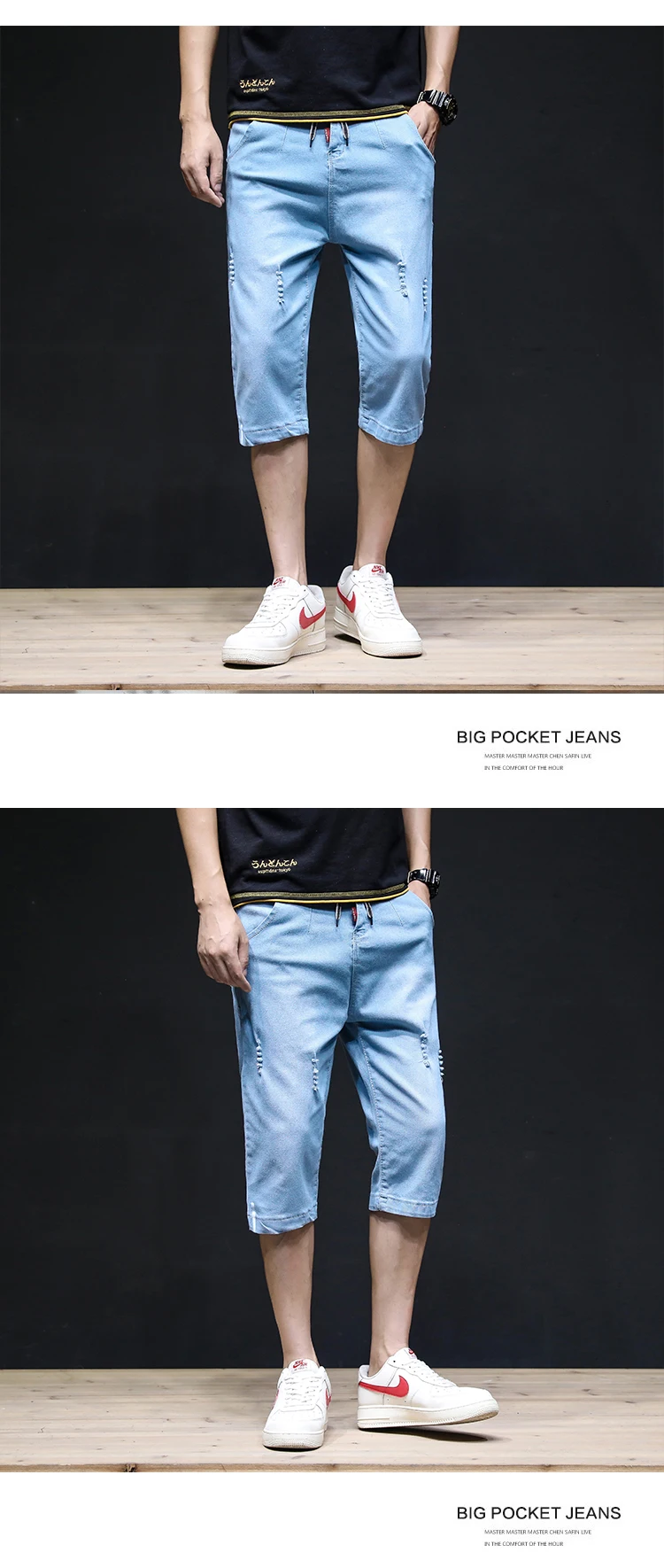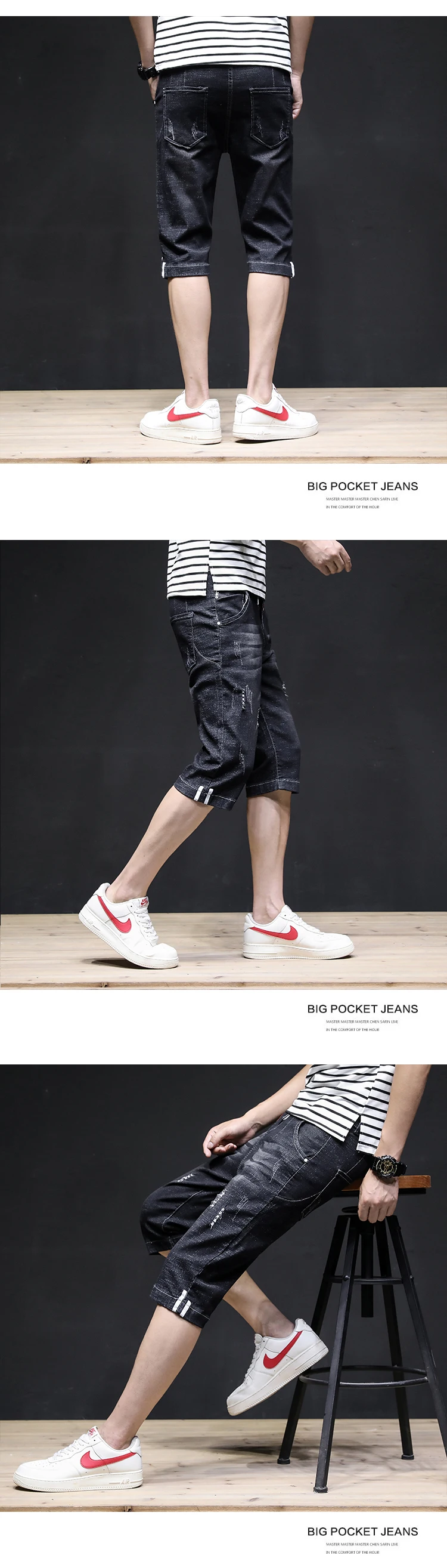 Summer 2022 Denim Thin All-match Seven-point Jeans Men’s Loose Shorts Korean Leisure Brand Tooling Breeches Cropped Pants