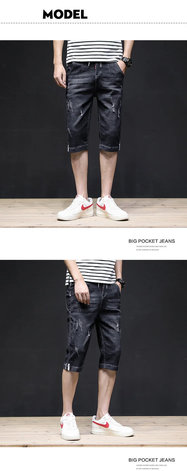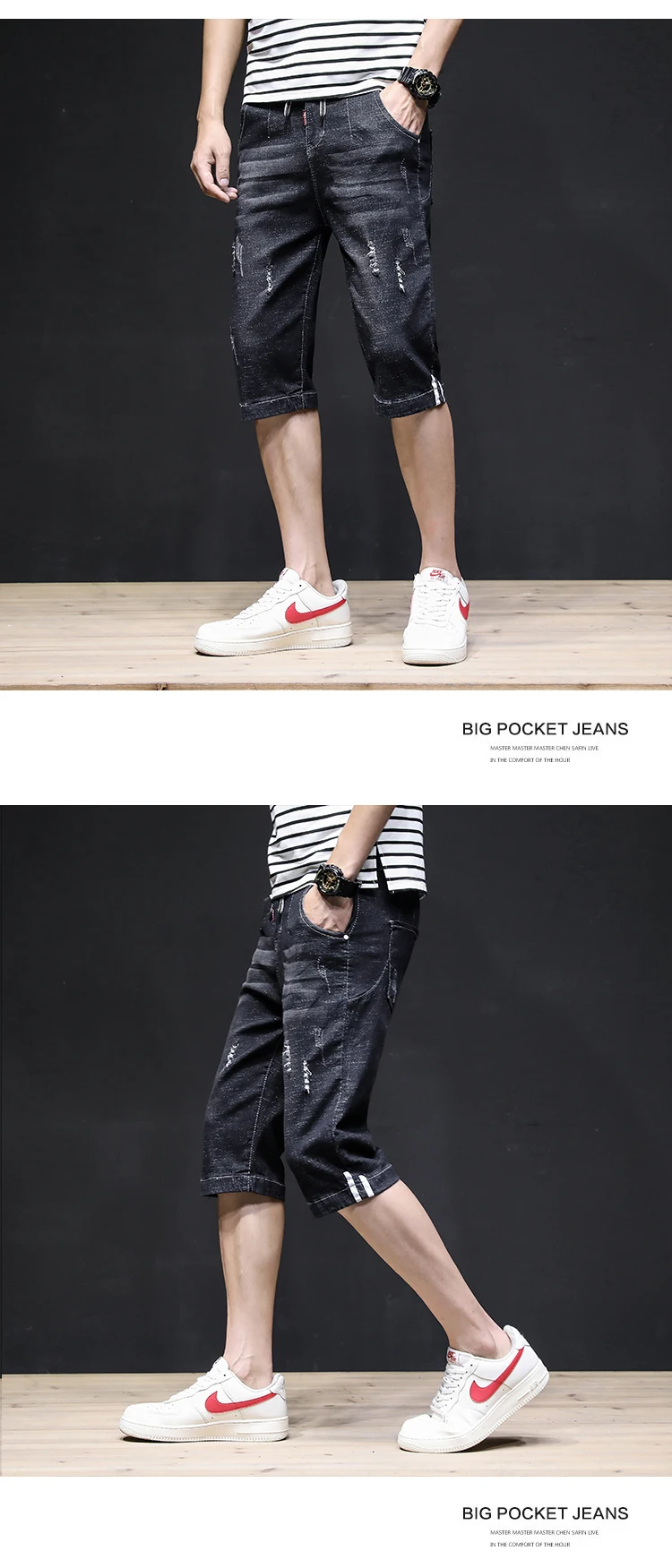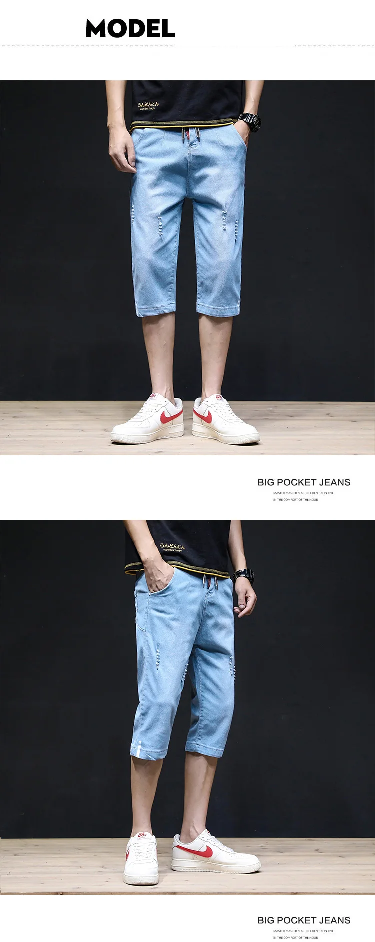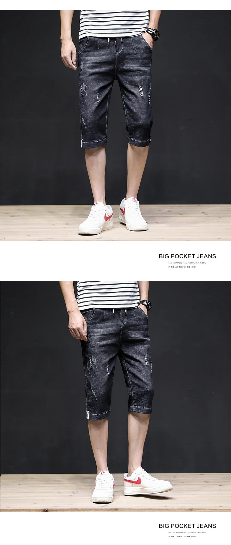 Summer 2022 Denim Thin All-match Seven-point Jeans Men’s Loose Shorts Korean Leisure Brand Tooling Breeches Cropped Pants