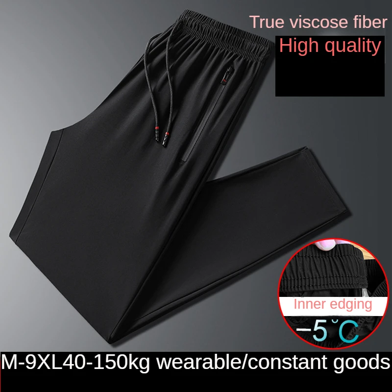 Summer 2022 Ice Silk Quick-drying Casual Men Fat Oversize 9XL Silky Slim Air Conditioning Sports Pants Joggers Mens Sweatpants