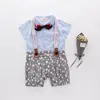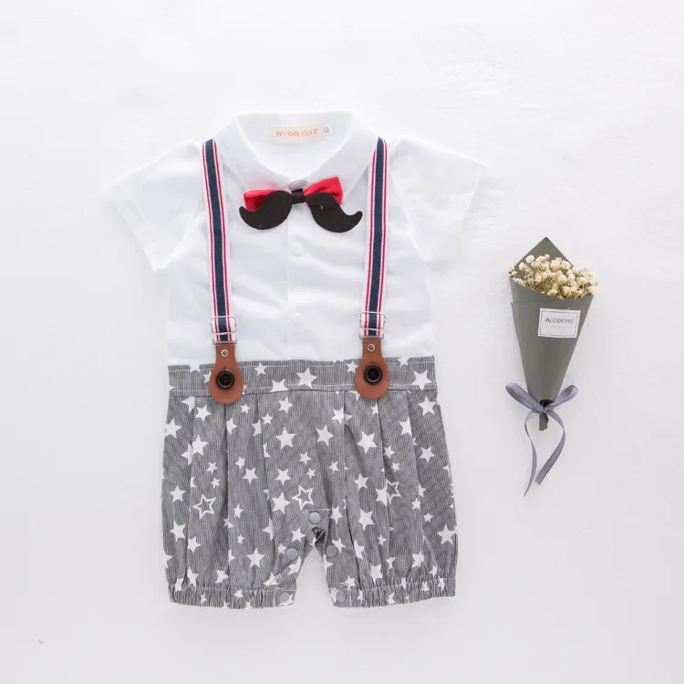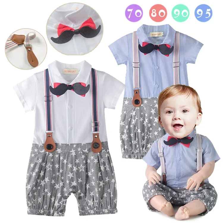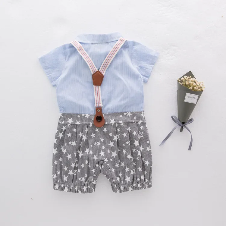 Summer Baby Boys Rompers Bow Gentleman Star Print Strap Short Sleeve Toddler Jumpsuit Kids Clothing