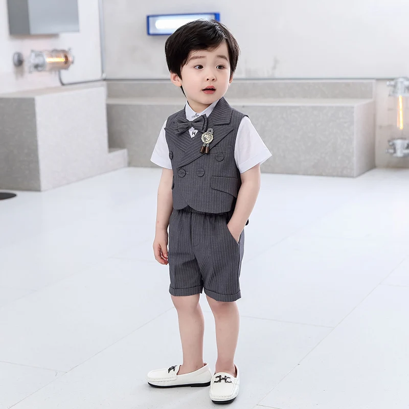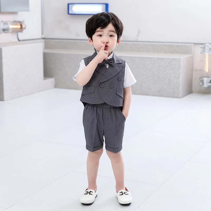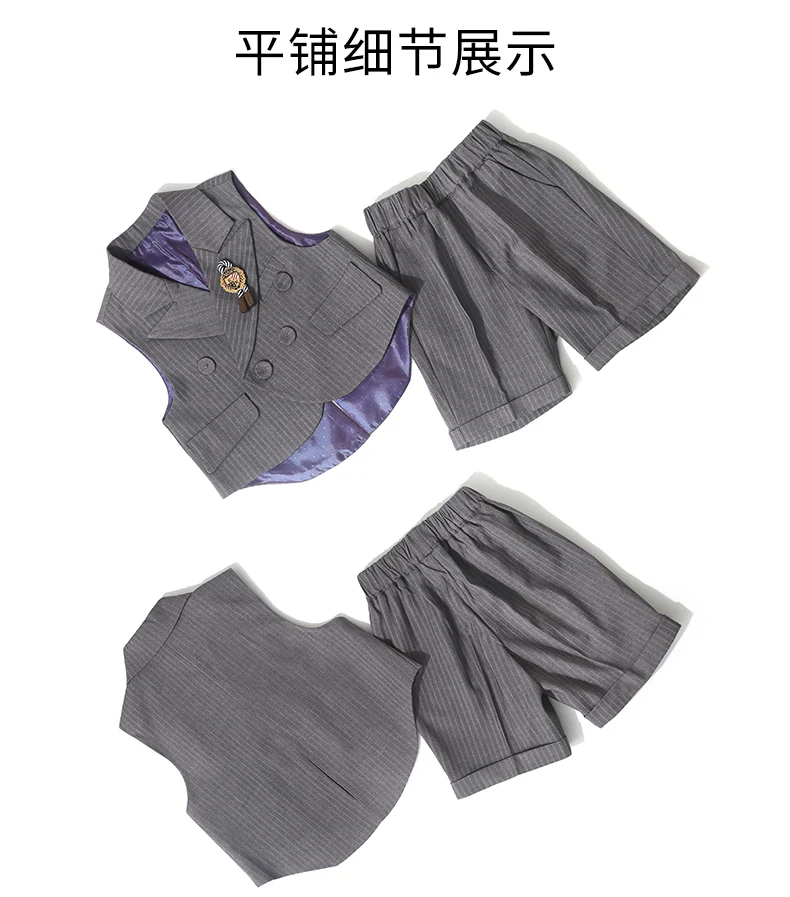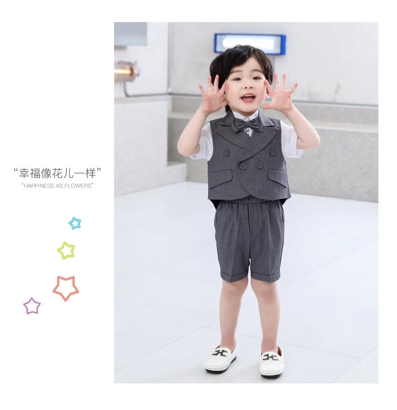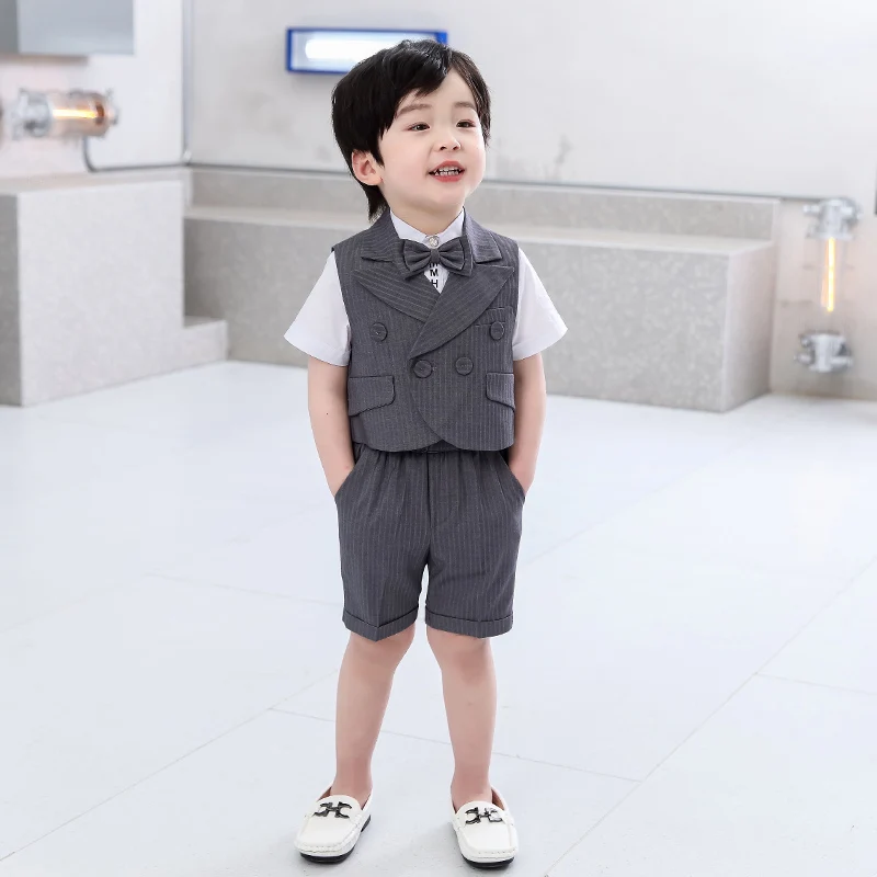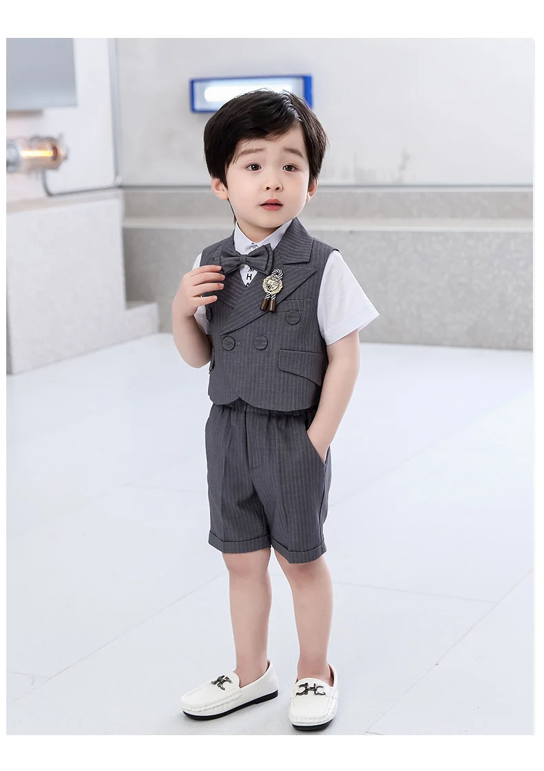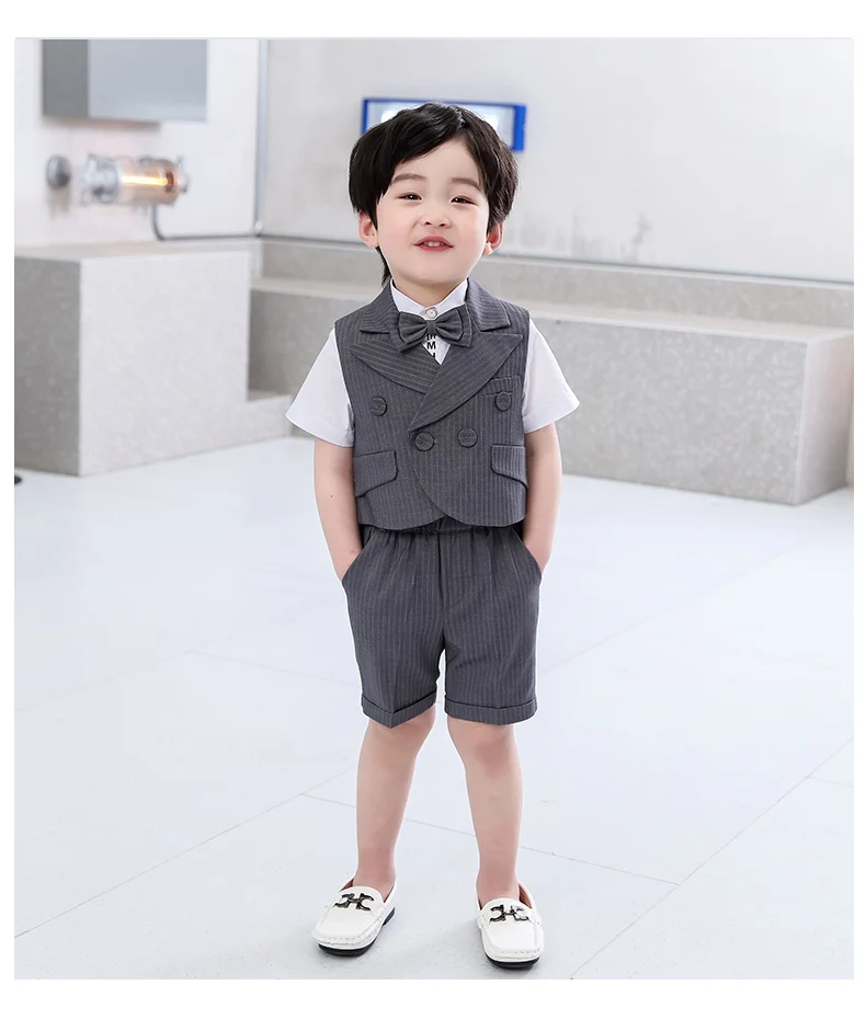 Summer Baby Boys Striped Vest Dress Suits Children Birthday Banquet Party Costume Kids Double Breasted Waistcoat Shorts Clothing