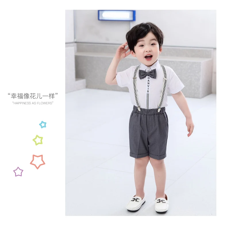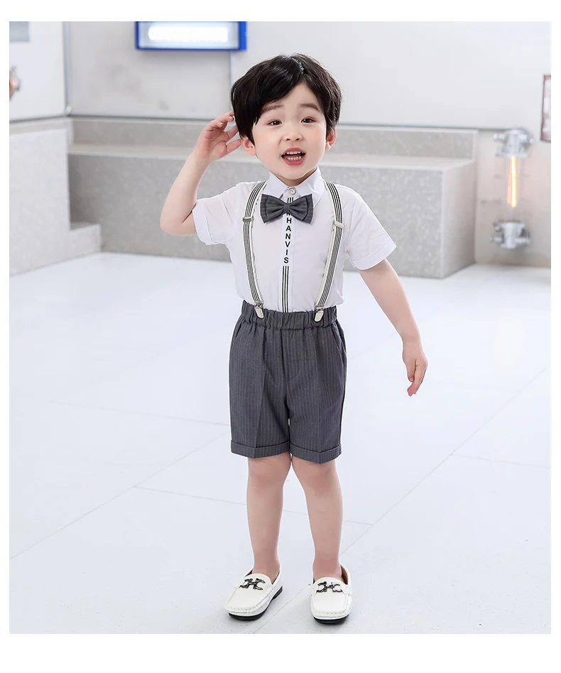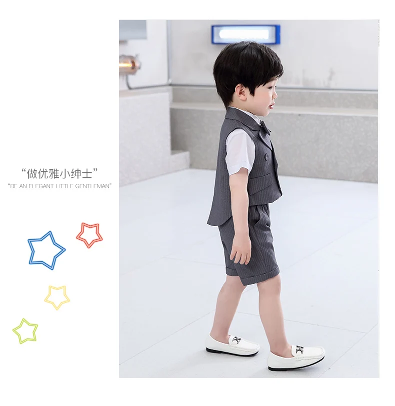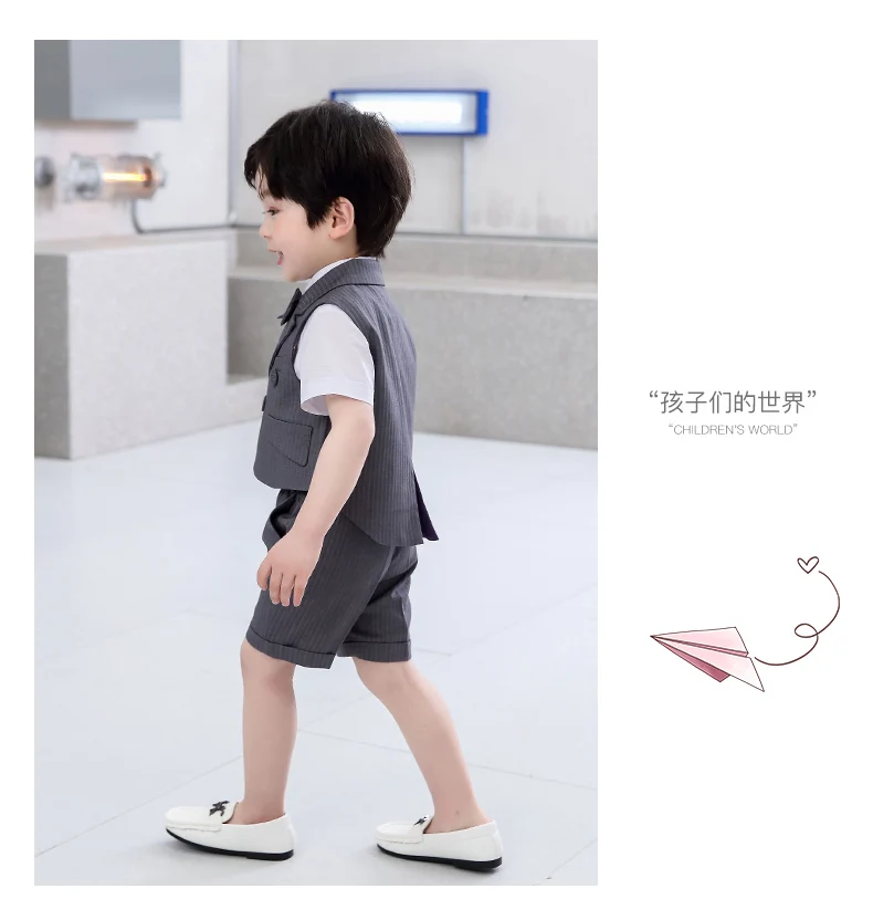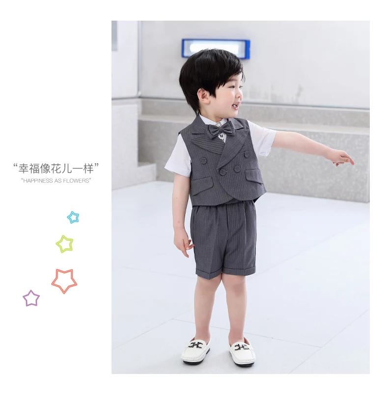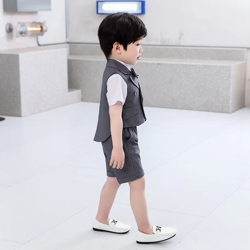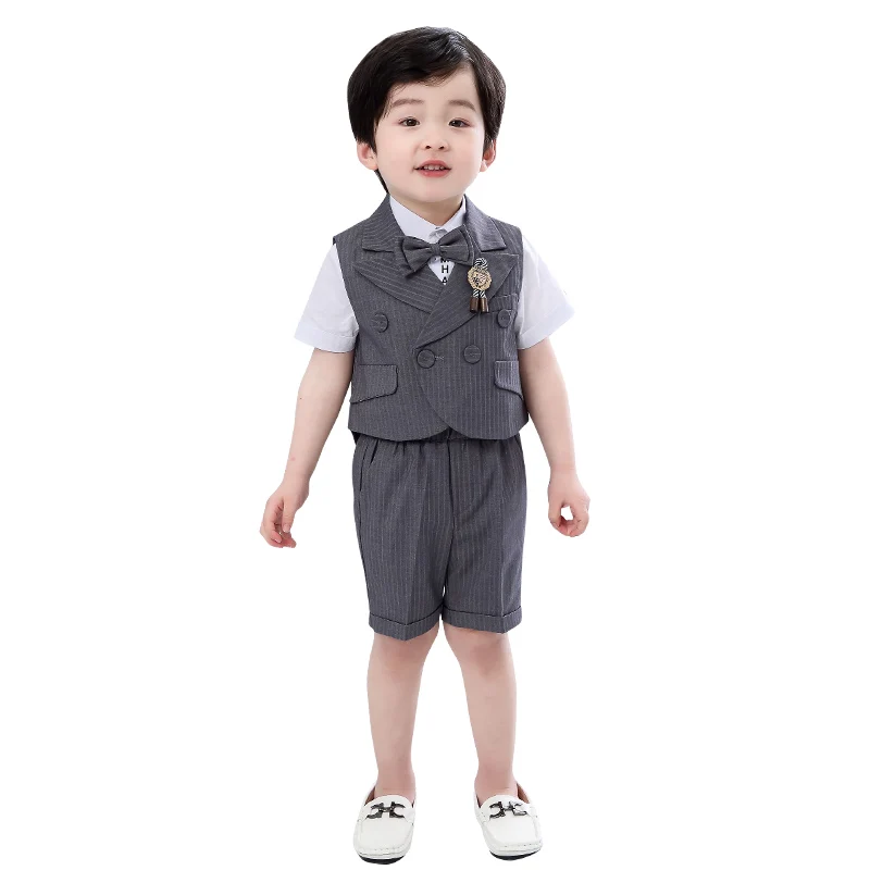 Summer Baby Boys Striped Vest Dress Suits Children Birthday Banquet Party Costume Kids Double Breasted Waistcoat Shorts Clothing