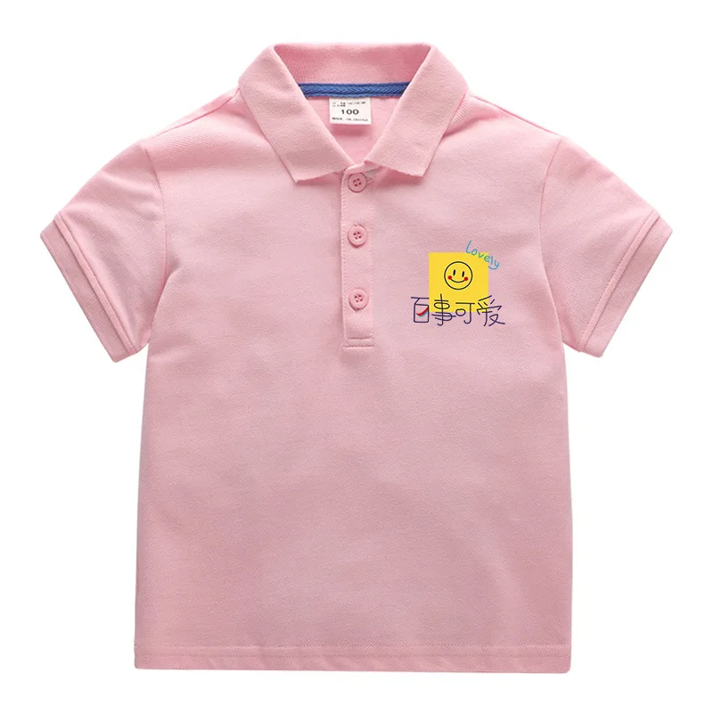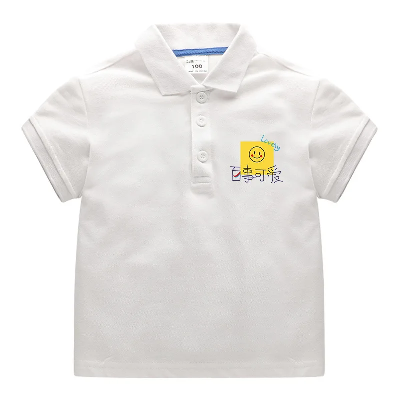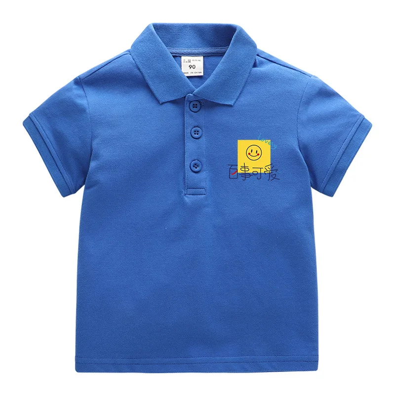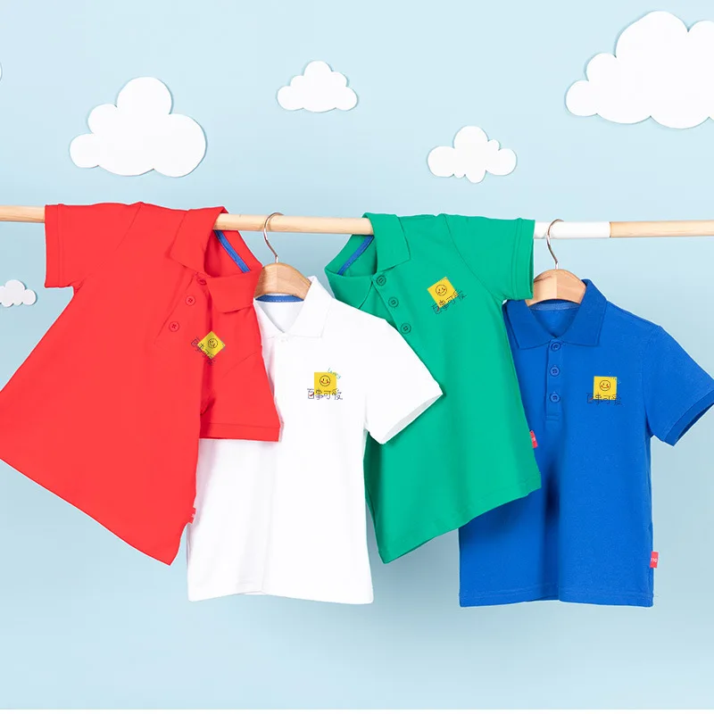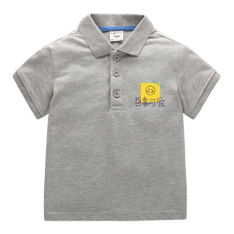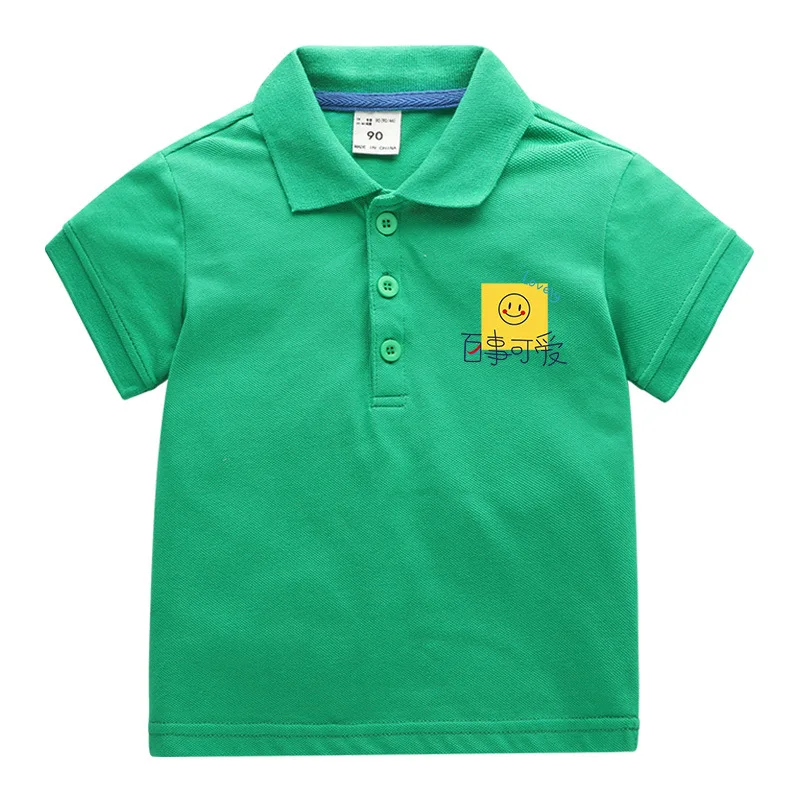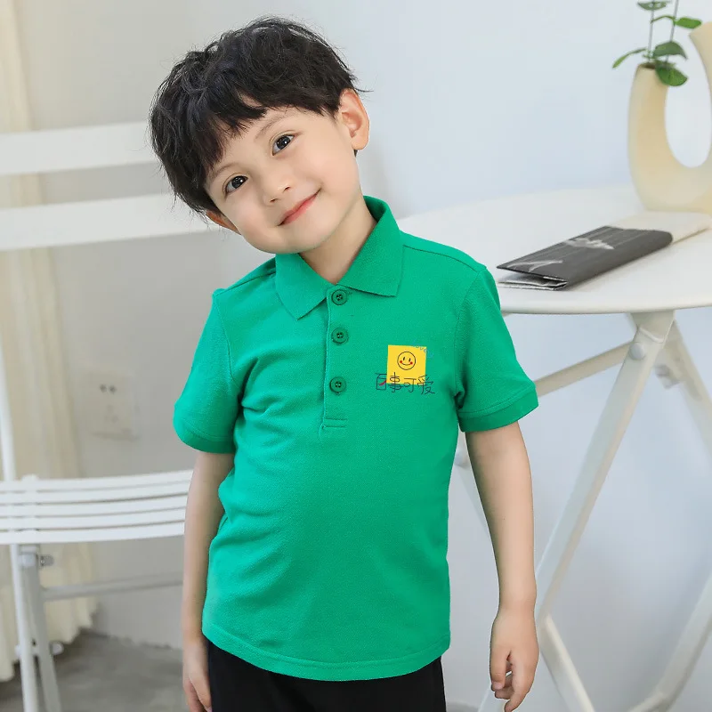 Summer Baby Boys T Shirt Short Sleeve Polo Shirts for Boy Smile Face Children Solid Color Tee Baby Top Boy Clothes Korea 10Year