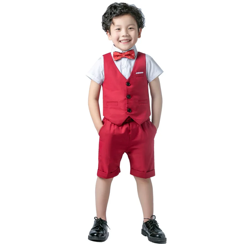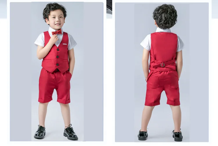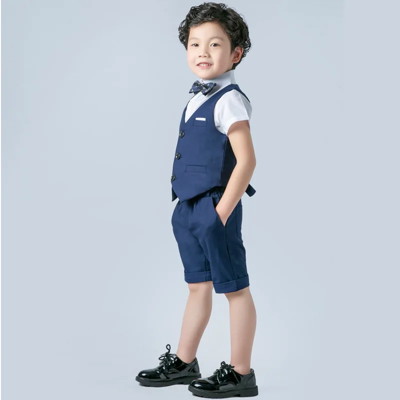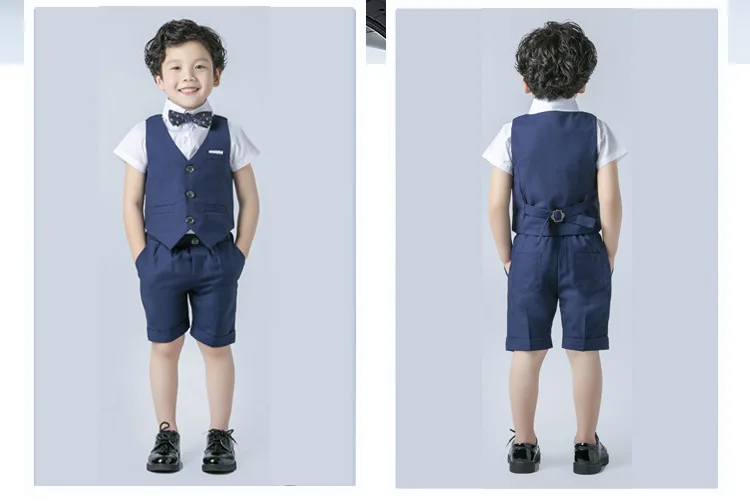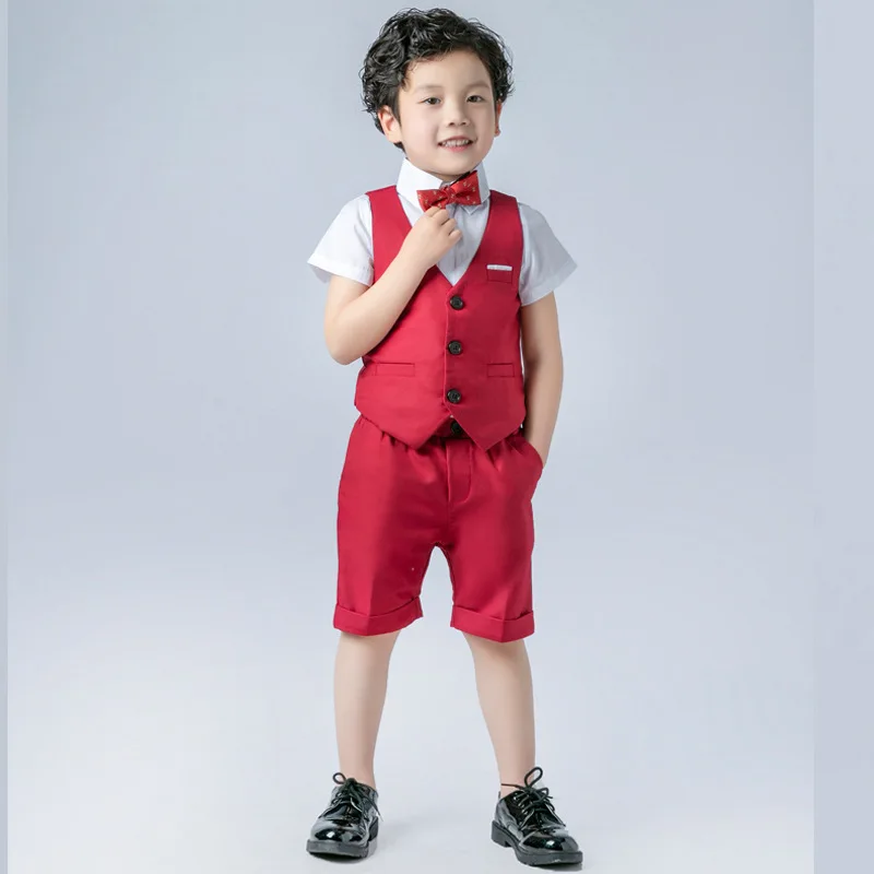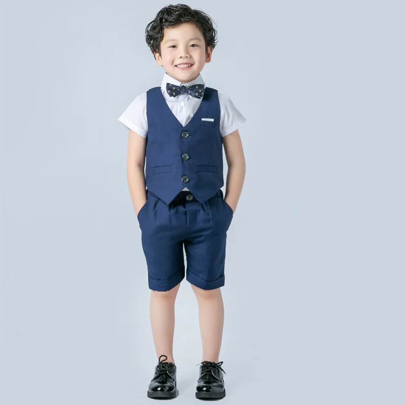 Summer Children’s Vest Dress Suit Set Boy Performance Party Wedding Costume Kids Waistcoats Shorts Bowtie Clothing Set 2-16t