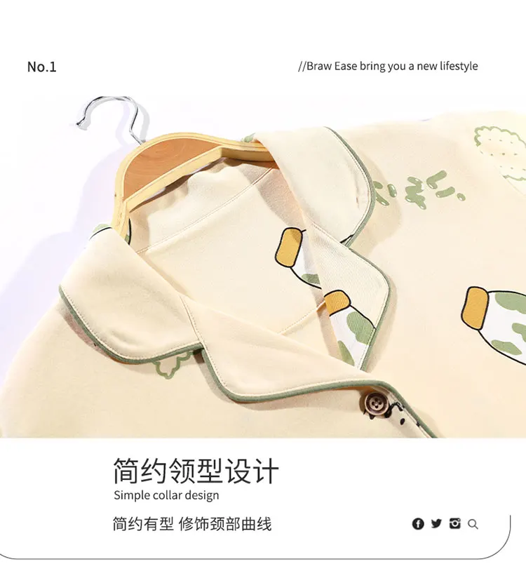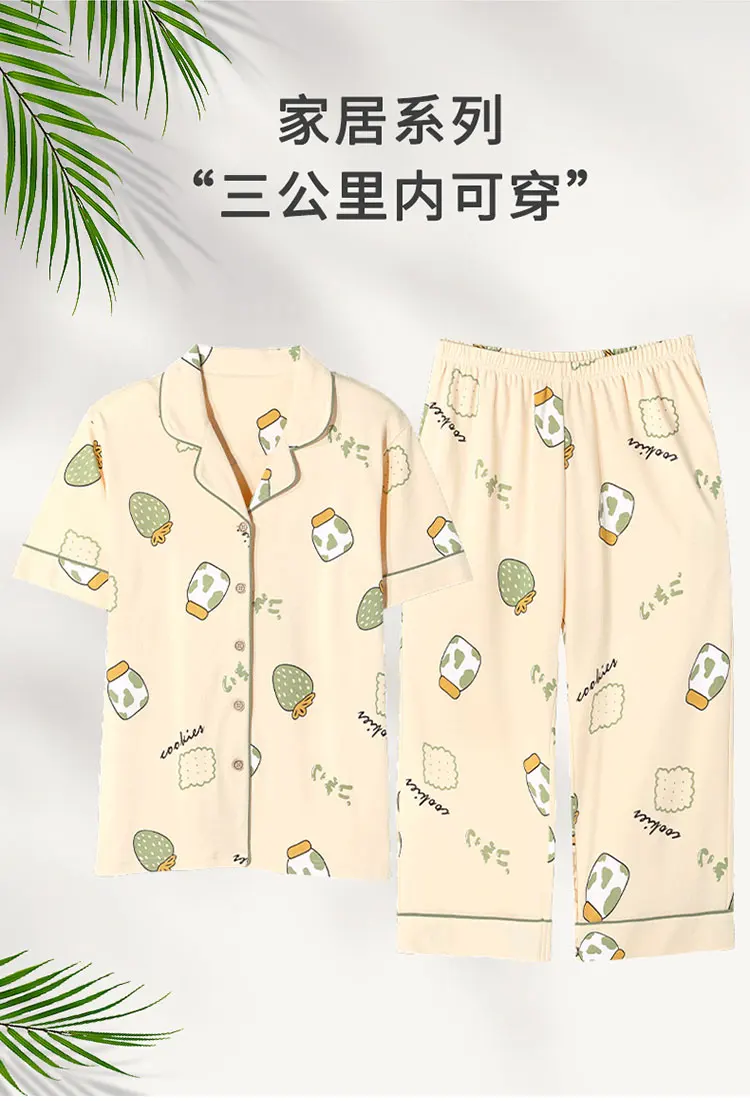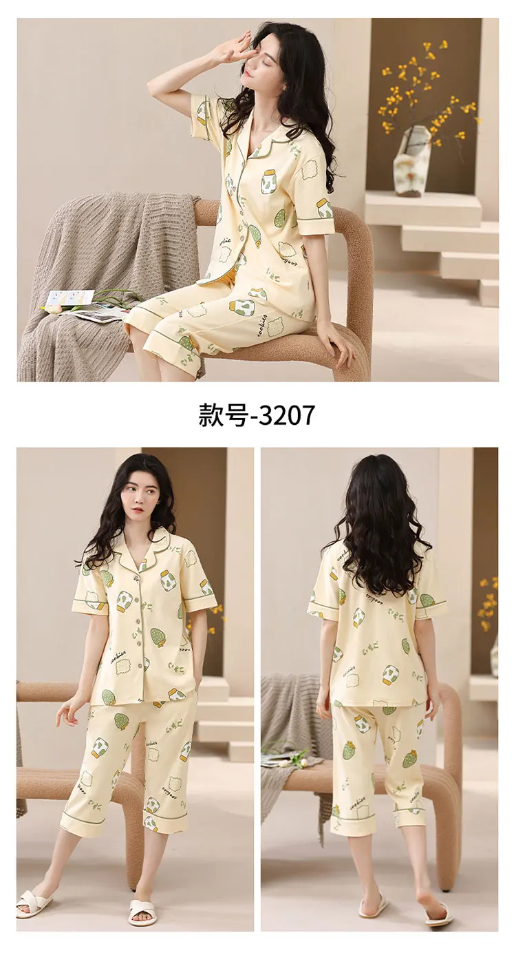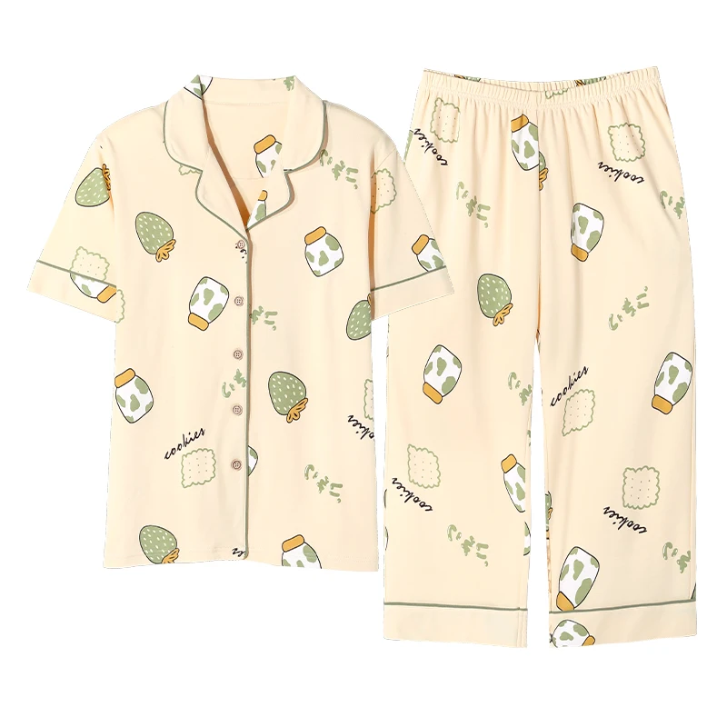 Summer Cotton Cartoon Women Pajamas Set Short Sleeve Turn-down Collar Female Homewear Casual Soft Elegant Cardigan Woman Sleepwe