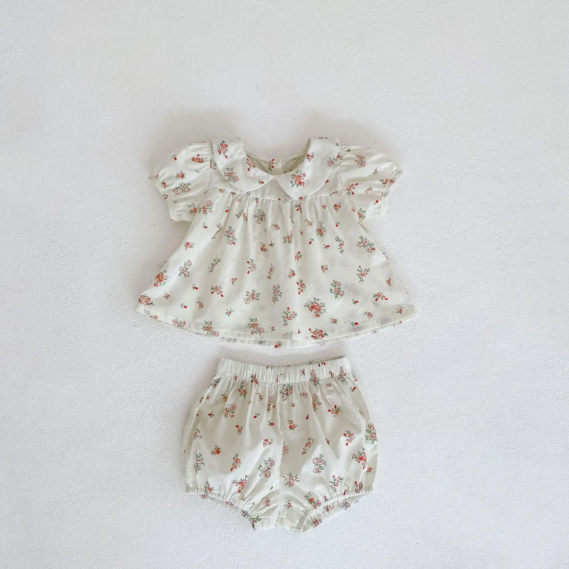Summer cute infants floral clothes sets toddler cotton outfits baby girls doll collar blouse and shorts 2pcs sets