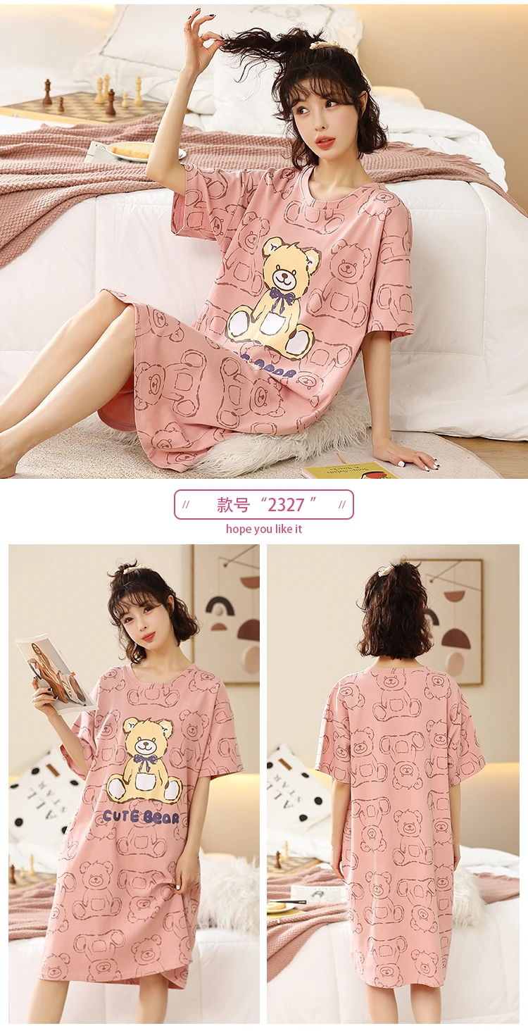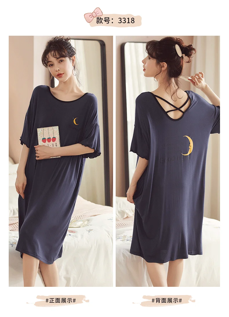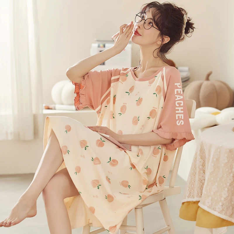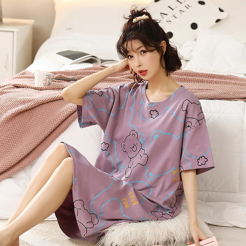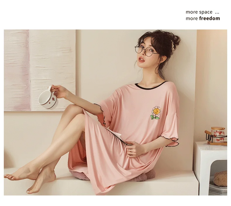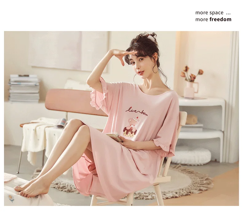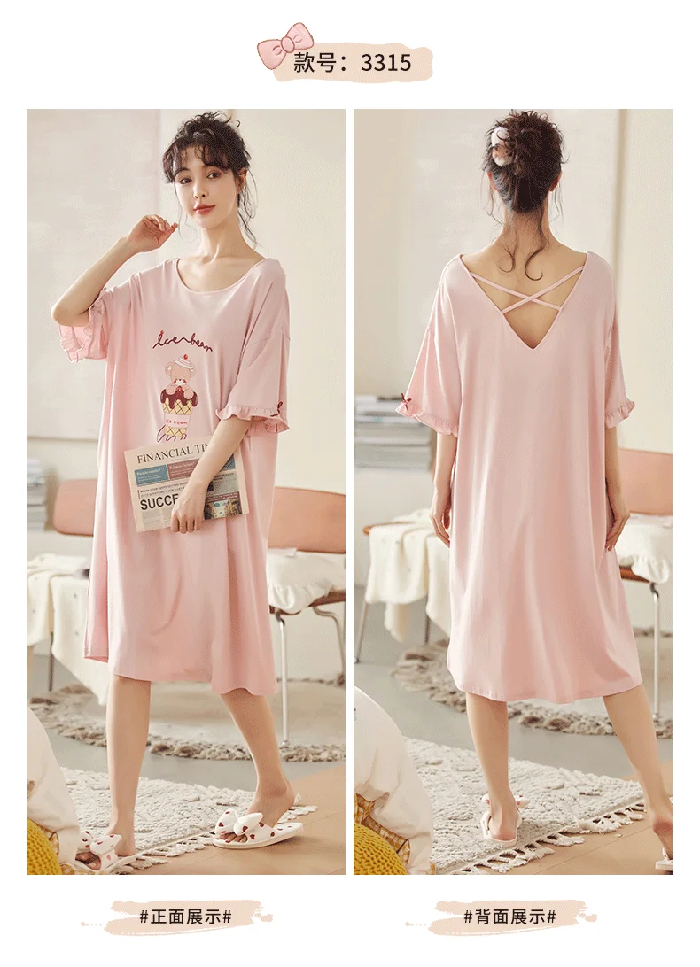 Summer Cute Women Sleepwear M-5XL Nightgowns Home Wear Young Girls Cotton Sleep Lounge Nightgrowns Dress Modal Home Clothing